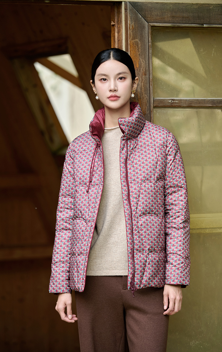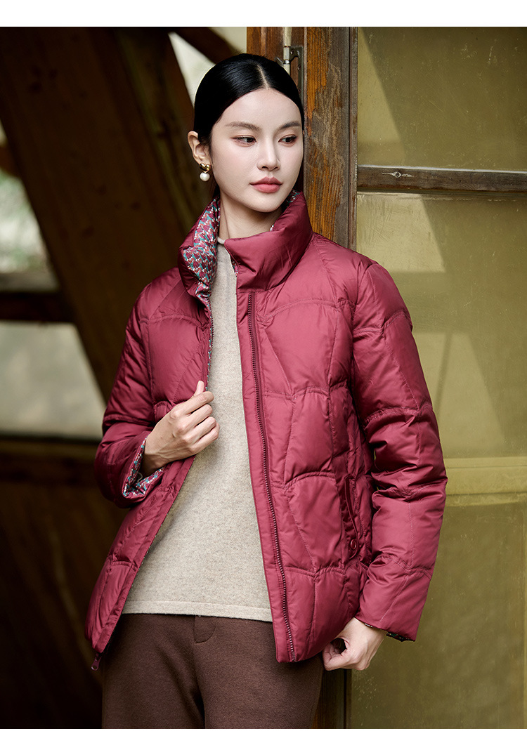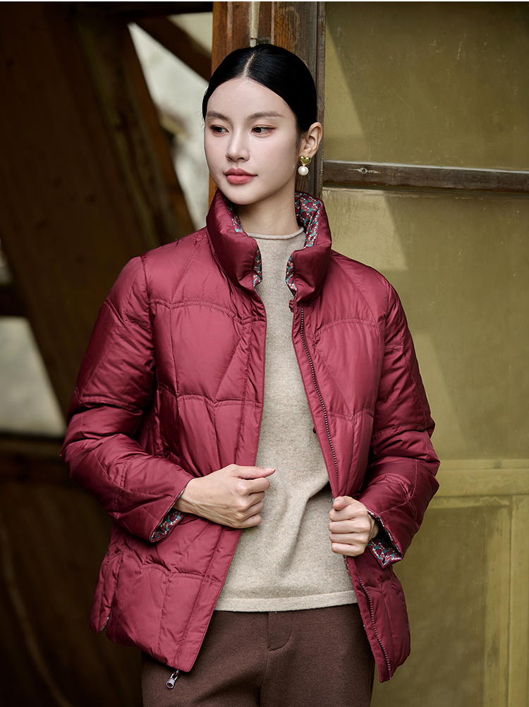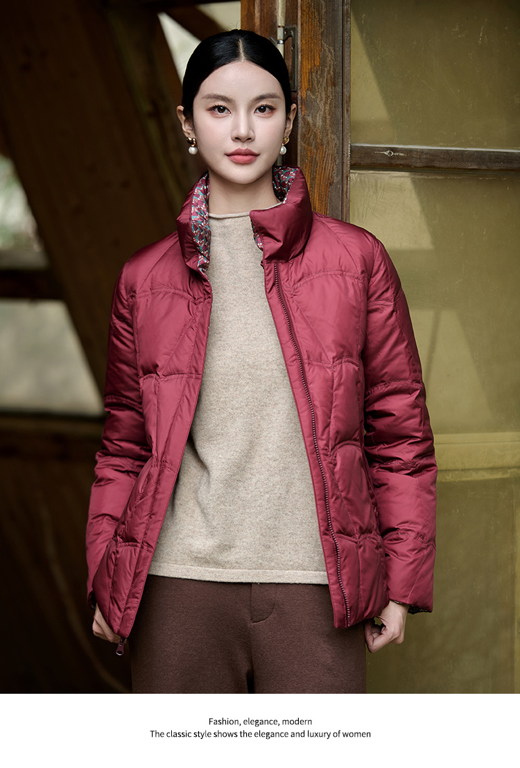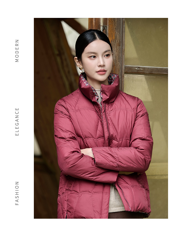 佐尔美冬季新款 经典双面穿老钱风立领羽绒服女M44YY08