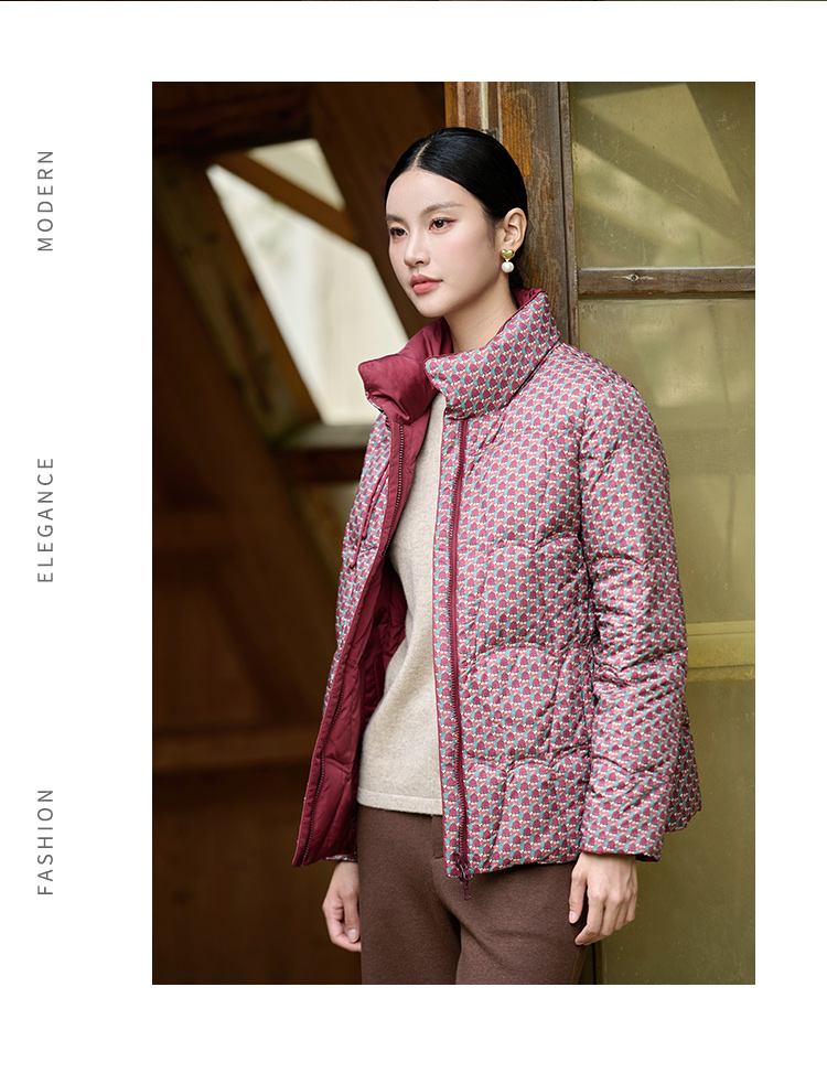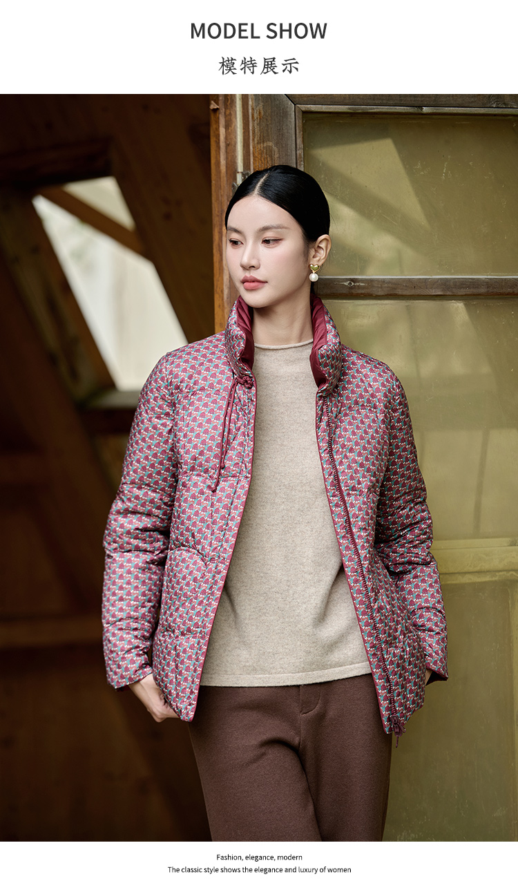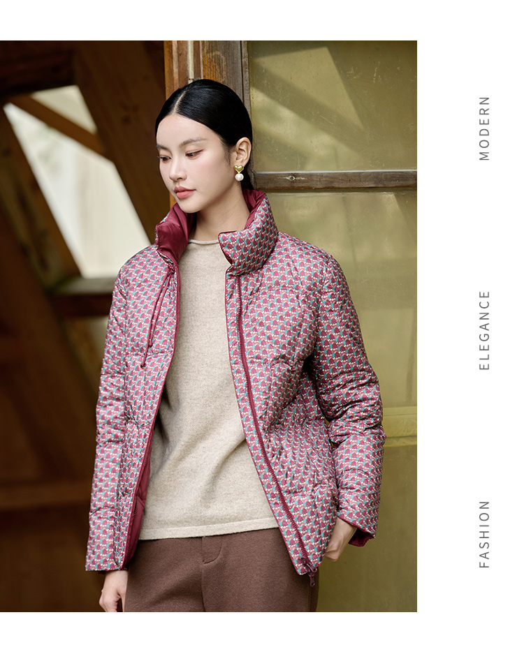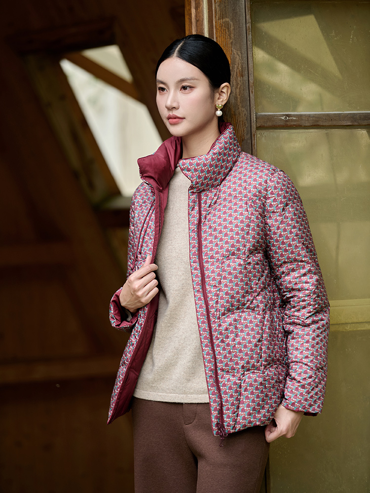 佐尔美冬季新款 经典双面穿老钱风立领羽绒服女M44YY08