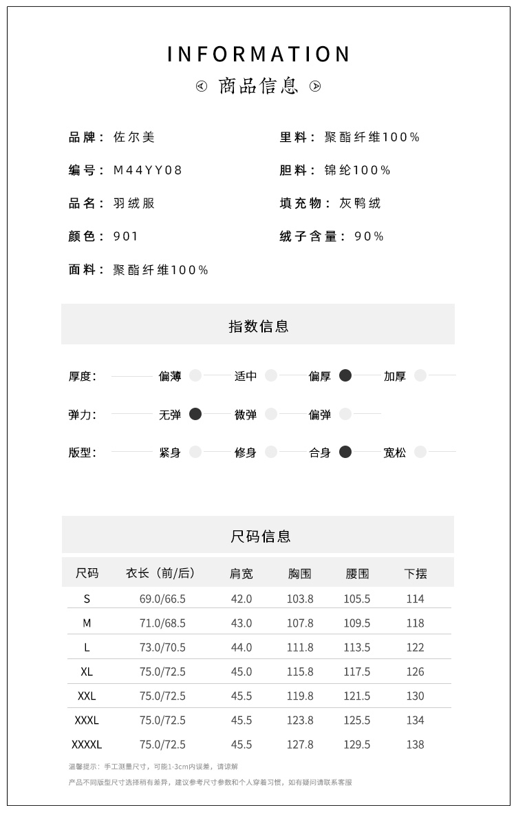 佐尔美冬款女士羽绒服中长款毛领修身女羽绒衣修身E44YT13