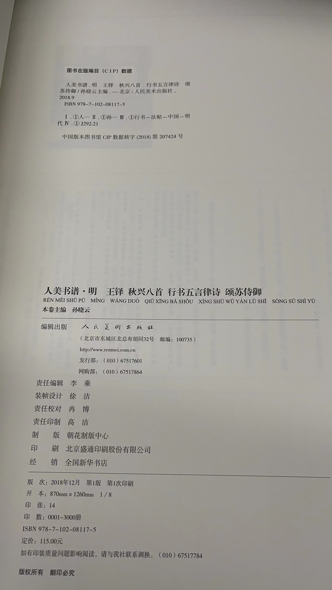 人美书谱-行书-明-王铎 秋兴八首 行书 五言律诗 颂苏侍御【现货包邮】RM0091