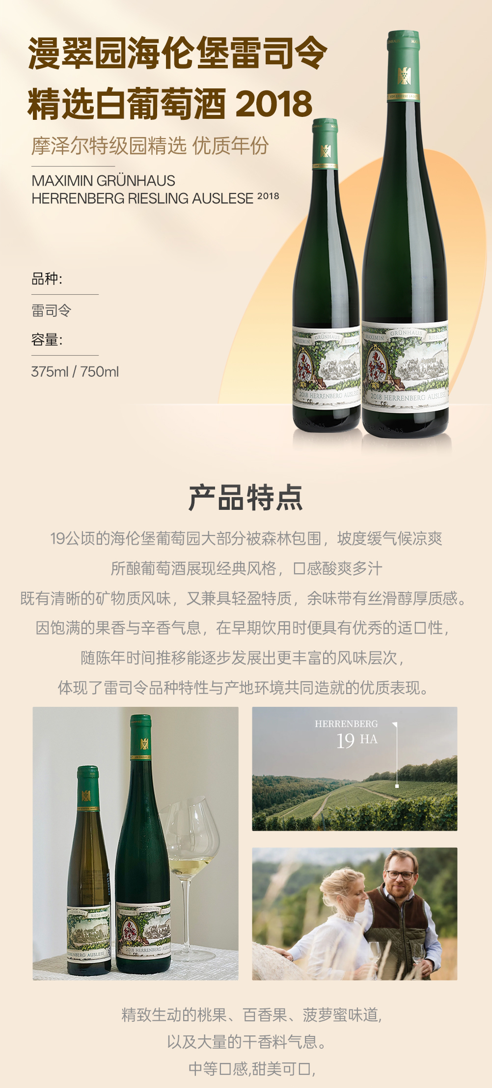 漫翠园海伦堡雷司令精选白葡萄酒2018 甜型 7.5%vol 750ml