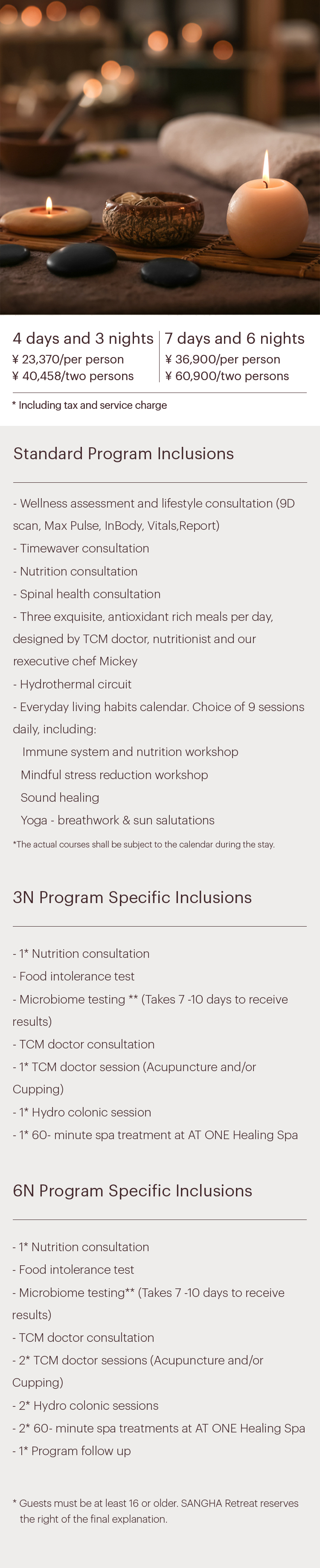 - Program components are subject to change upon the advice of SANGHA Retreat staff, including doctors and life coaches.