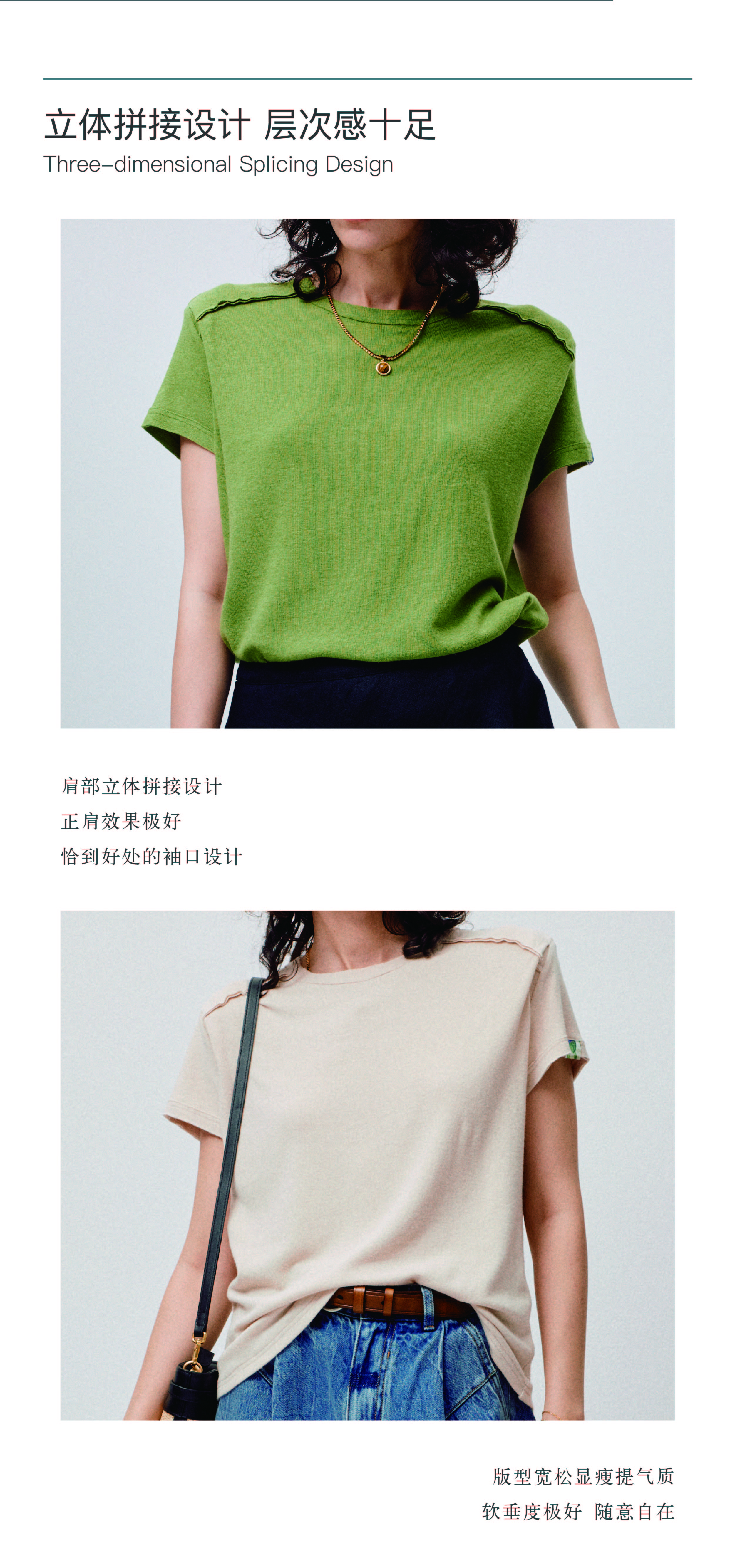 LIYIHAN序章丨25春全棉刺绣圆领T恤百搭正肩上衣小众设计宽松舒适