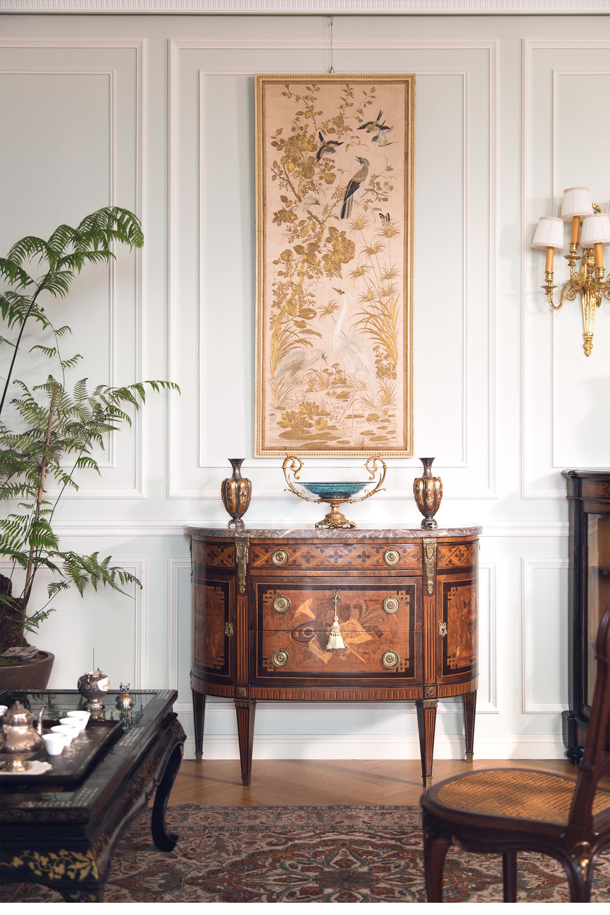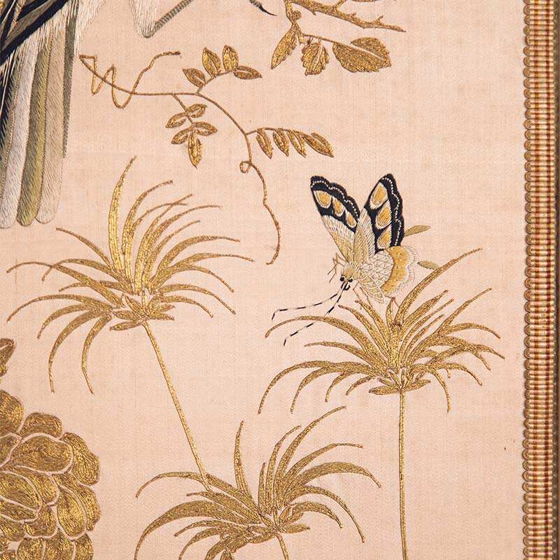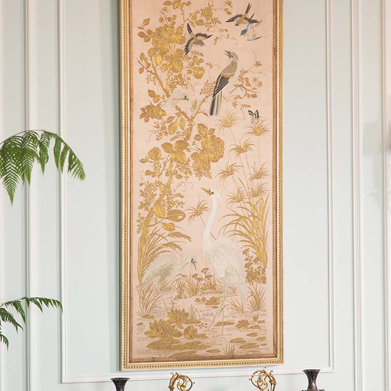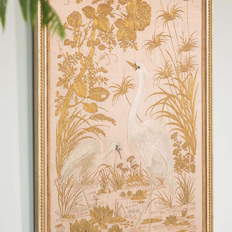 19世纪中国清代出品「水岸白鹭」传统东方花鸟主题粤绣挂屏