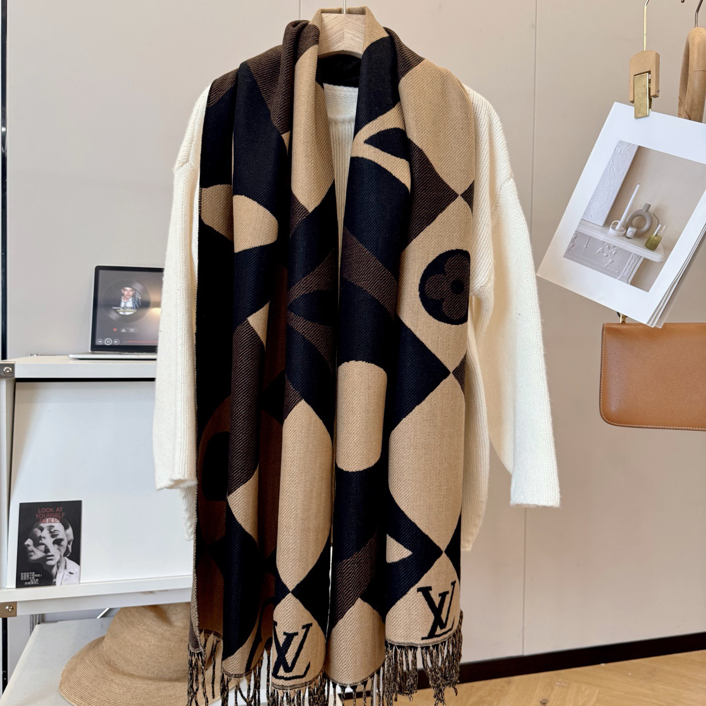 秋冬特惠💰150 LV围巾 上新!秋冬男女同款,高端羊绒针织围巾!可正式,可随意,非常Classical的设计。这款织法比较难,又很费纱线,工艺难度非常大!!!这样的围巾,绝对是一条审美不过时的单品!随便围都会好看,版型真是一绝!!太实用百搭了,其实没有多余的设计,怎么围都好看!有垂坠感,温暖且非常显瘦!搭配正装或者搭配休闲装都很合适~对折挂围或者绕圈围都完全可以,有温度的风度‼️