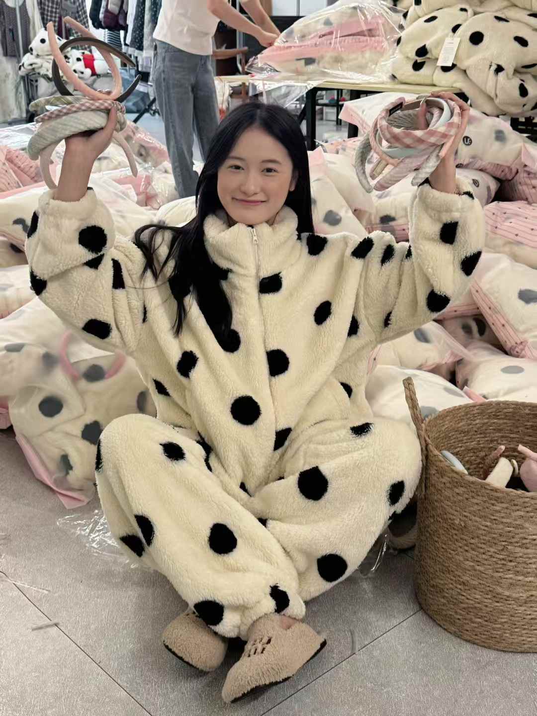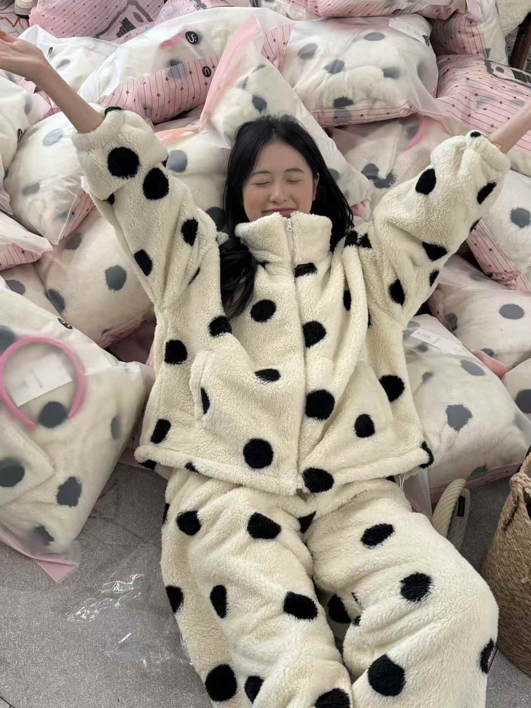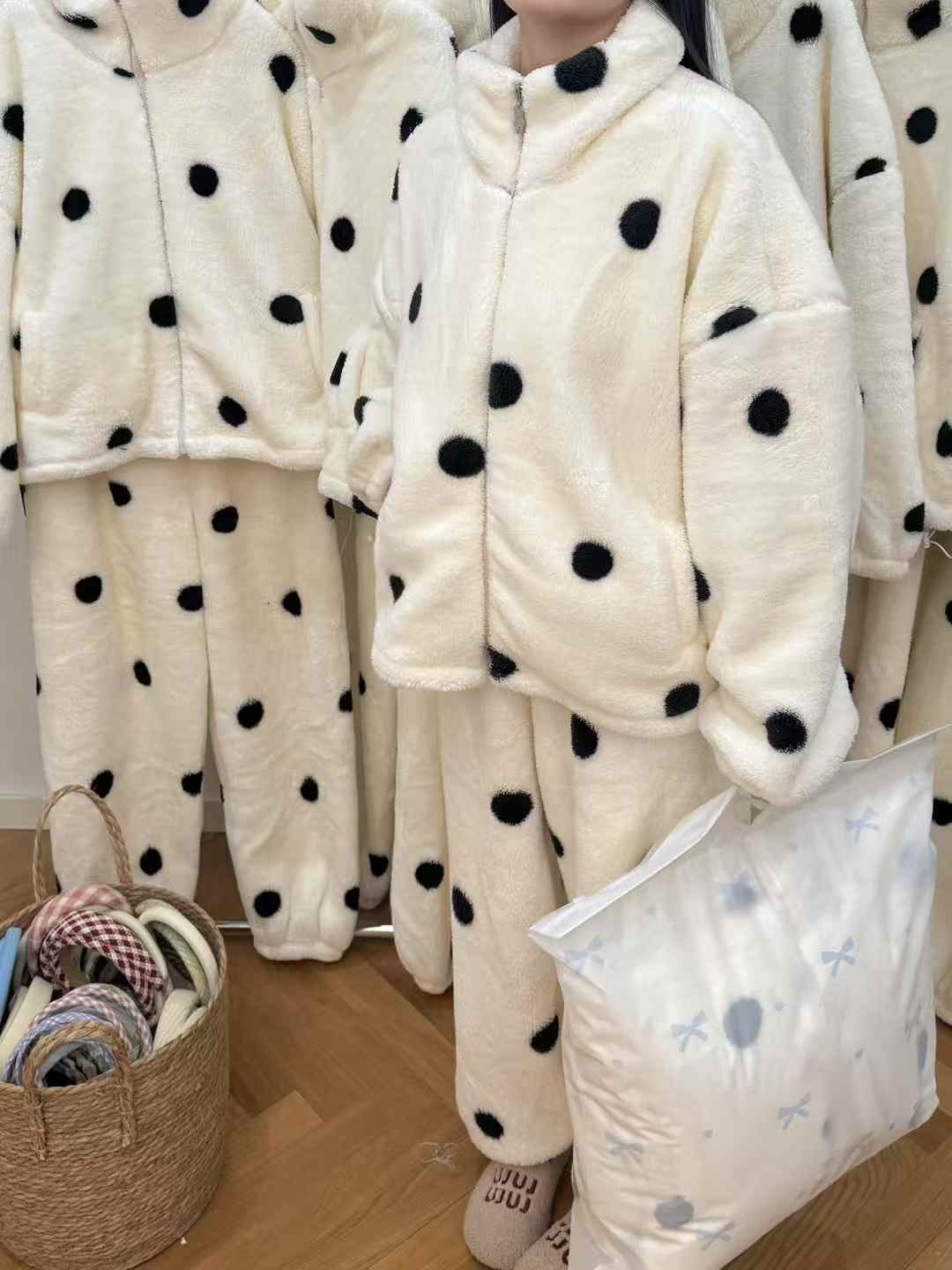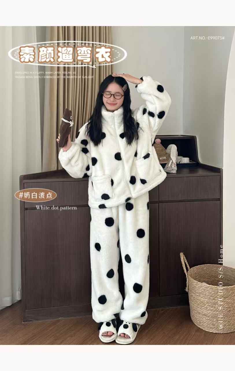 YW立领波点牛奶绒加厚居家套装(LH)(LD)-纪念日百货167898932