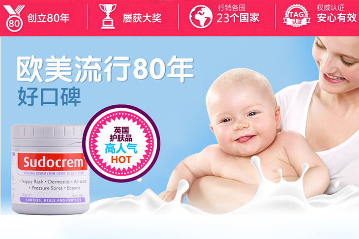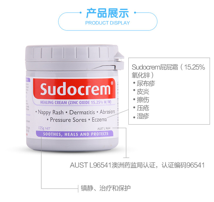 Sudocrem屁屁霜面霜125g 婴儿新生宝宝防红屁屁护臀膏