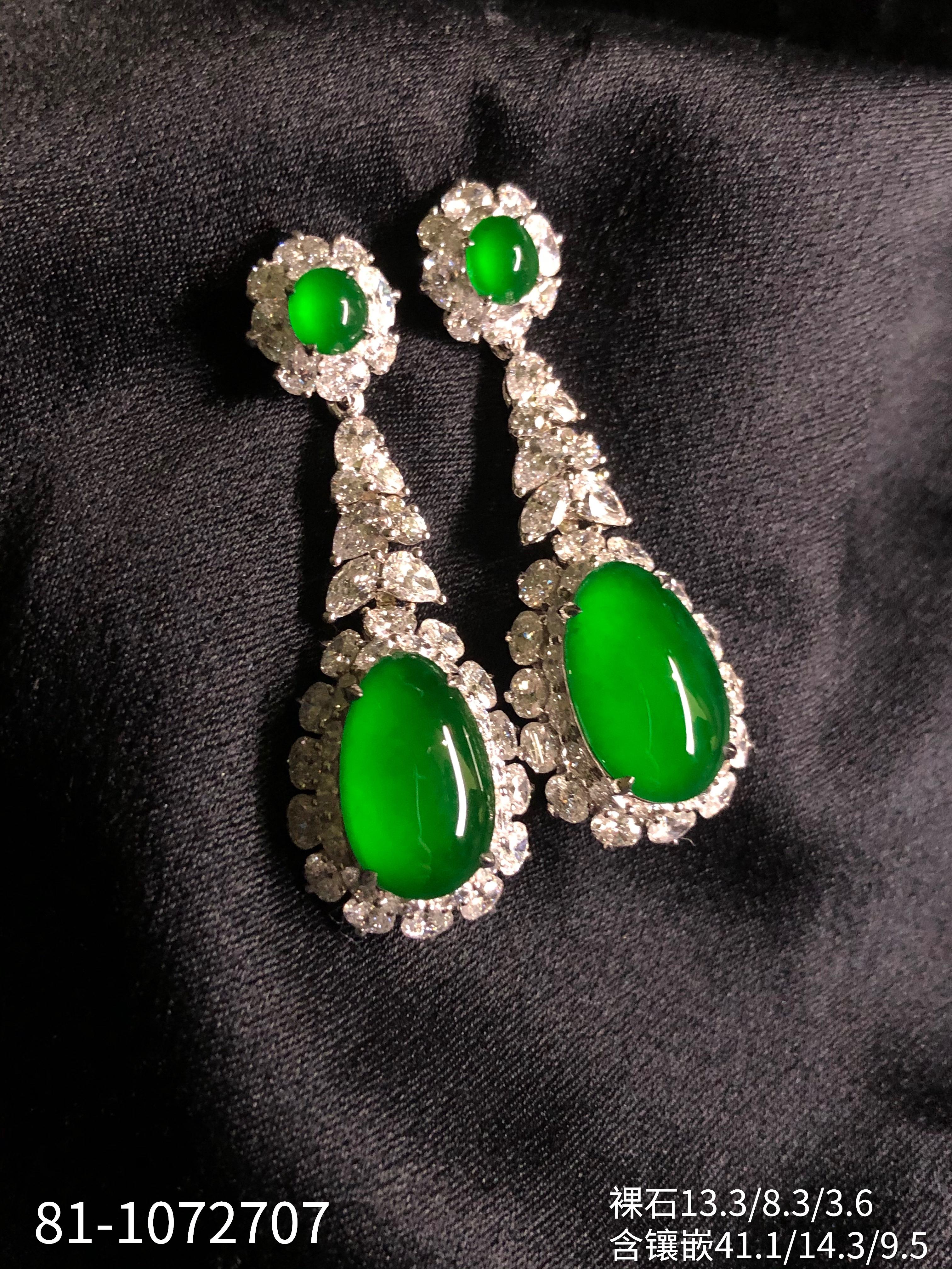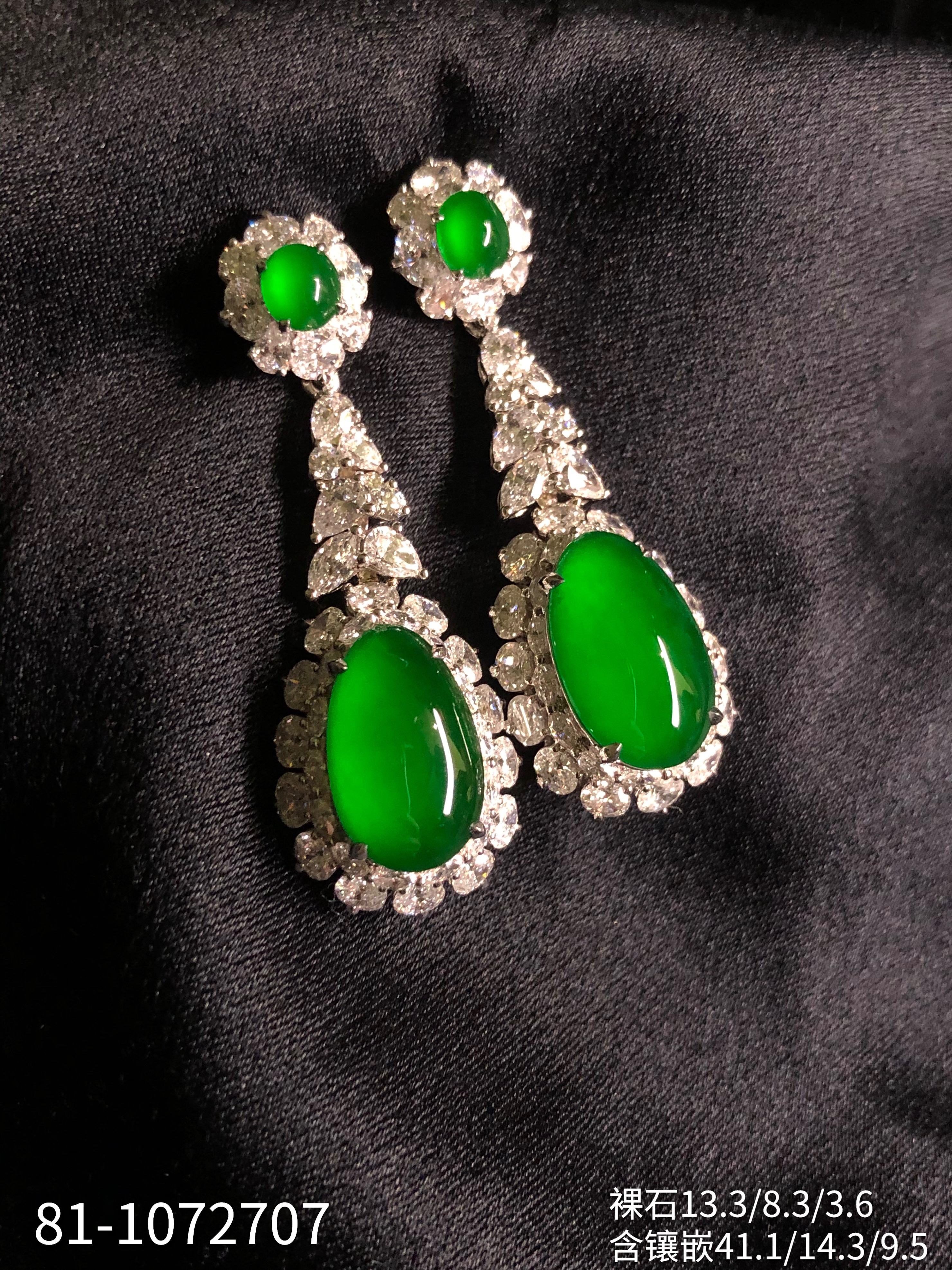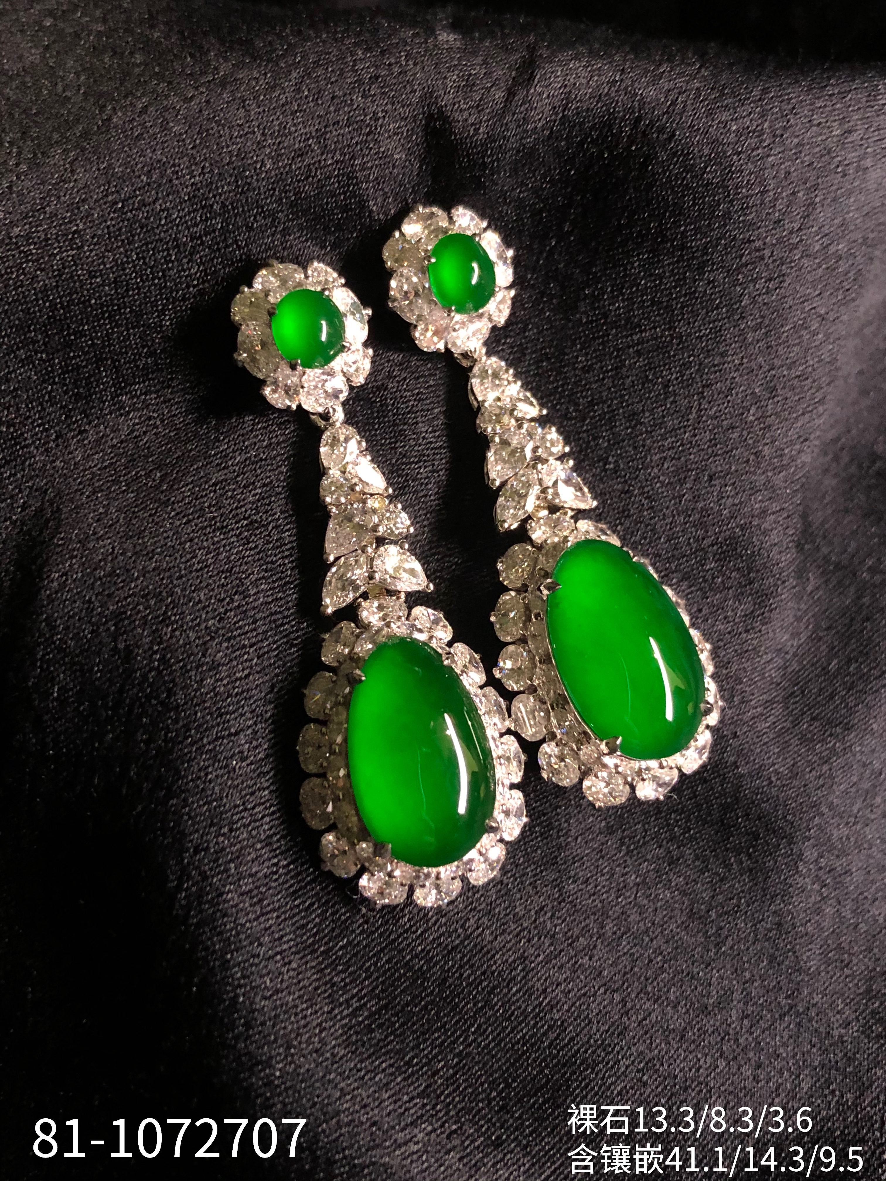 81-1072707,老坑玻璃种帝王绿蛋面耳坠,具体价格微信咨询