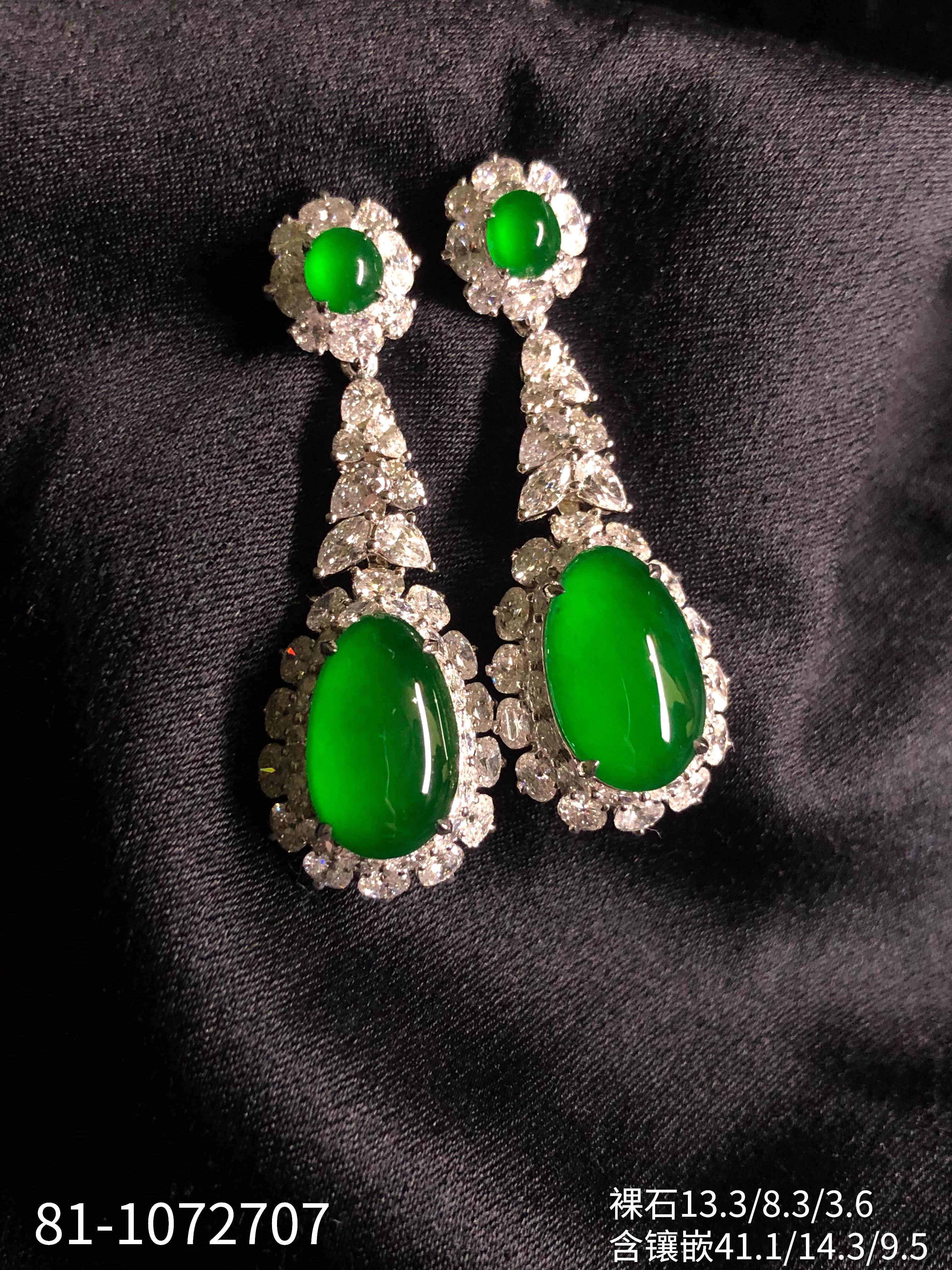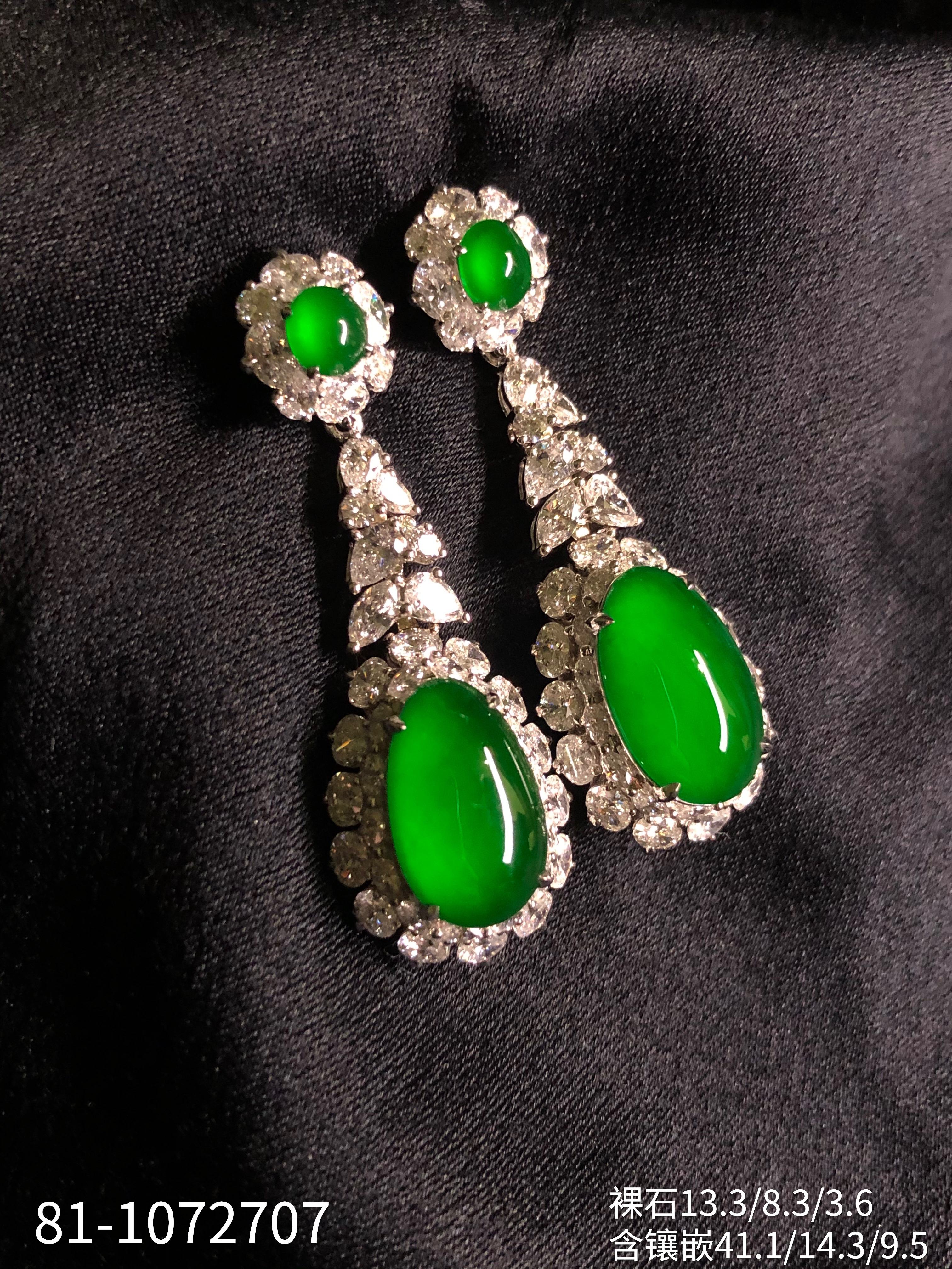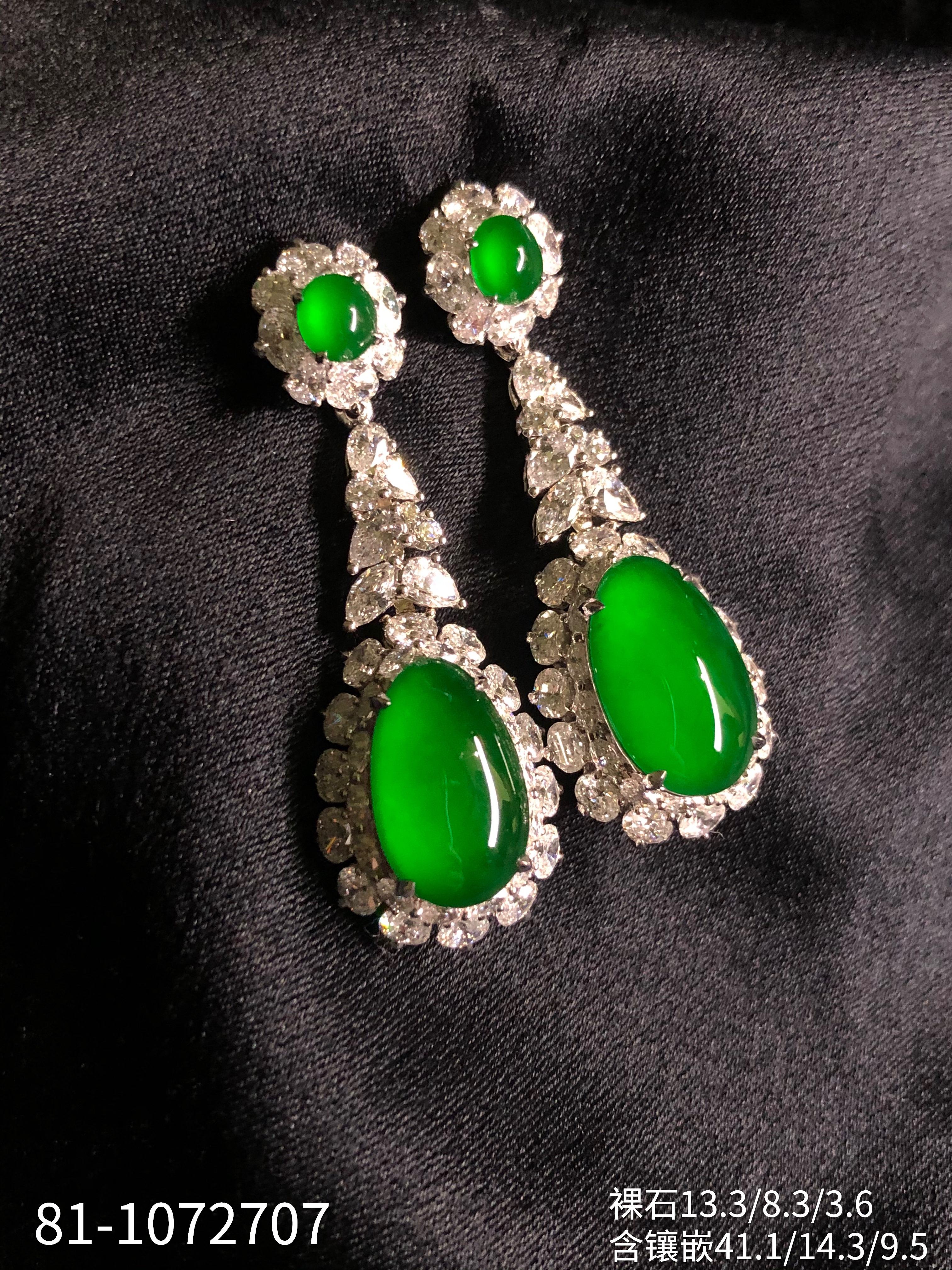 81-1072707,老坑玻璃种帝王绿蛋面耳坠,具体价格微信咨询