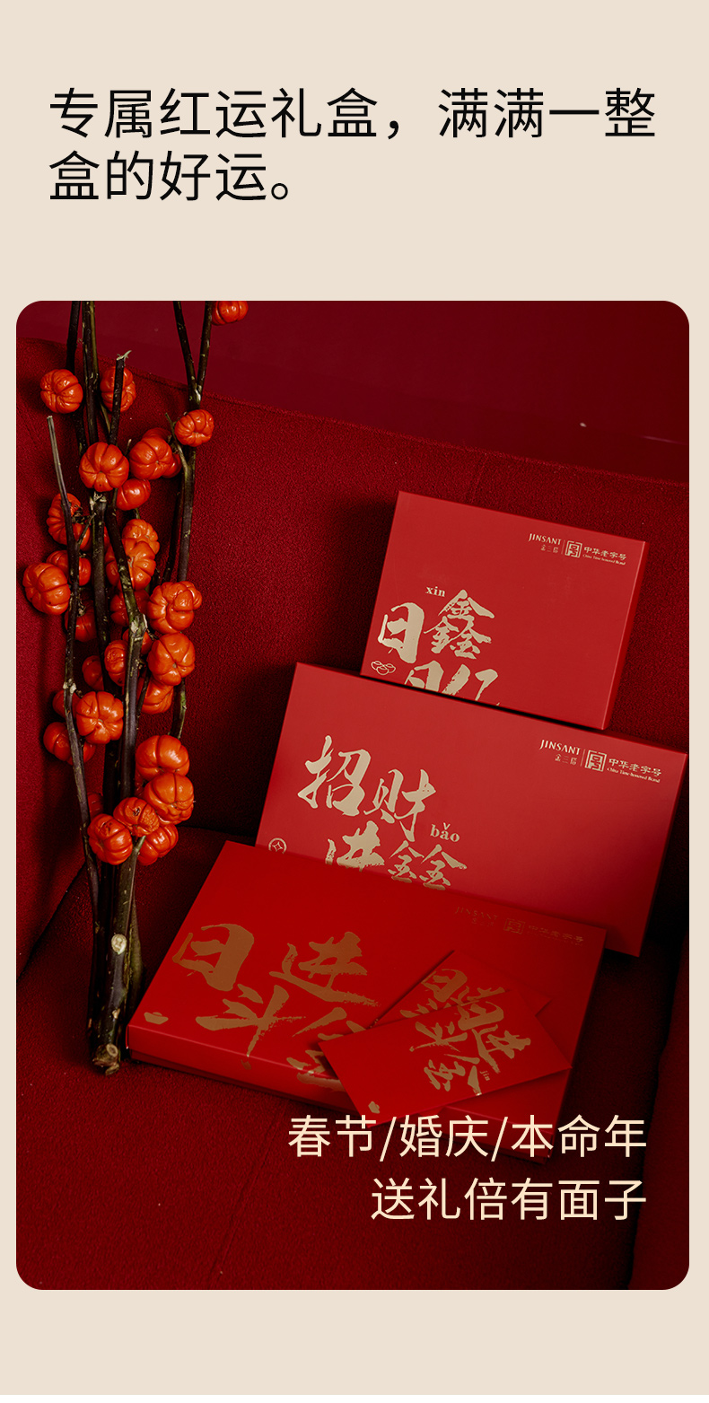 金三塔 真丝缎面中腰三角裤红色新年礼盒2条装