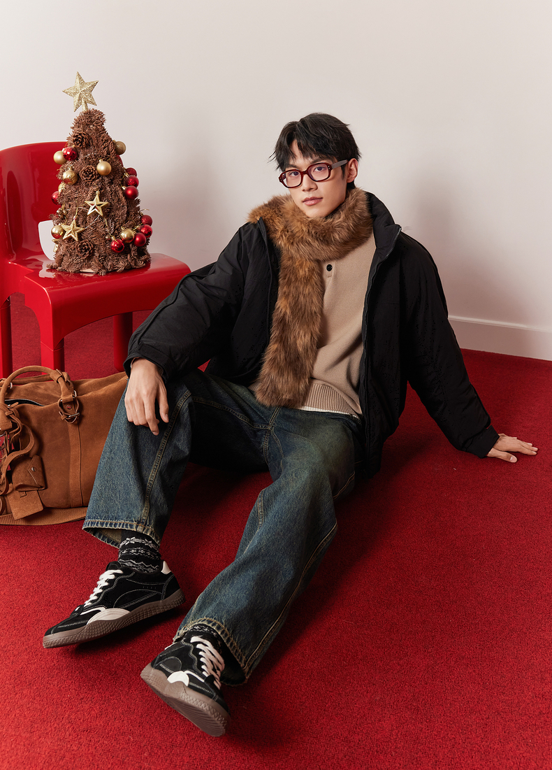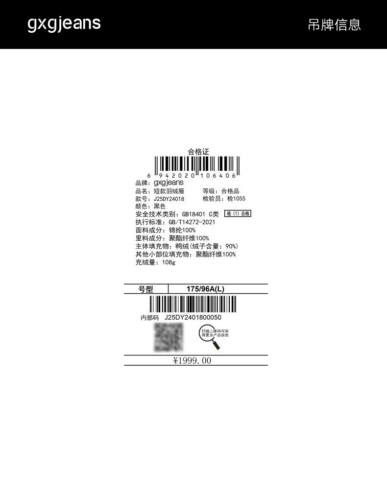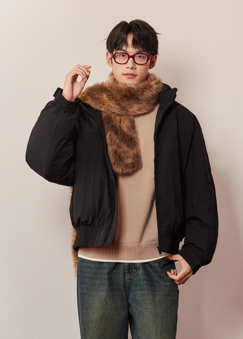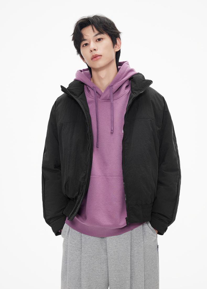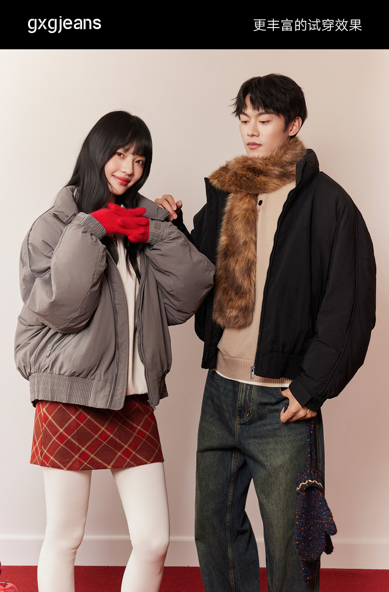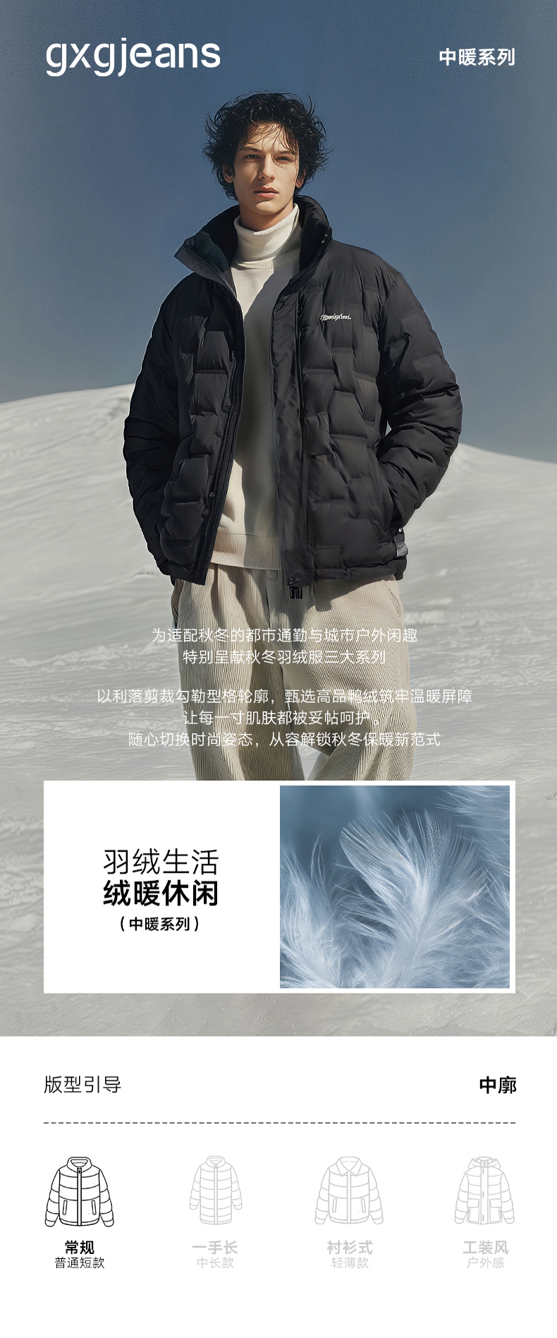 【三防】gxg.jeans男装 黑色微皱面料三防工装基础短款立领羽绒服 25年冬新品