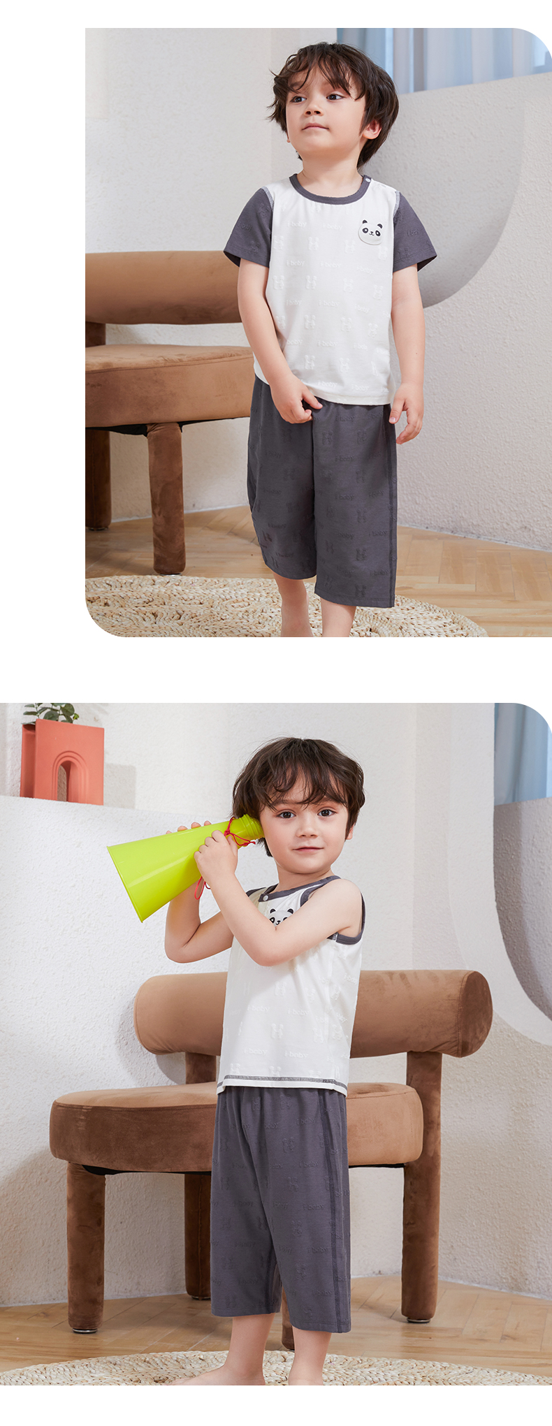 【58元任选2件单件不退】i-baby恒温抗菌针织提花卡通造型七分裤套装 家居服 薄款夏装