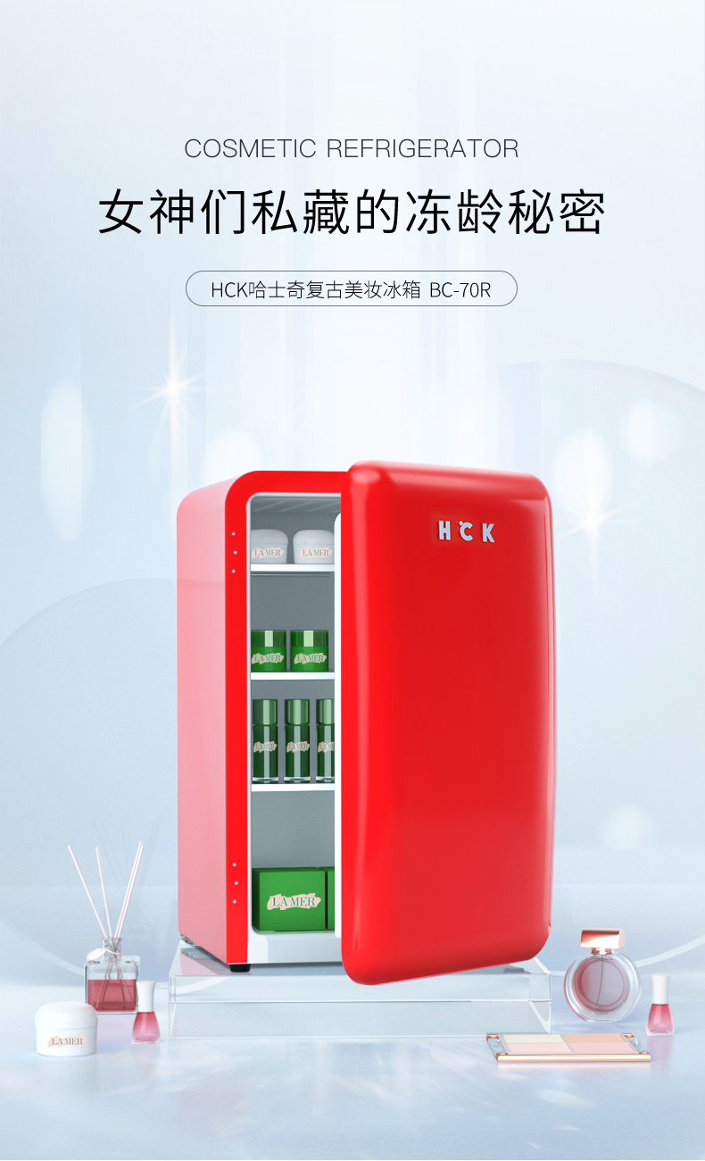 HCK哈士奇BC-70R化妆品冰箱复古小型护肤面膜美容美妆