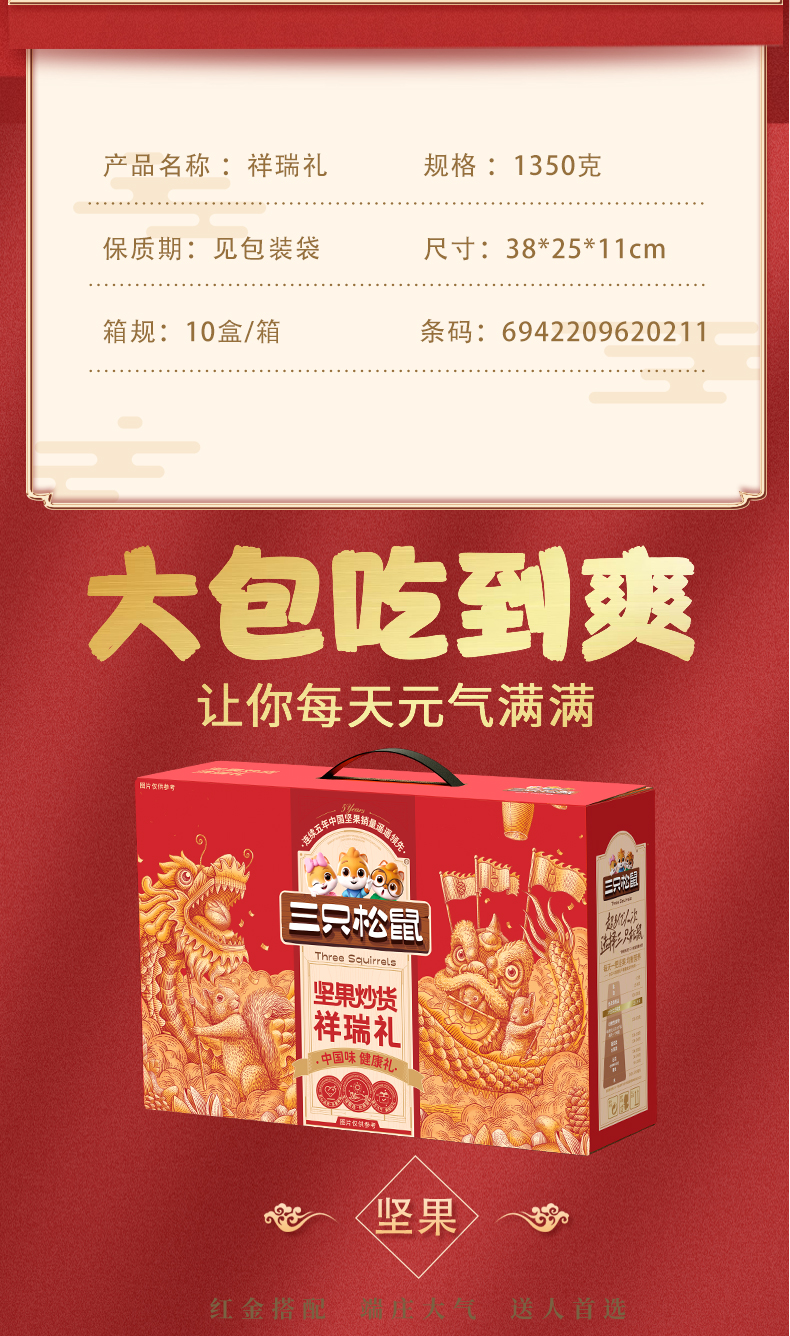 三只松鼠祥瑞礼坚果礼盒1330g/盒【BH】【YQ】