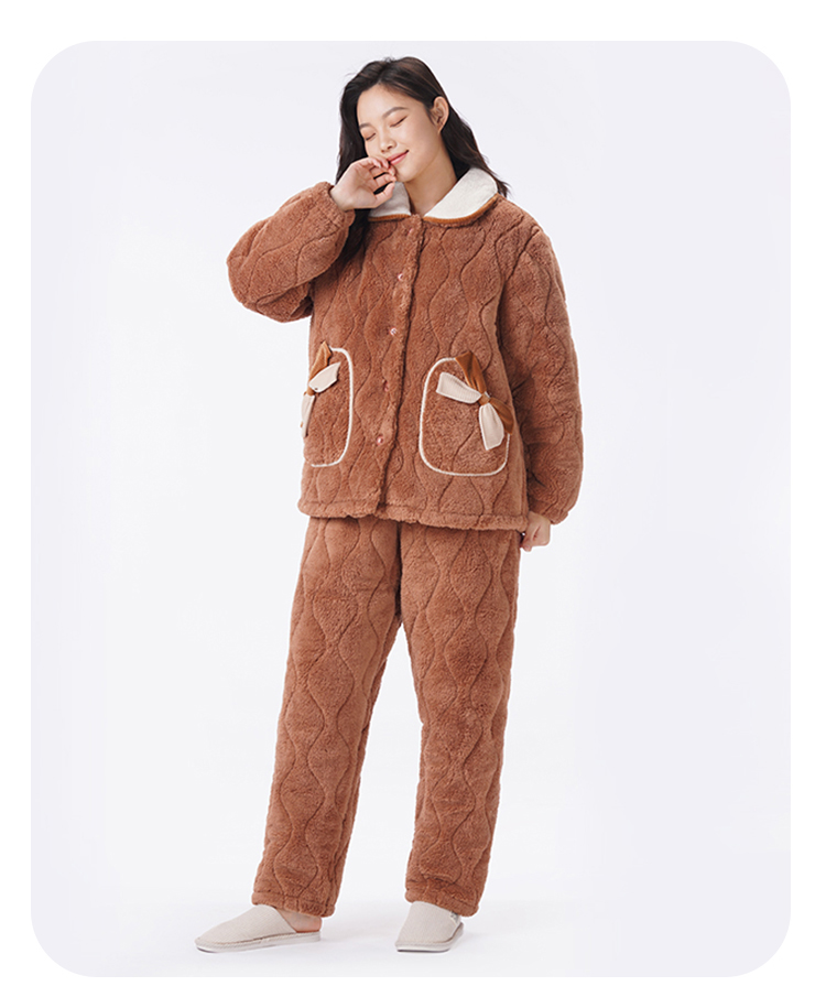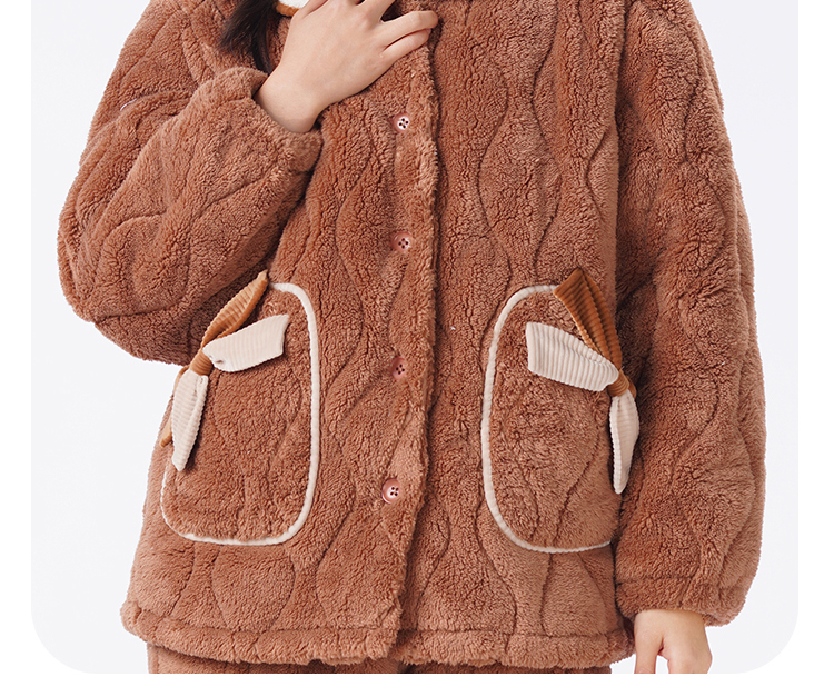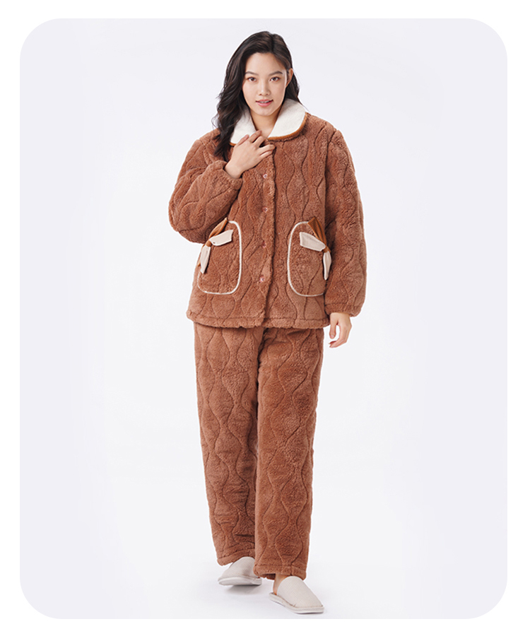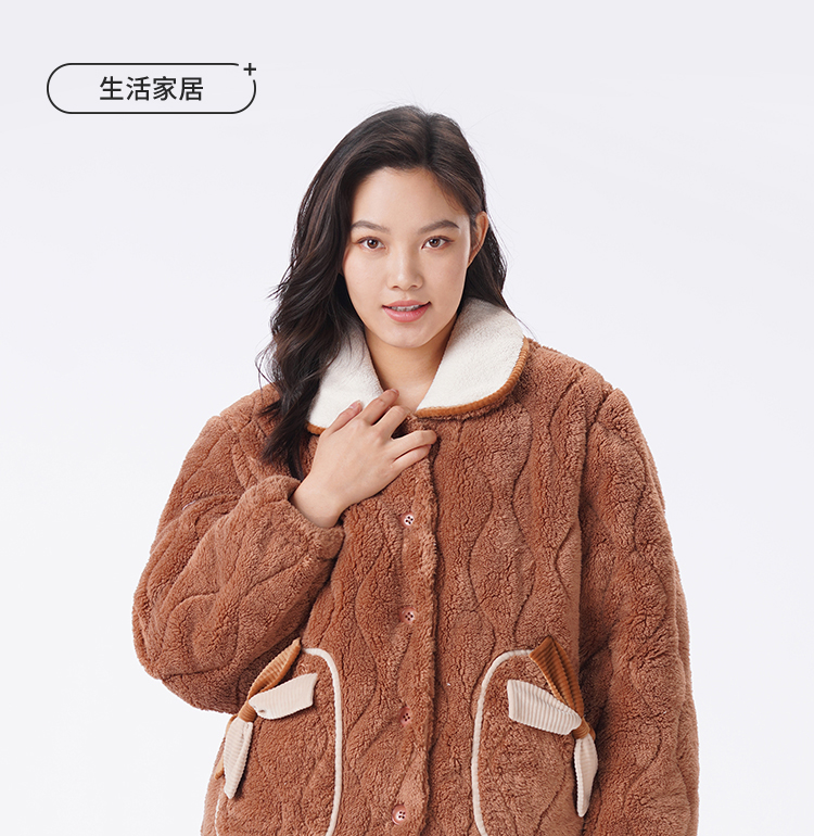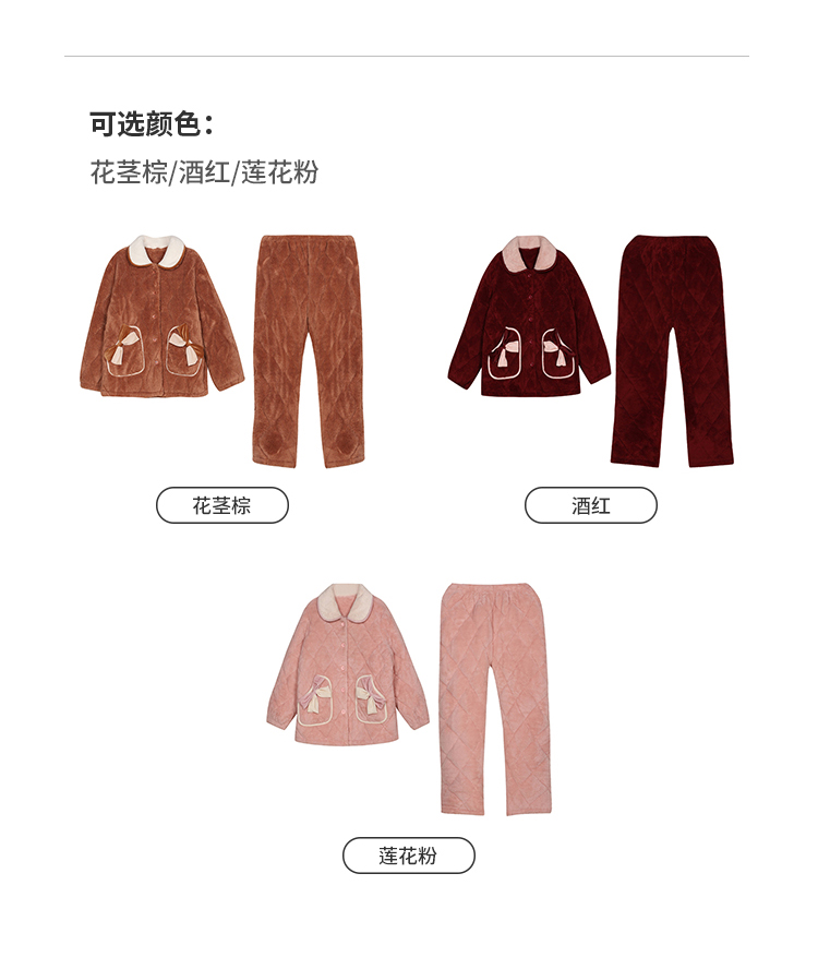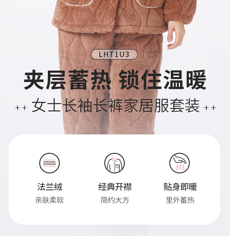 都市丽人睡衣夹棉系列长袖家居服法兰绒夹棉加厚女士夹棉套装LHT1U3
