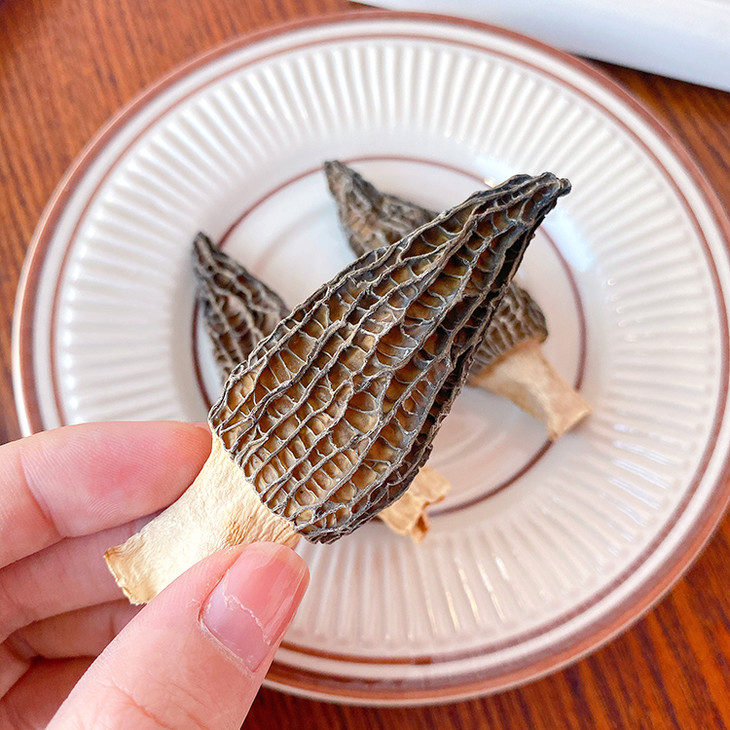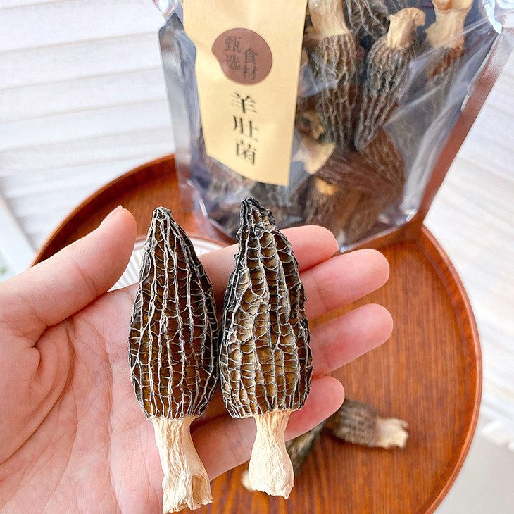 经过晾晒后得到的羊肚菌干品,味道更加醇厚,四季想吃就吃!
