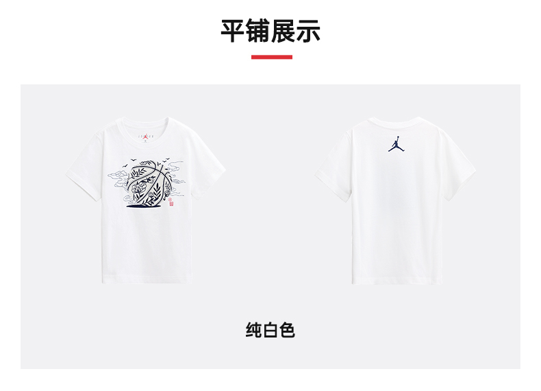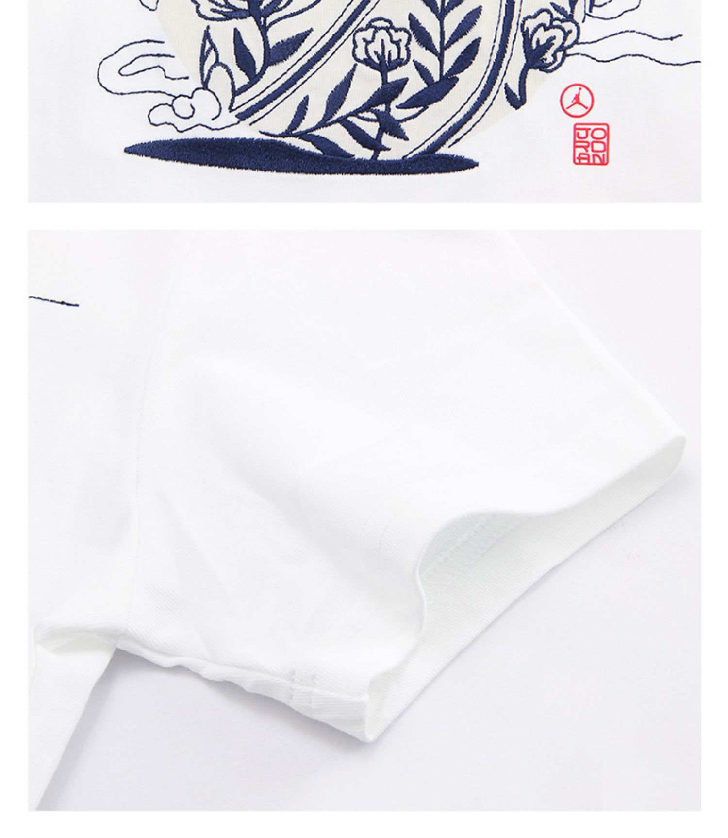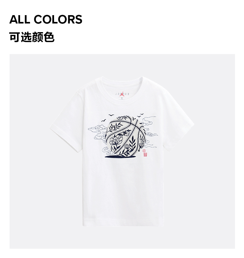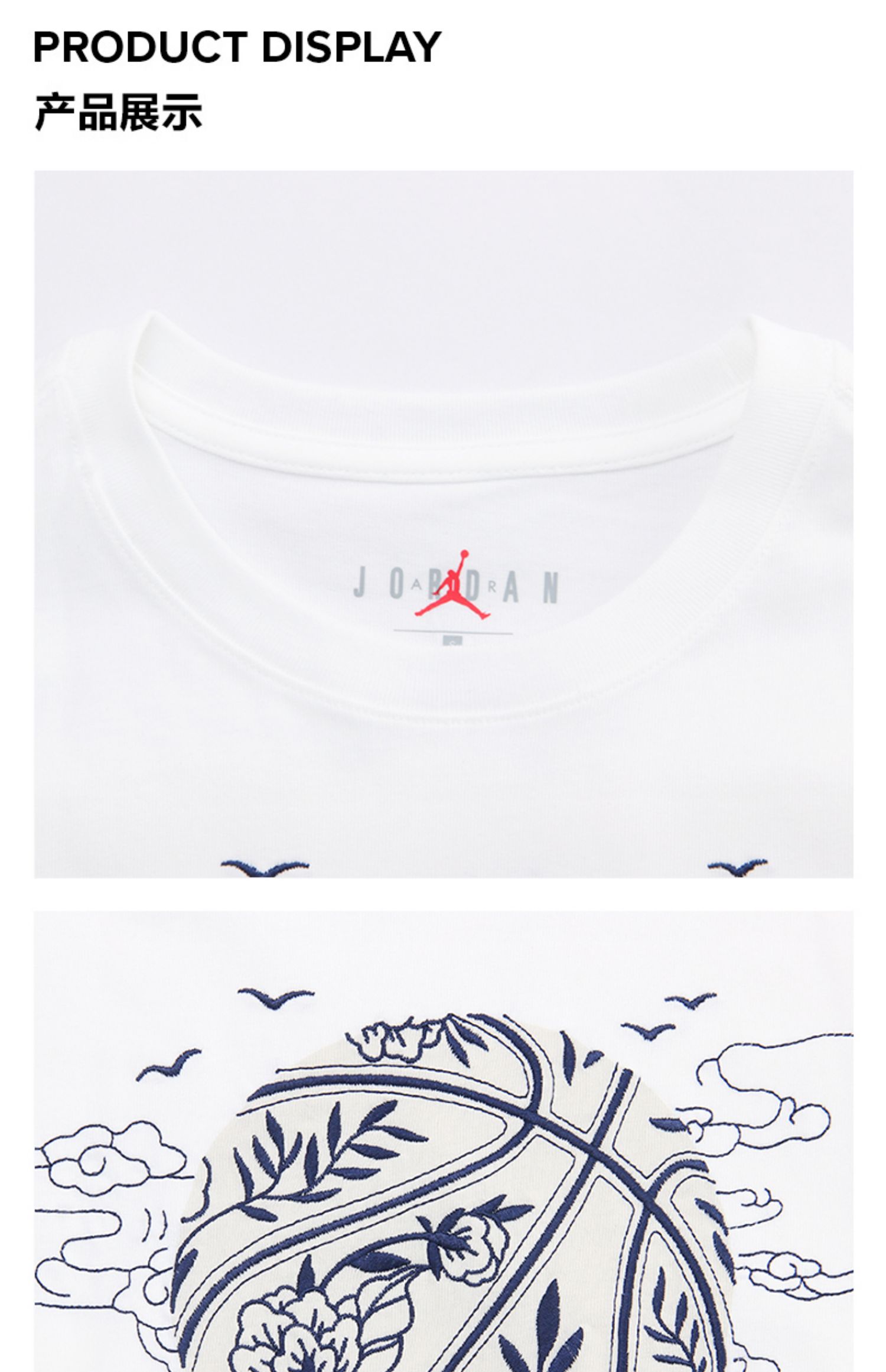 AIR JORDAN乔丹AJ童装男夏新品中国风刺绣纯棉短袖T恤JD