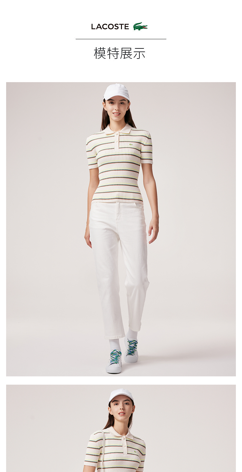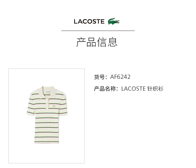【海南专供价】Lacoste法国鳄鱼女装经典条纹修身短袖针织衫Polo衫AF6242-10