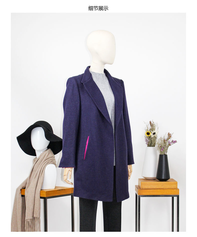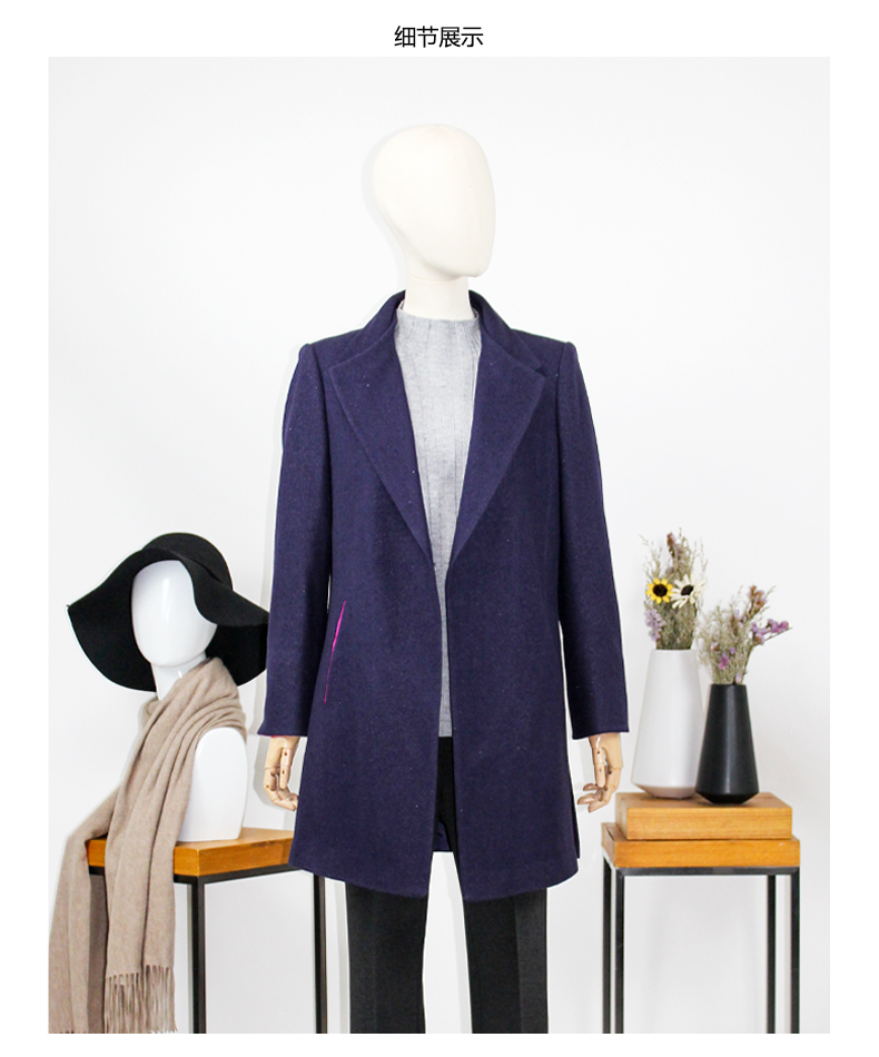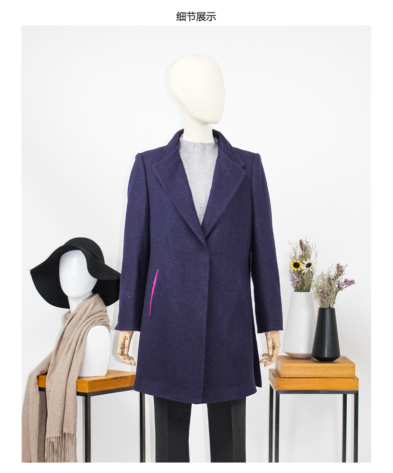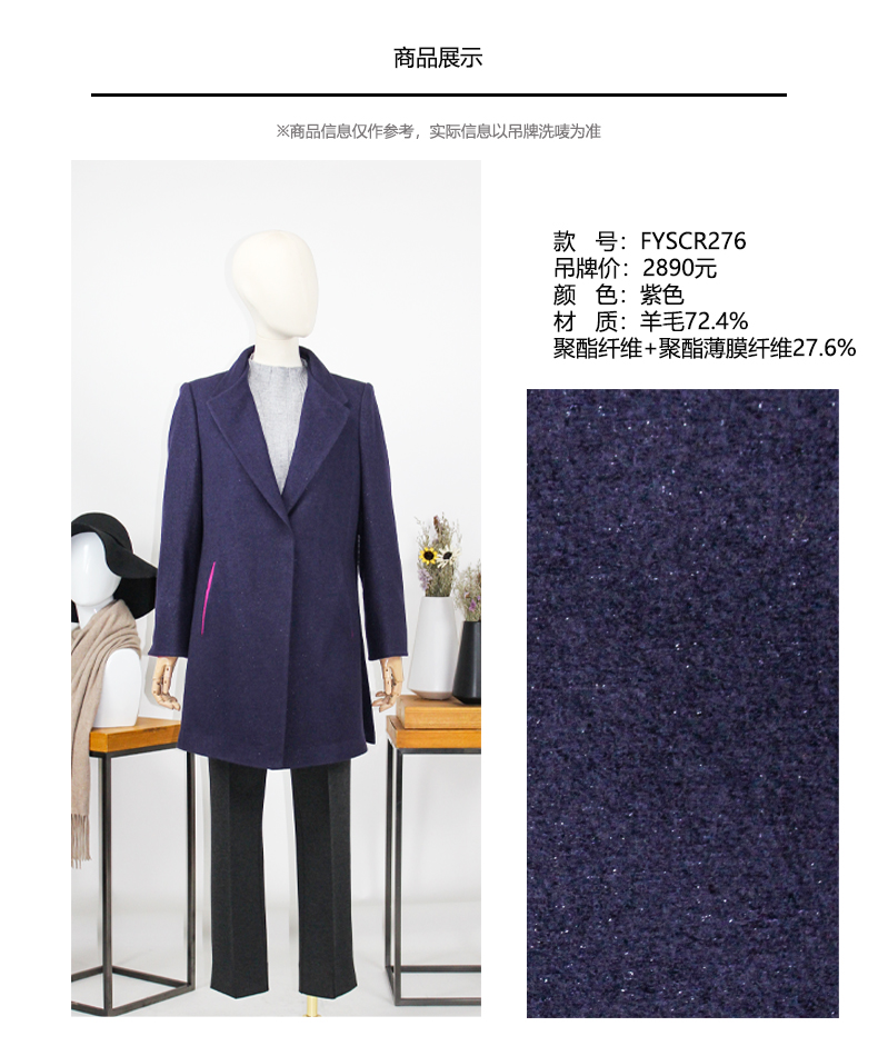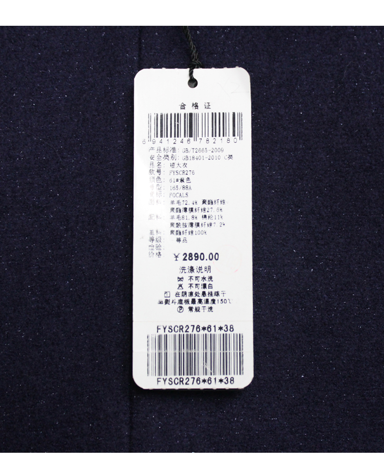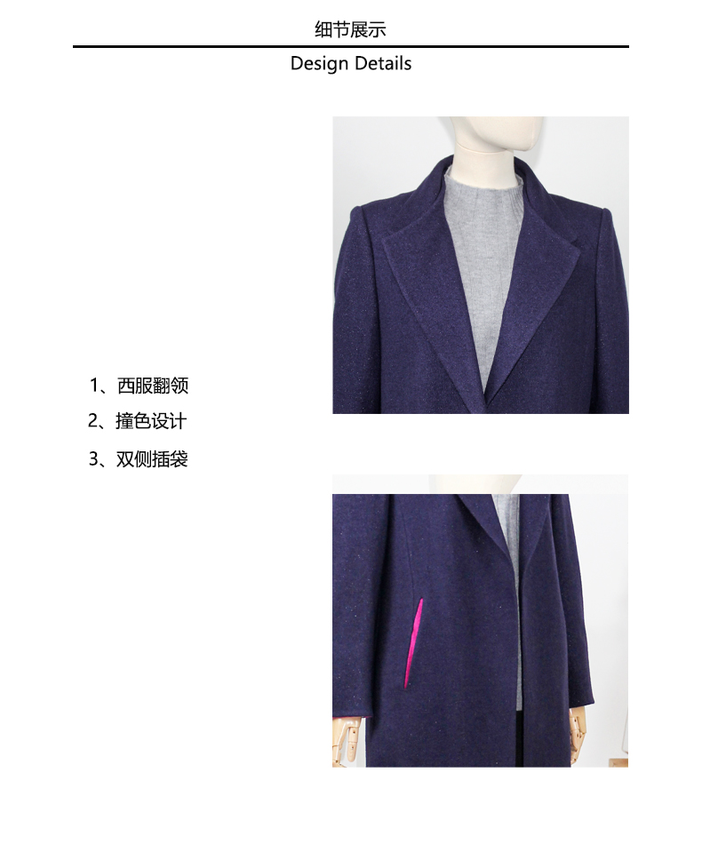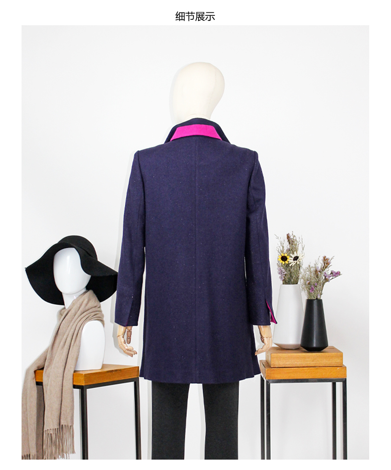 FOCALS福柯斯新款修身中长撞色立领羊毛混纺大衣外套FYSCR27661