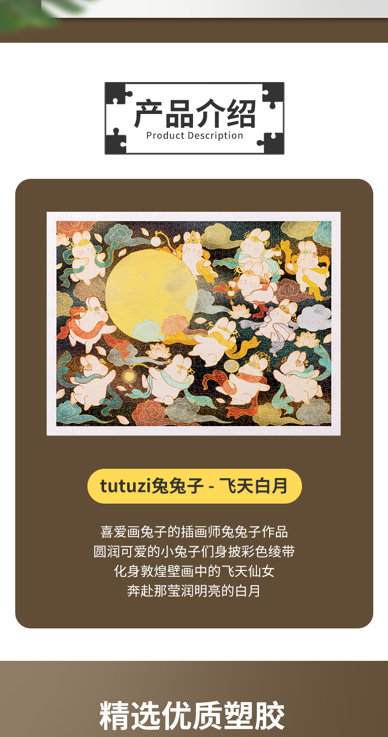 【折扣商品 不退不换】1200片 平面拼图 塑料拼图 H2763 tutuzi兔兔子-飞天白月