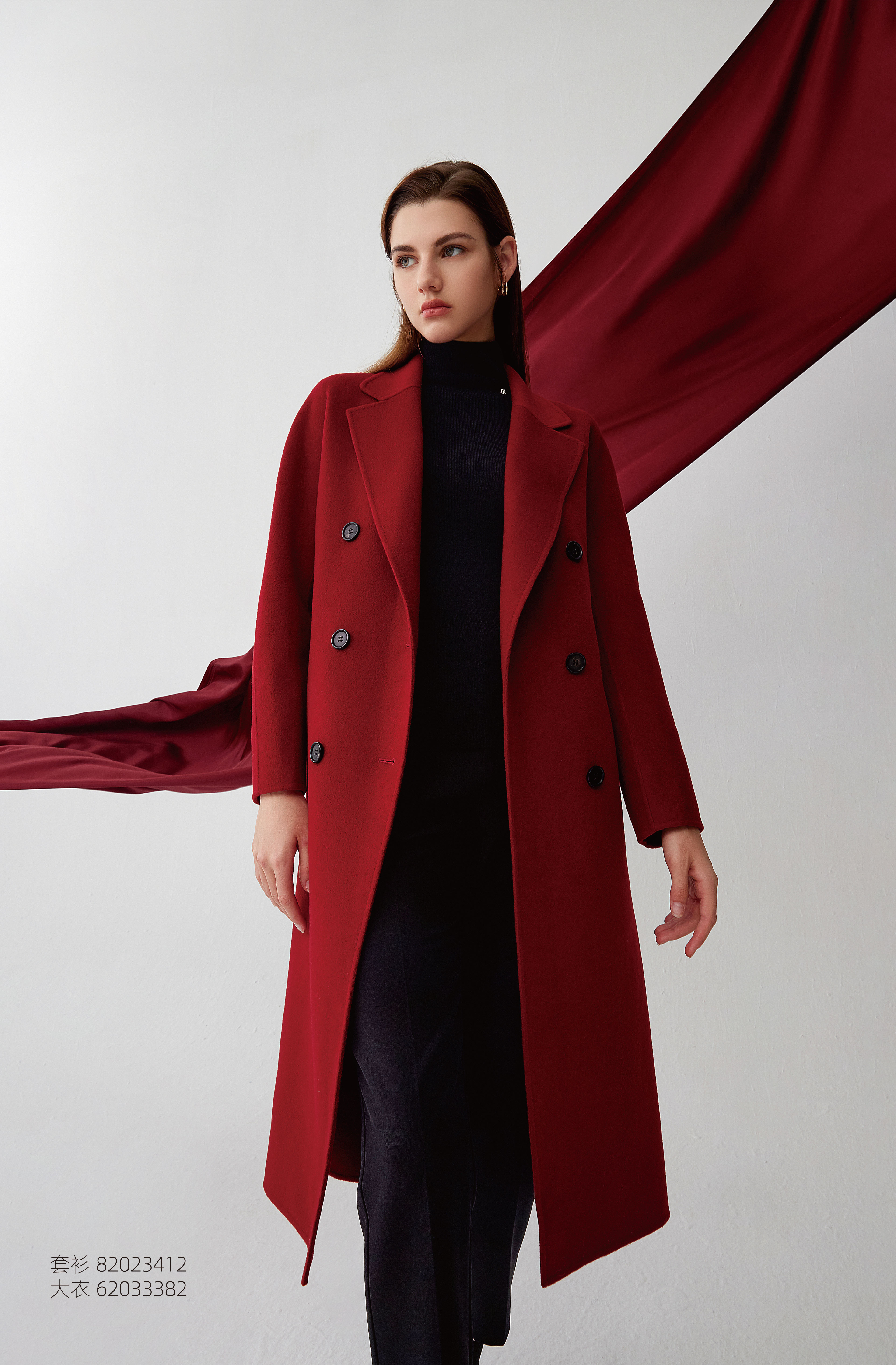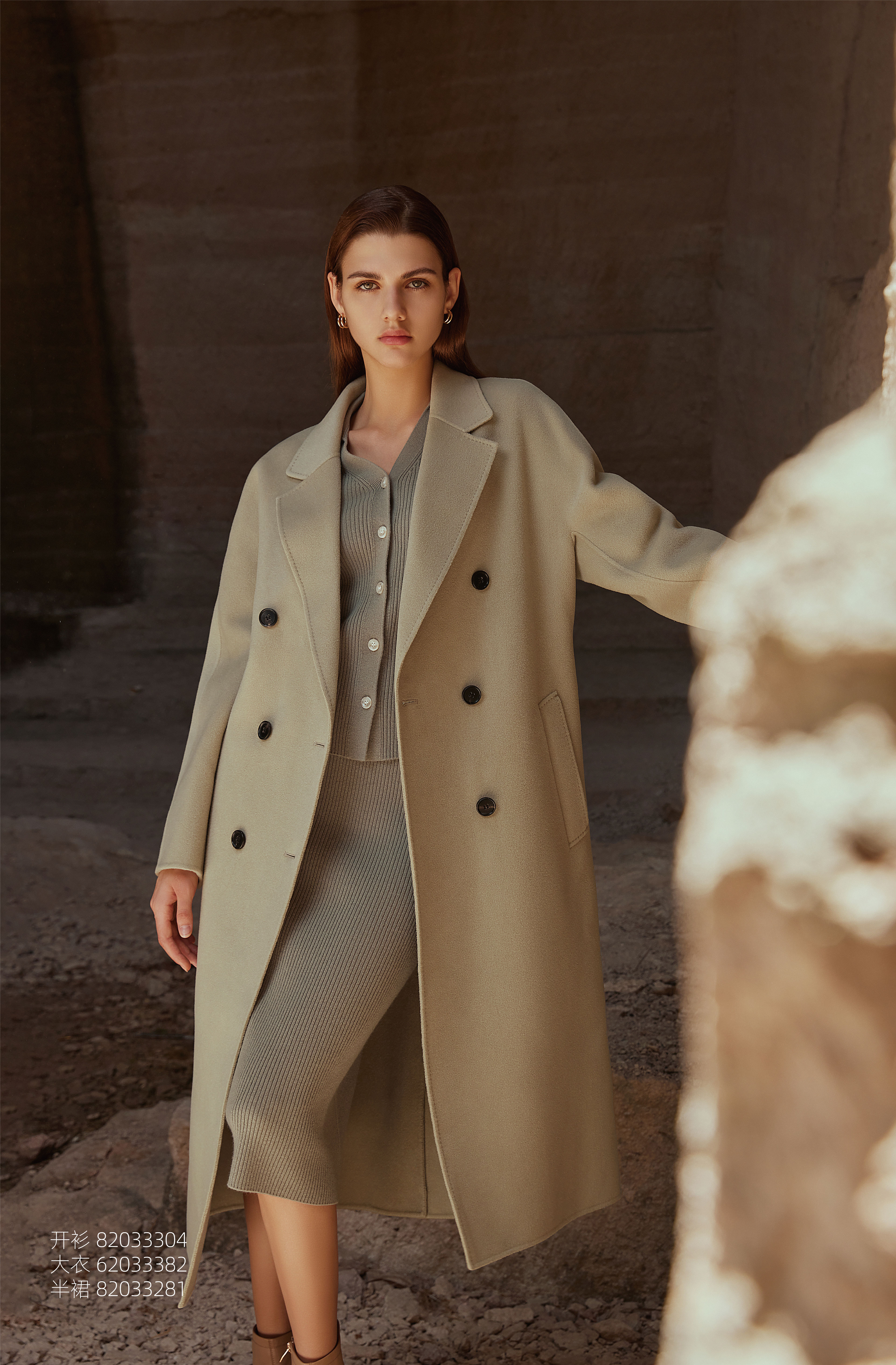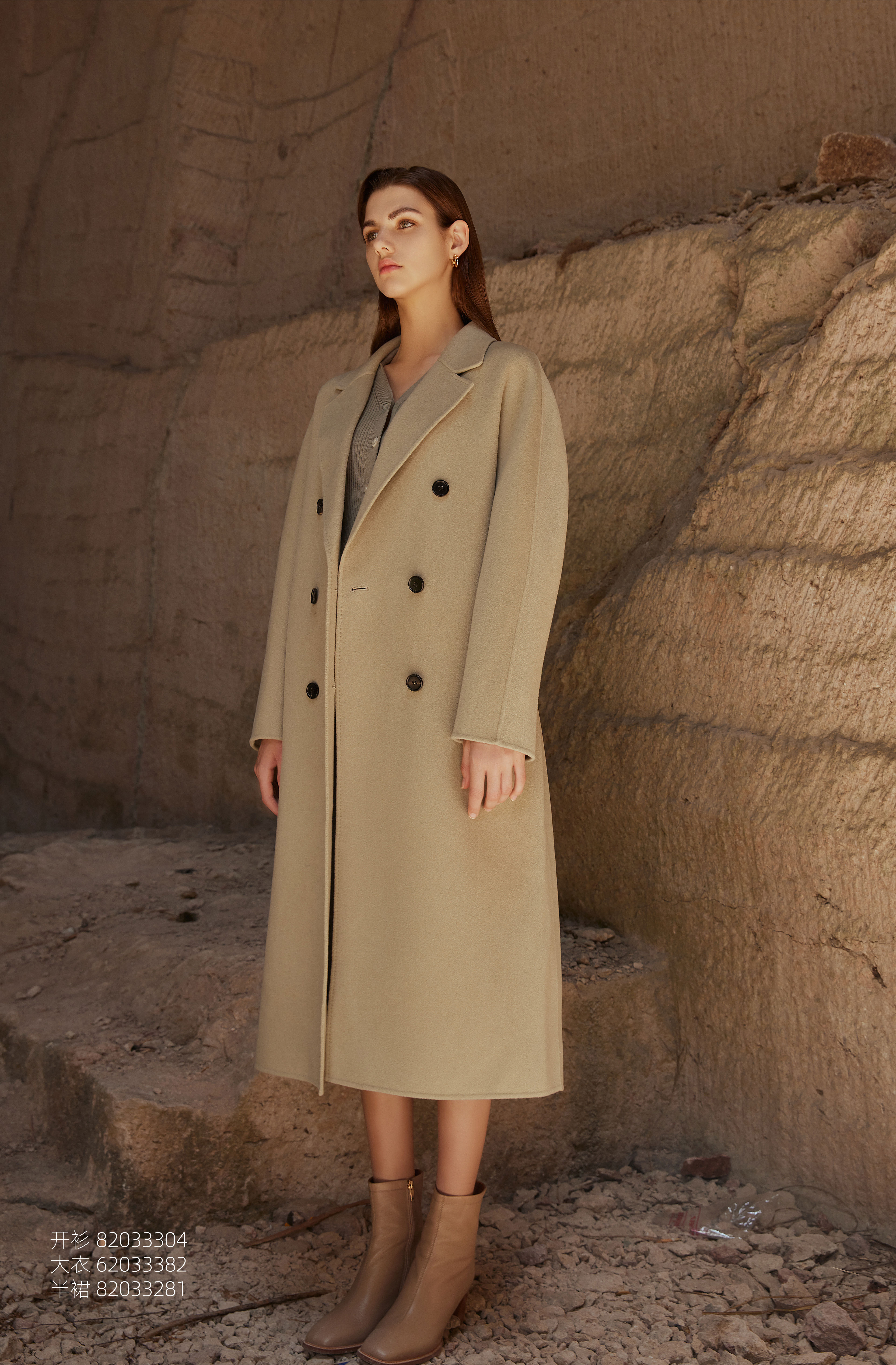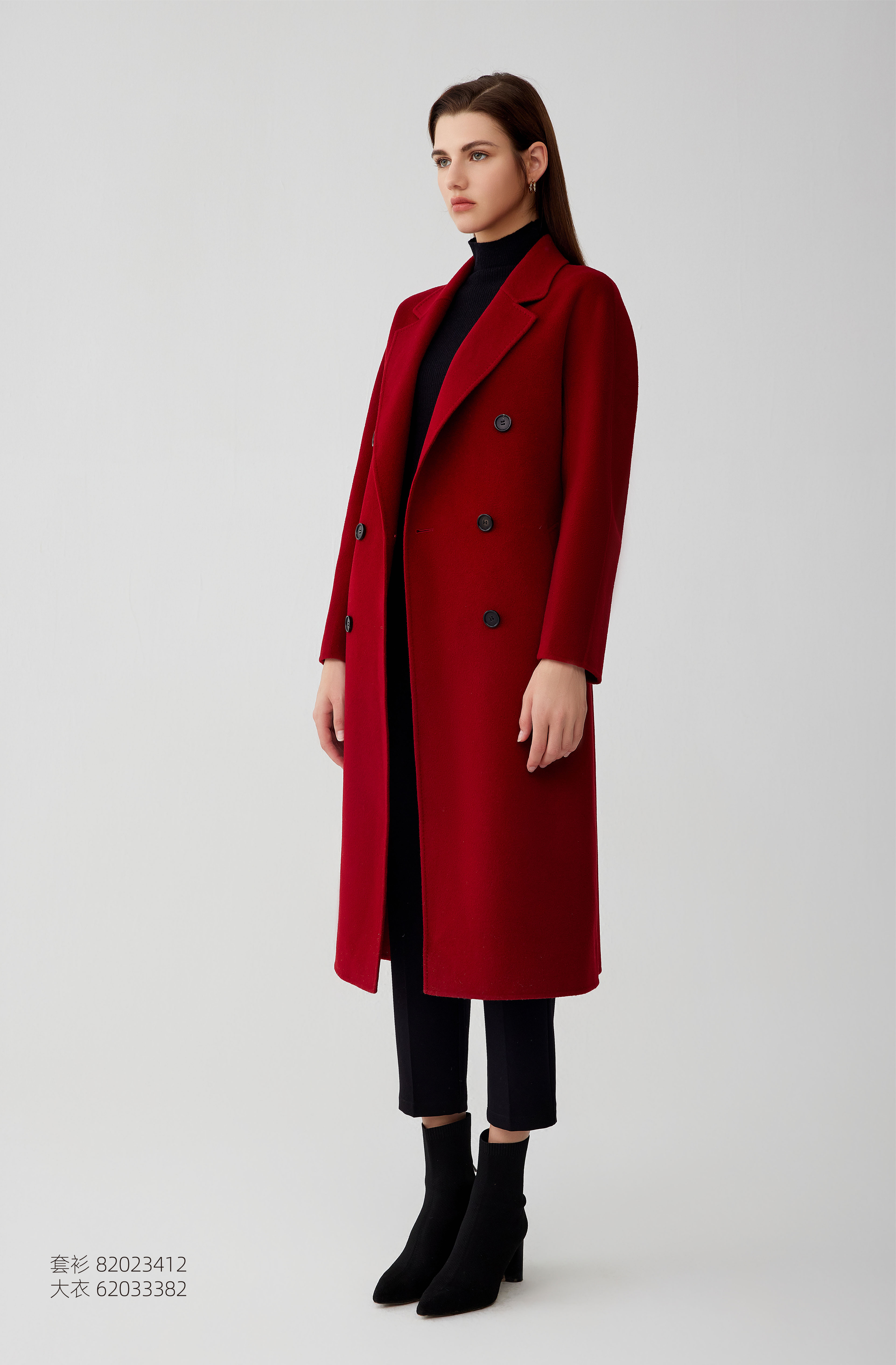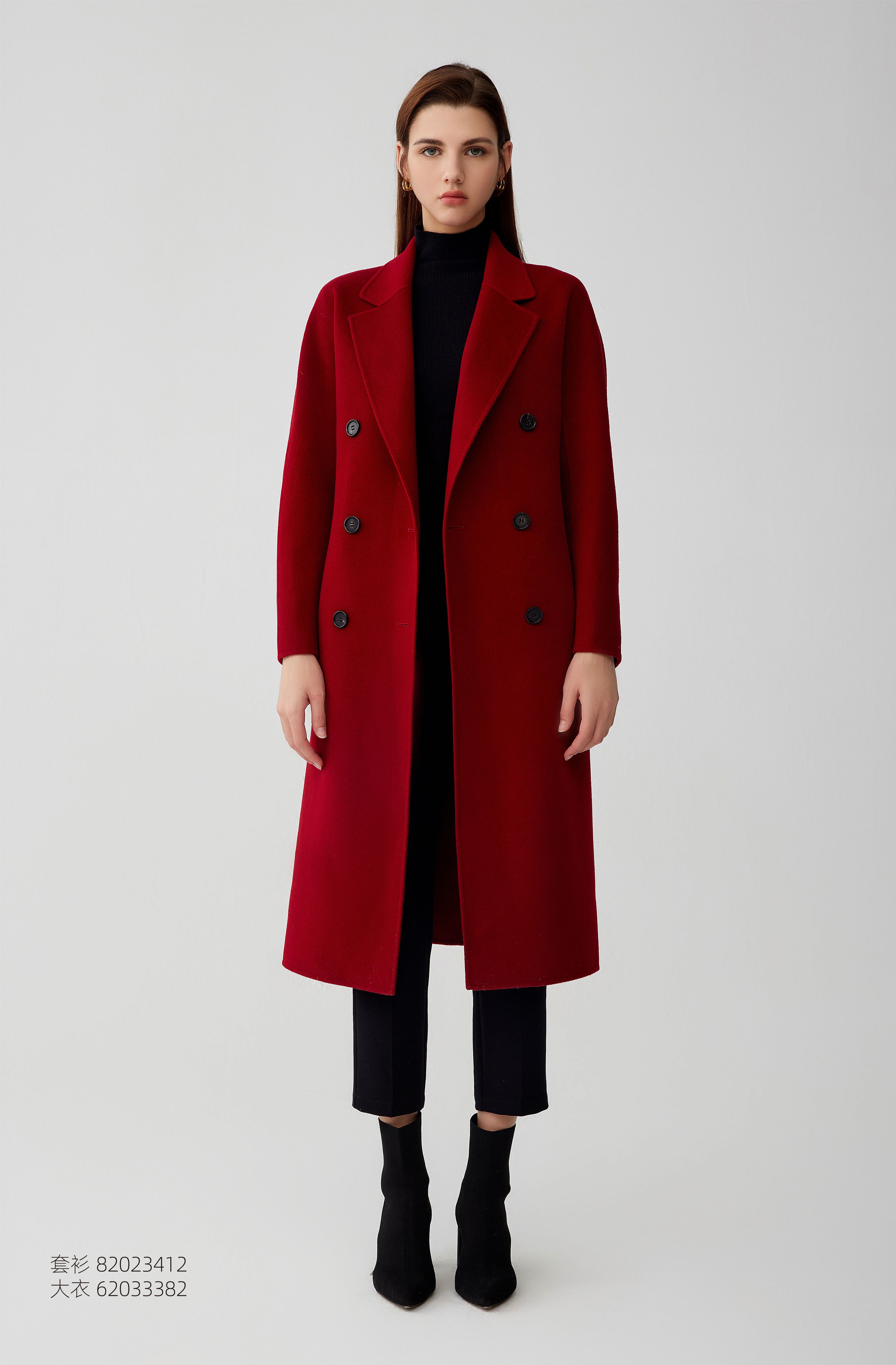 【中长款腰带羊毛大衣】23年秋冬新品女士羊毛大衣时尚经典双排扣大衣