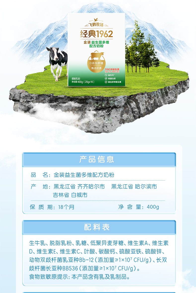 飞鹤1962金装益生菌盒装400g