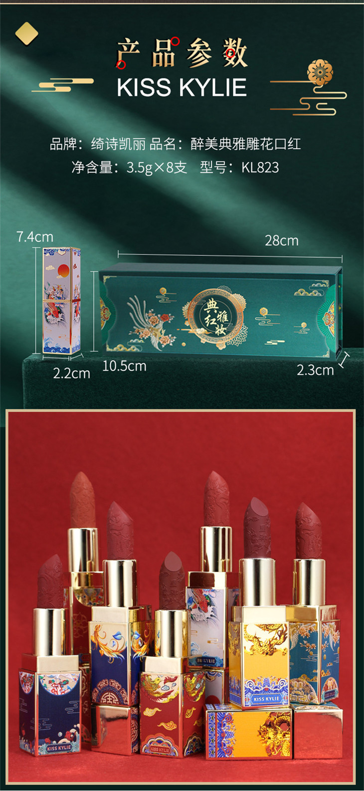 绮诗凯丽 醉美典雅雕花口红套装 口红8支装/唇釉6支装