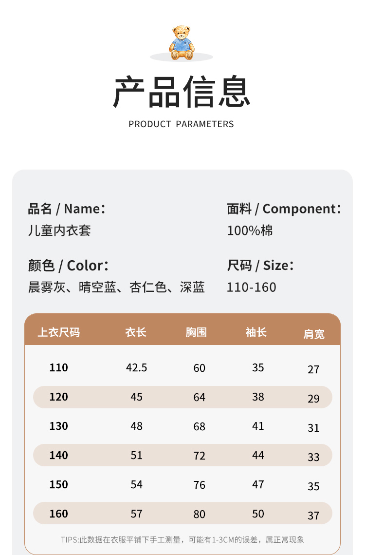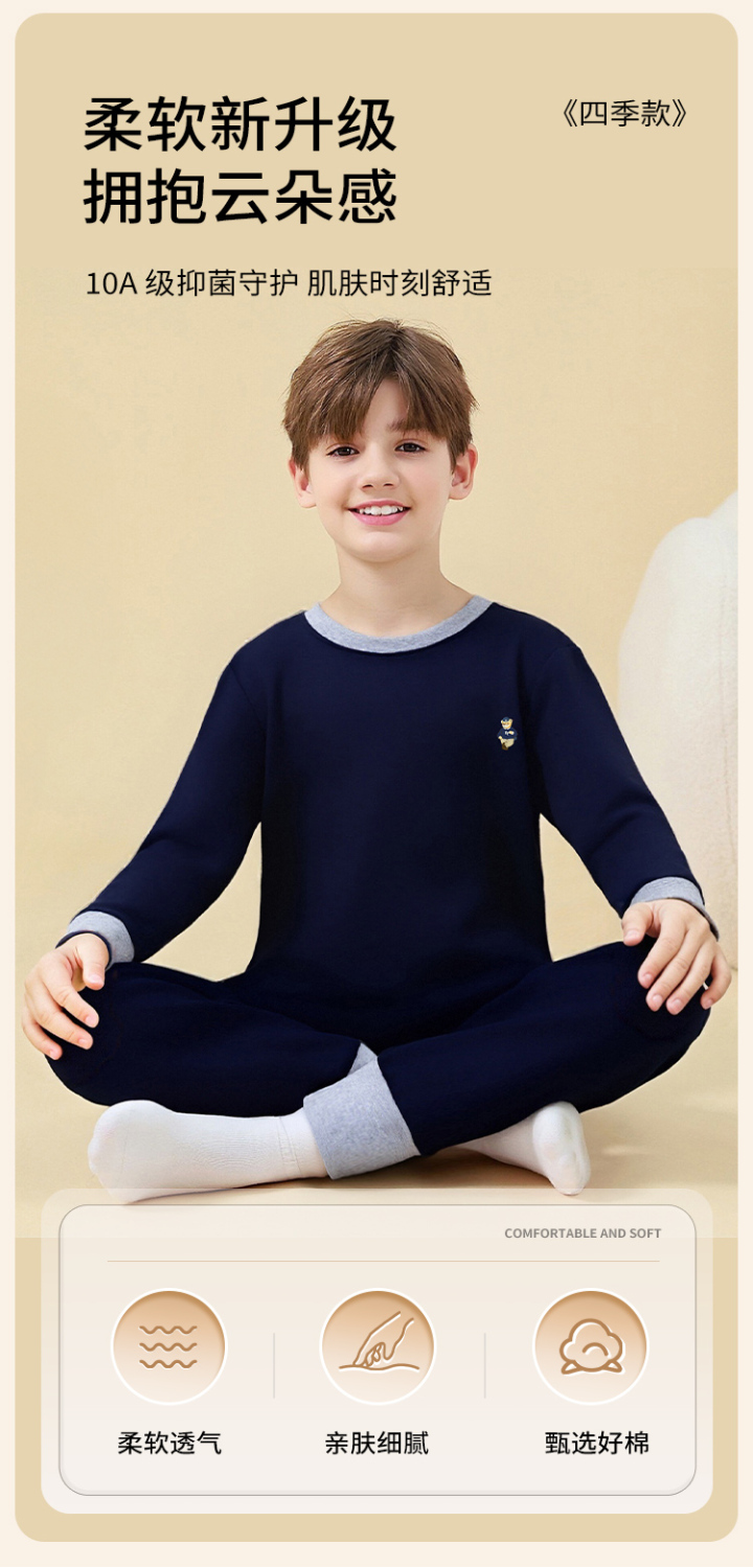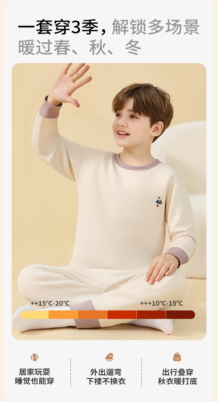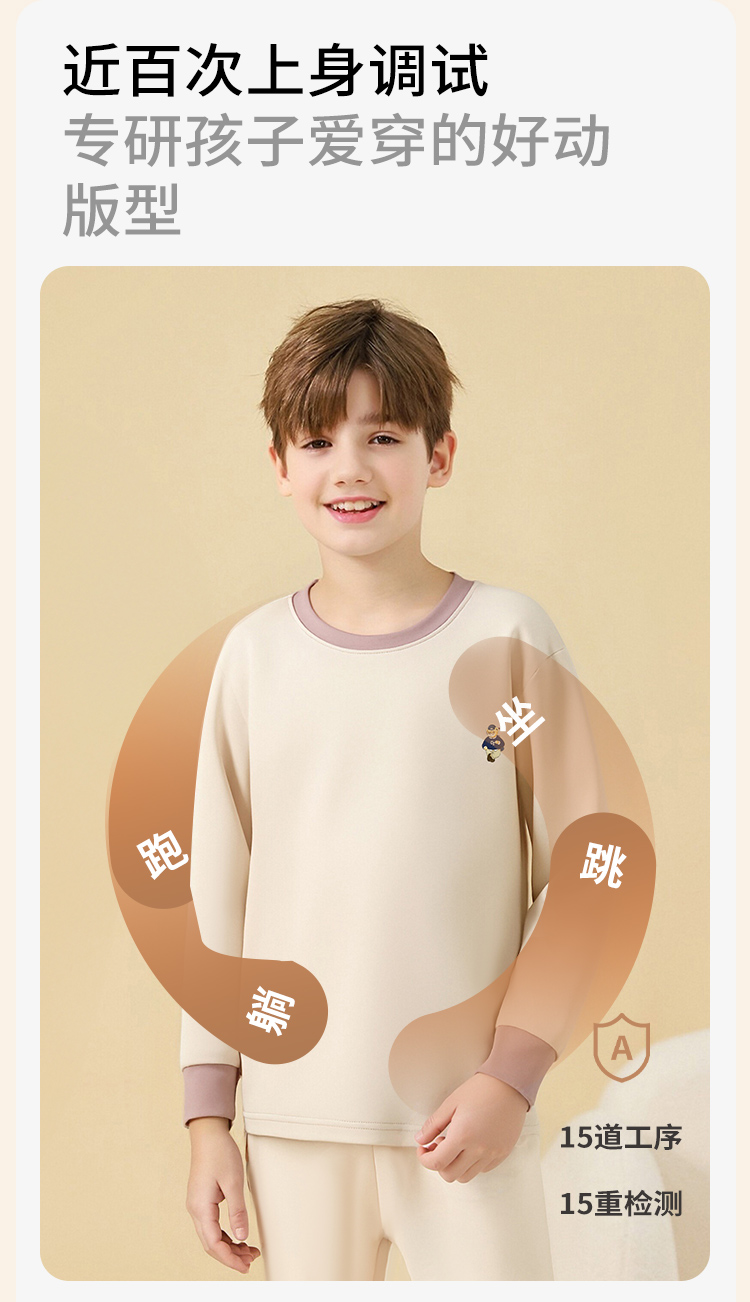【10A抑菌】【110-150】【精典泰迪】男童纯棉保暖内衣套装