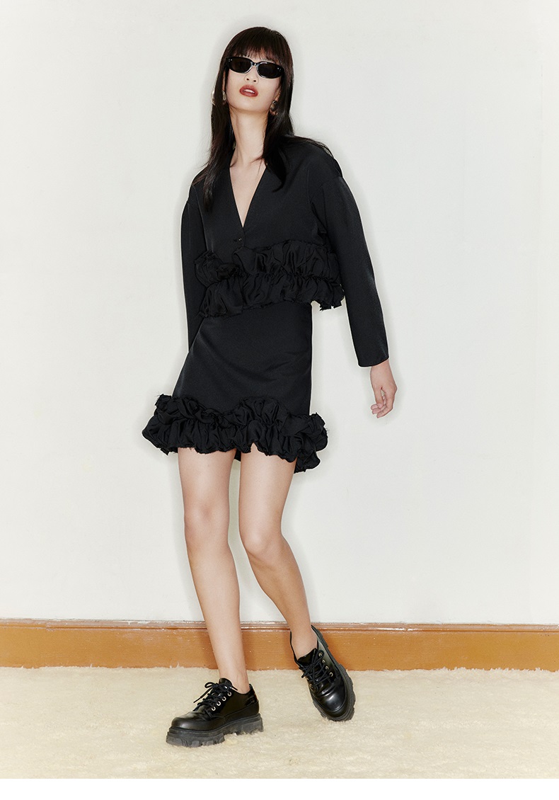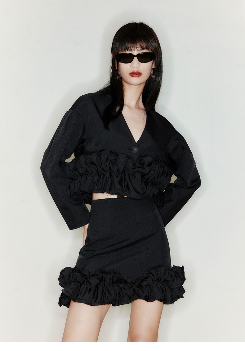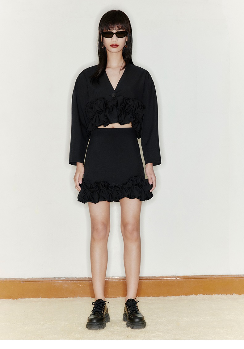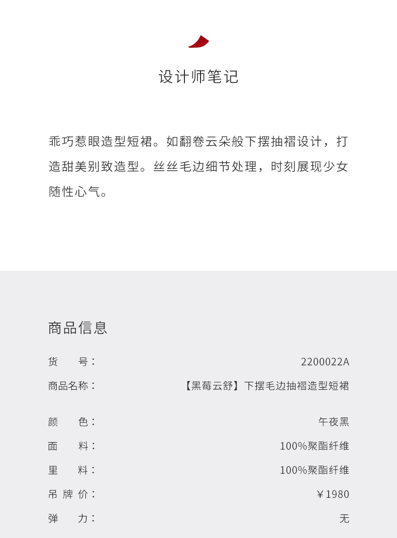 【黑莓云舒】下摆毛边抽褶造型短裙/2200022A