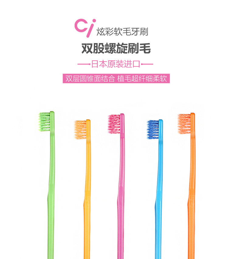 【马泷专属】(3支38元) CI 日本进口炫彩牙刷双层螺旋小头软毛深层清洁护牙龈不炸毛