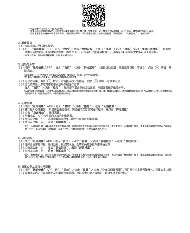 说明:1、心率功能需要安卓特定机型配合app使用,具体请参考后面图文介绍。