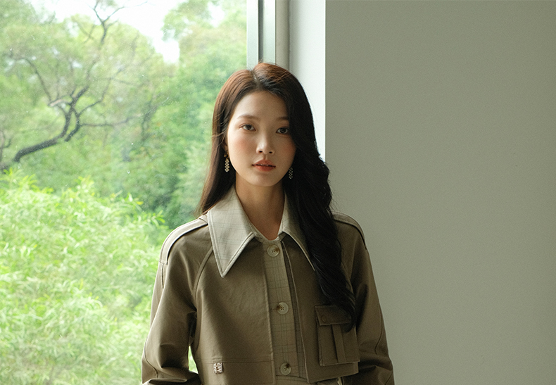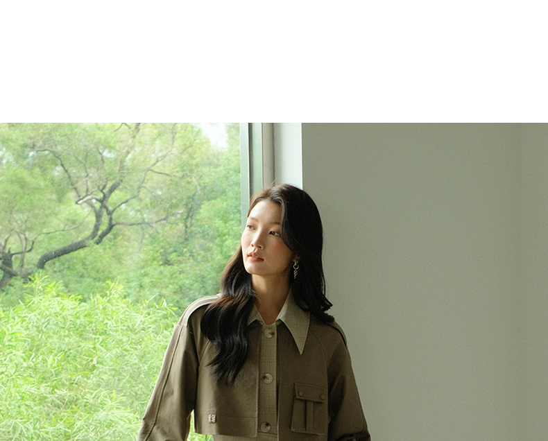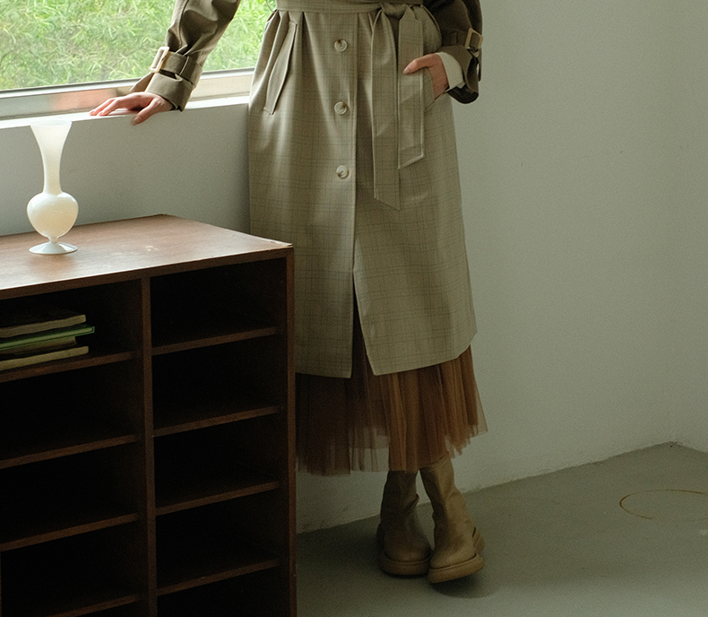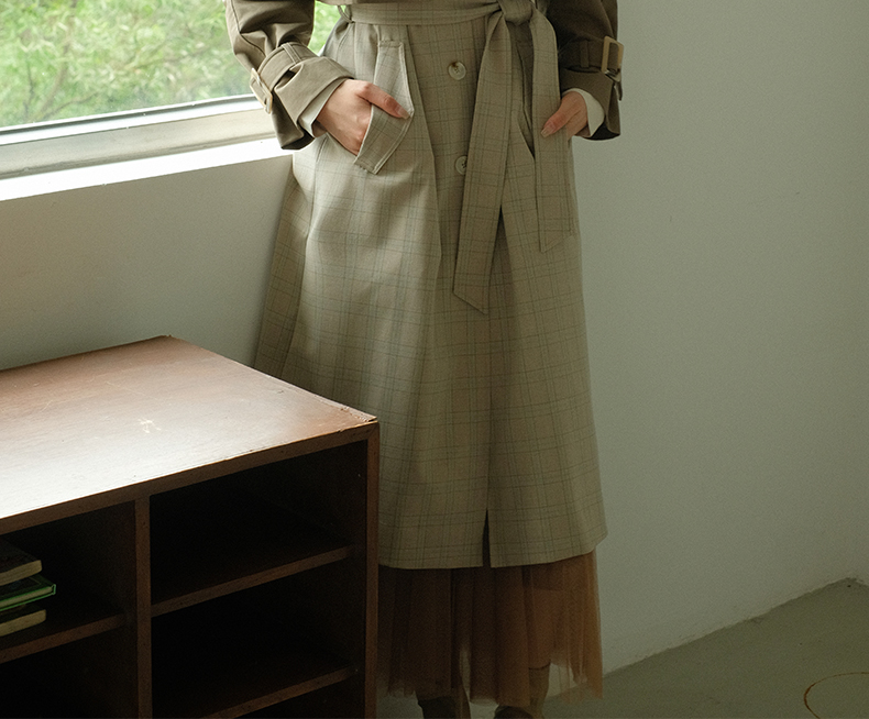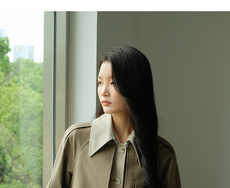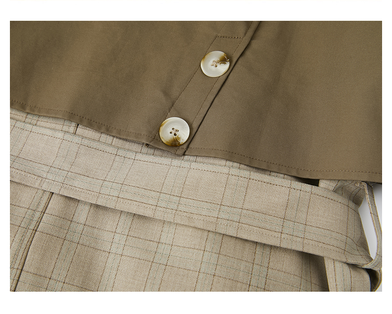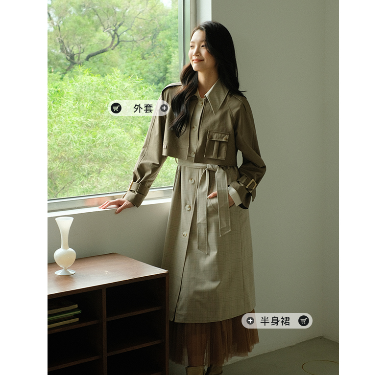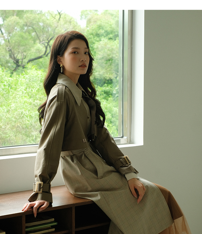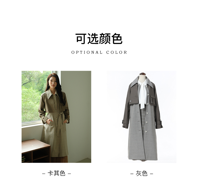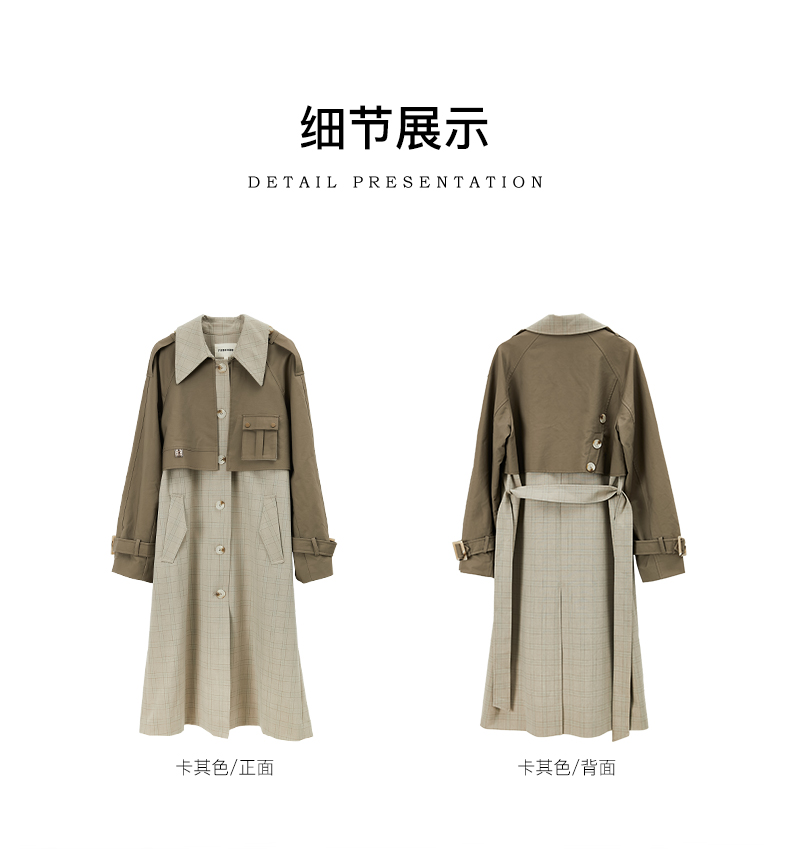 Famecoco商场同款风衣长款假两件拼接高腰翻领通勤春款FAB6AT004