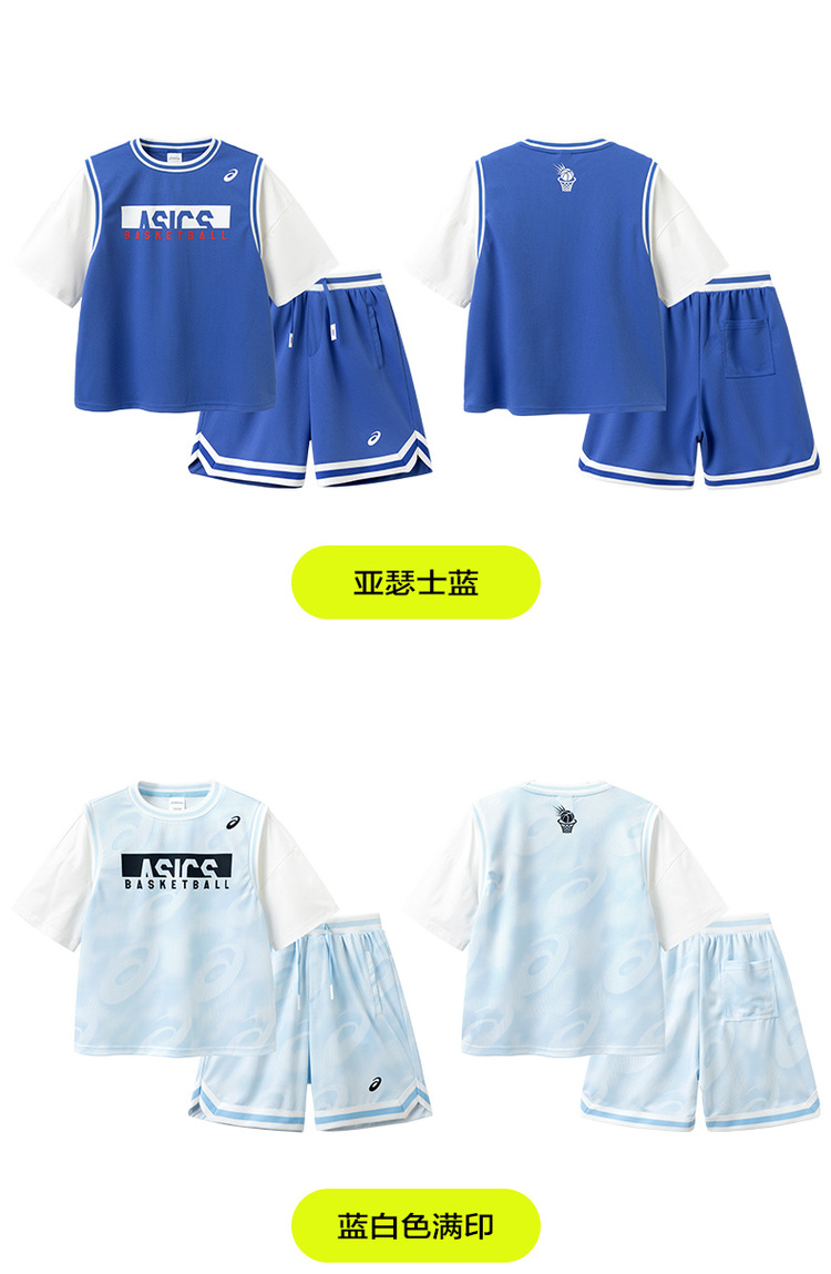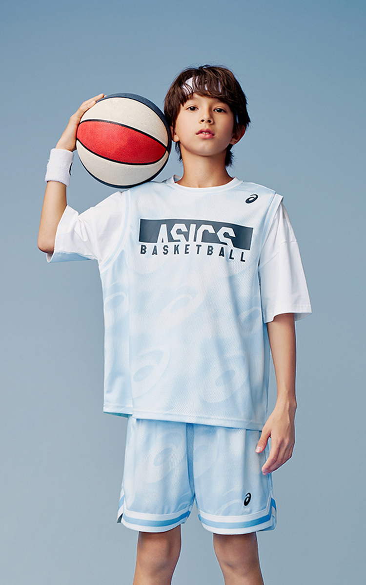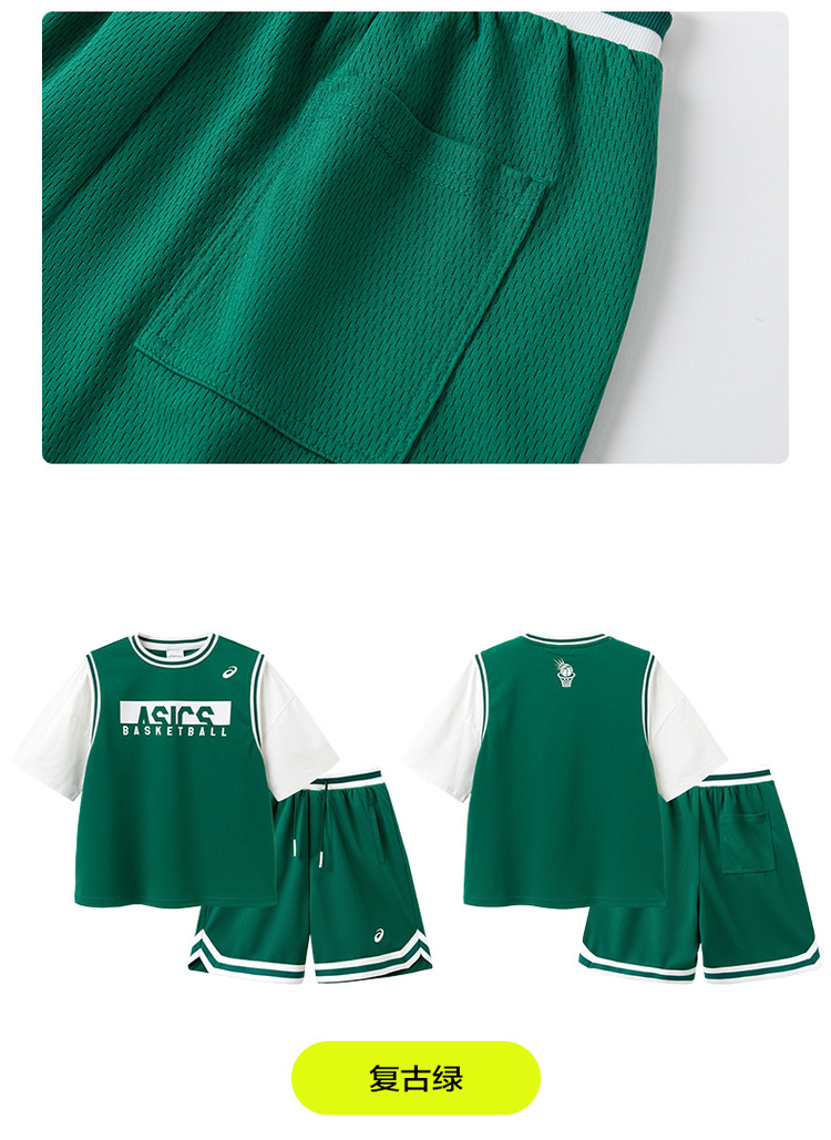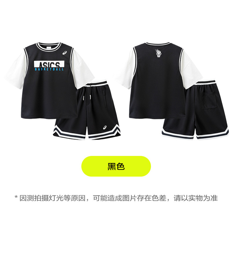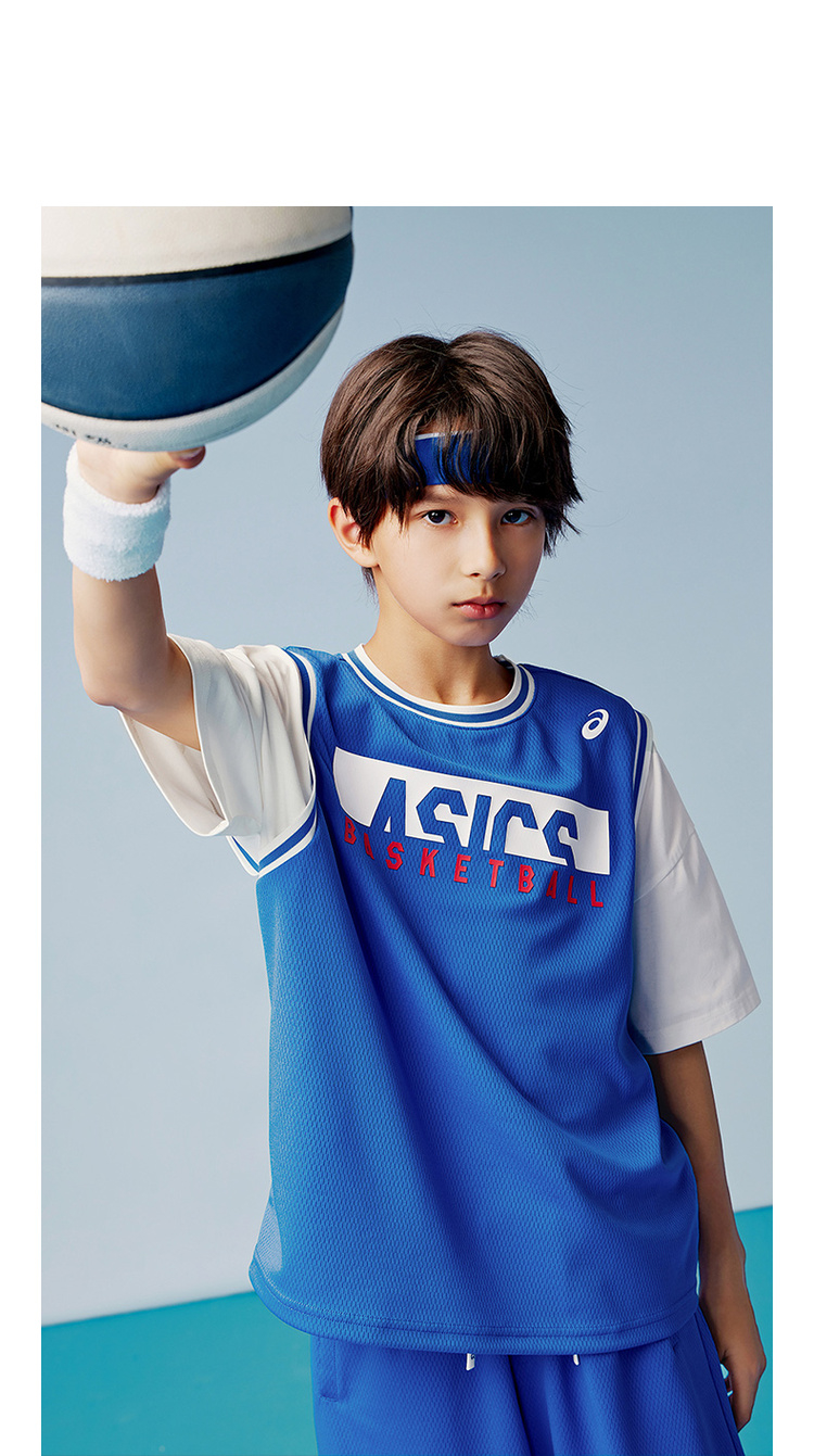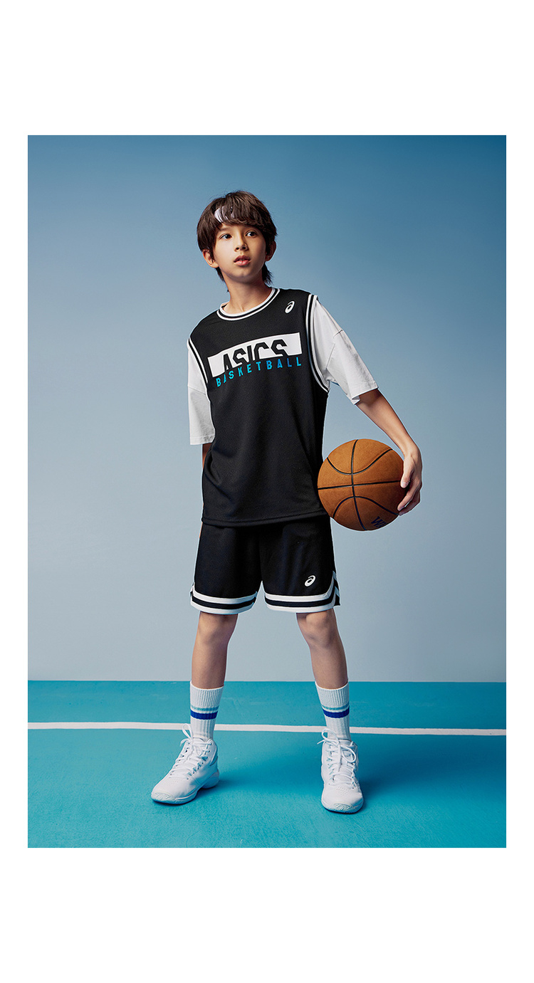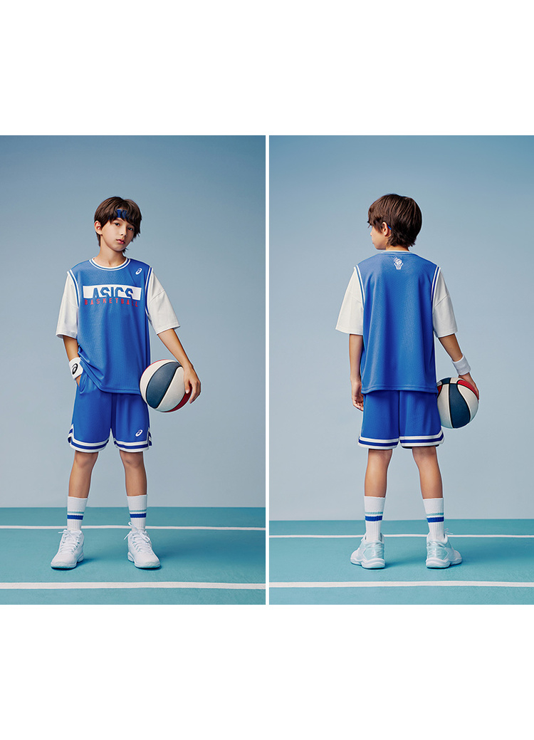 ASICS/亚瑟士童装2024春夏季男女童吸湿速干篮球套装短袖T恤短裤