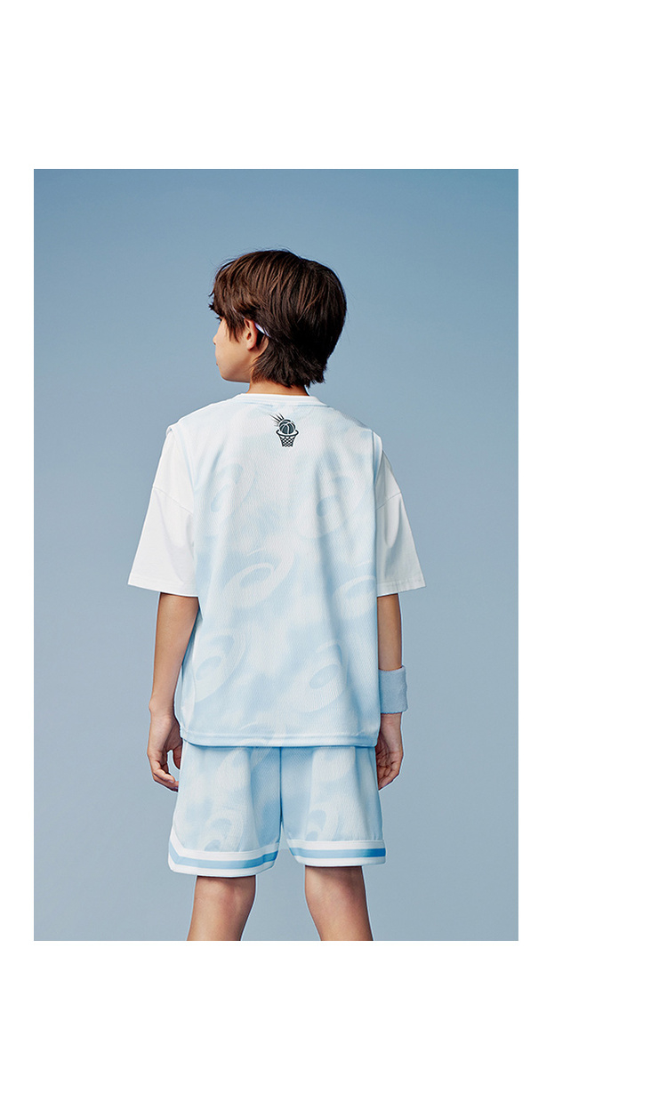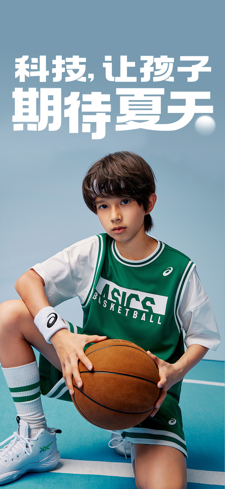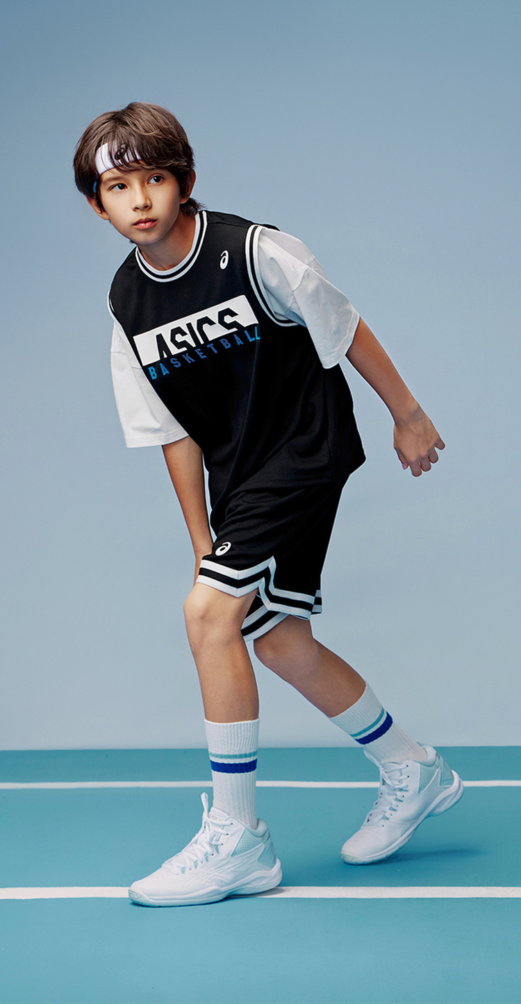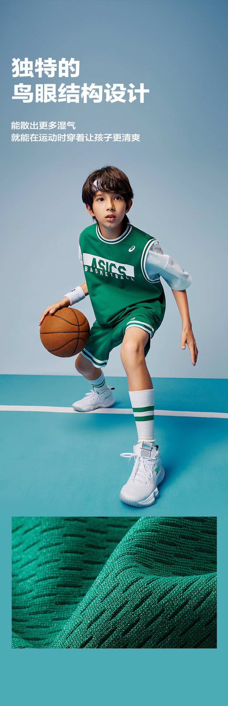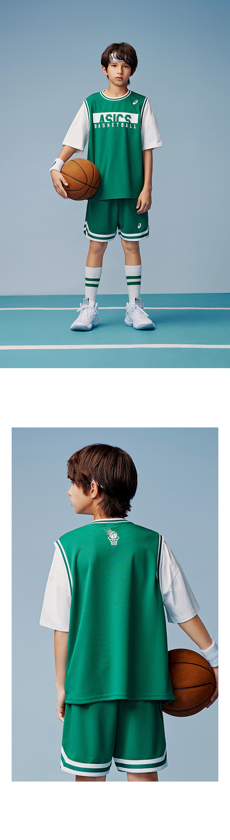 ASICS/亚瑟士童装2024春夏季男女童吸湿速干篮球套装短袖T恤短裤
