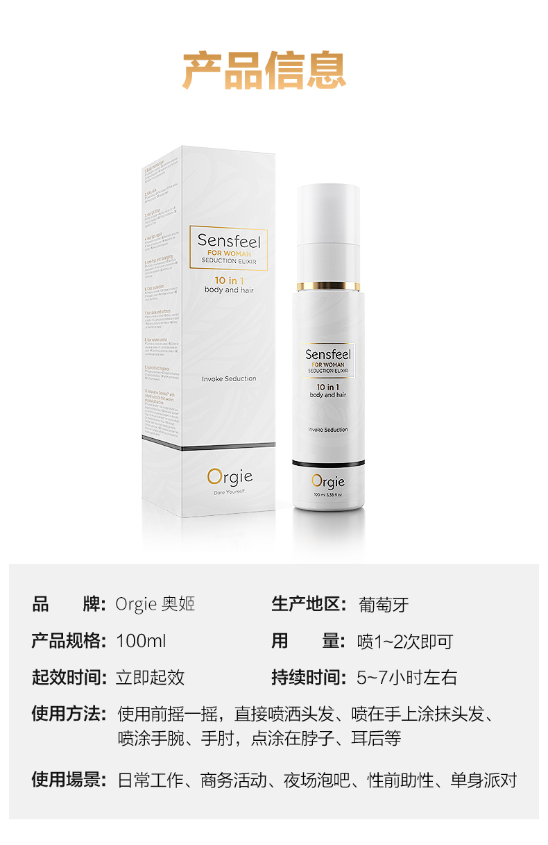 Orgie植物费洛蒙秀发发用费洛蒙香水香氛喷雾香水100ml