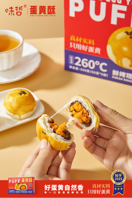 味哲蛋黄酥,畅销8年,经典品质❗ 源自味哲8年的品质坚持,每一口都是香酥软糯! 好蛋黄、好黄油、好红豆、好面粉, 把阳光和海洋都装进心里, 甜咸的红豆沙和海鸭蛋黄交融, 只要你一口咬定,快乐就顷刻露馅!