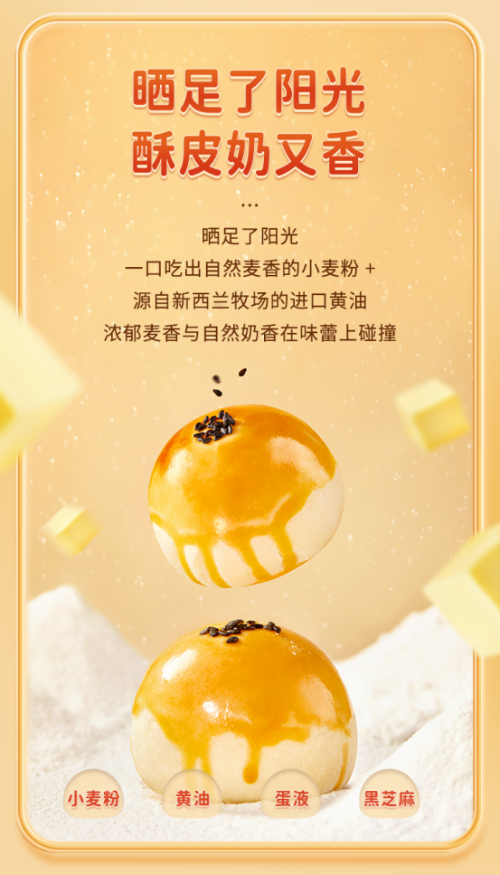 糯叽叽脑袋看过来!真的好好吃啊! 软fufu的雪媚娘, 包裹着红豆与蛋黄, 和阳光一起翻越酥海, 平衡出了蛋黄酥幸福美妙的口感。