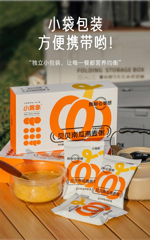 小黄象贝贝南瓜燕麦粥2分钟即食0添加0色素0蔗糖 360g(36g*10包)
