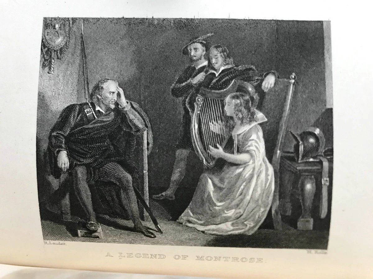 1871年 司各特《蒙特罗斯传奇》 约6幅版画插图 漆布精装32开