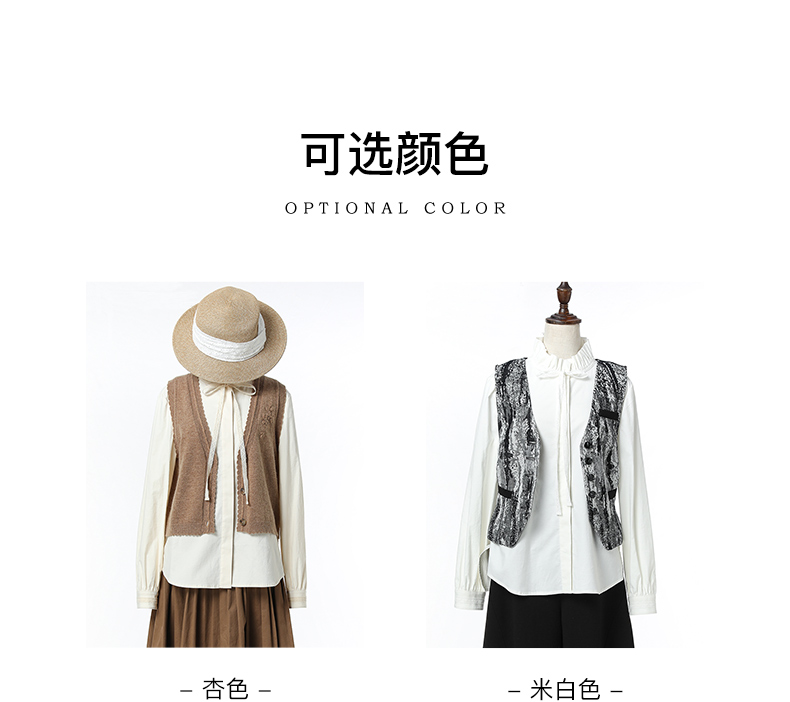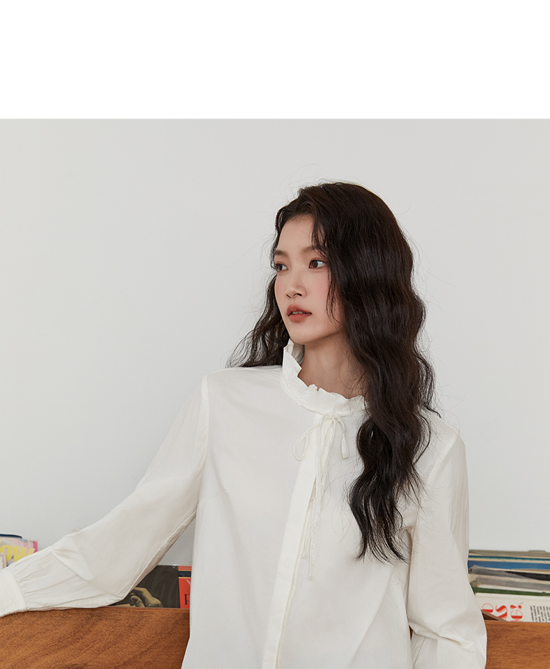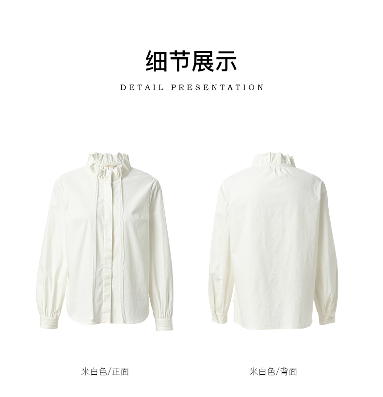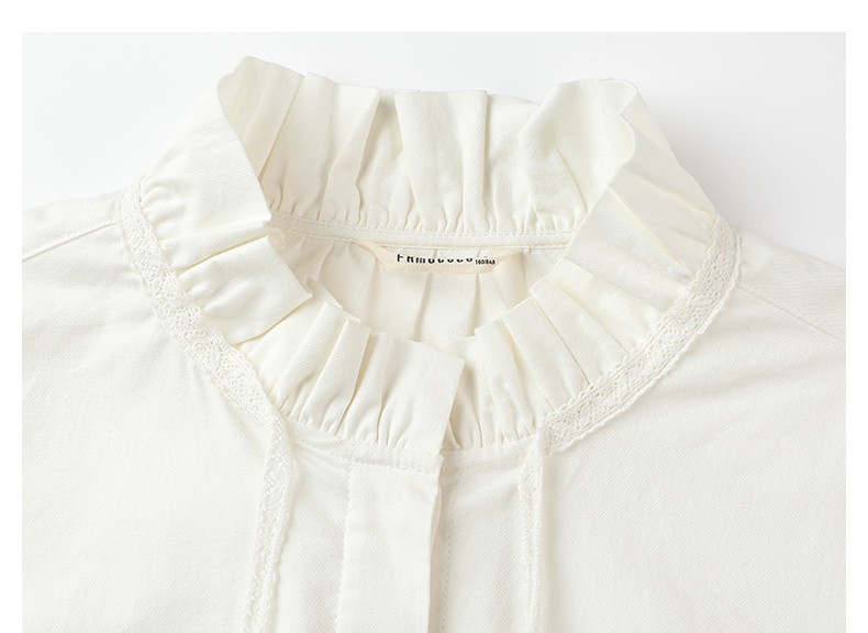 Famecoco范可儿衬衫棉质花边领系带纯色开身衬衣内搭女装春秋款