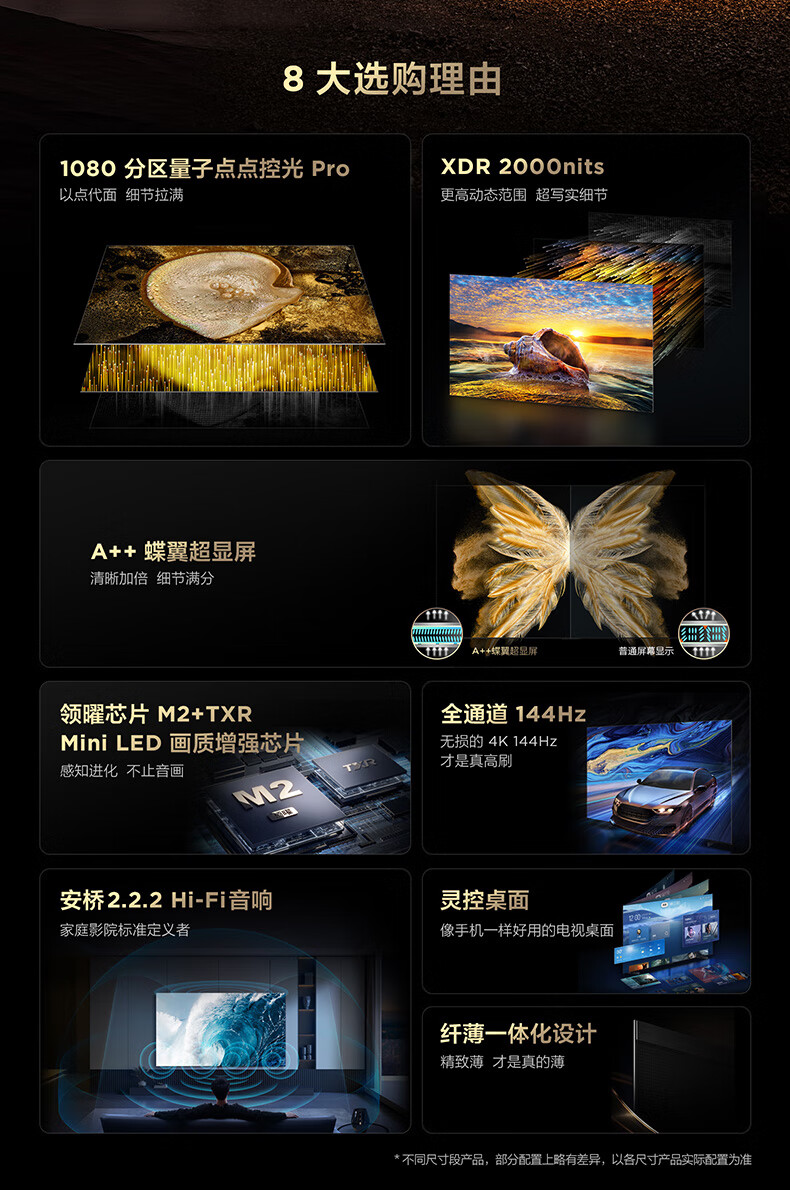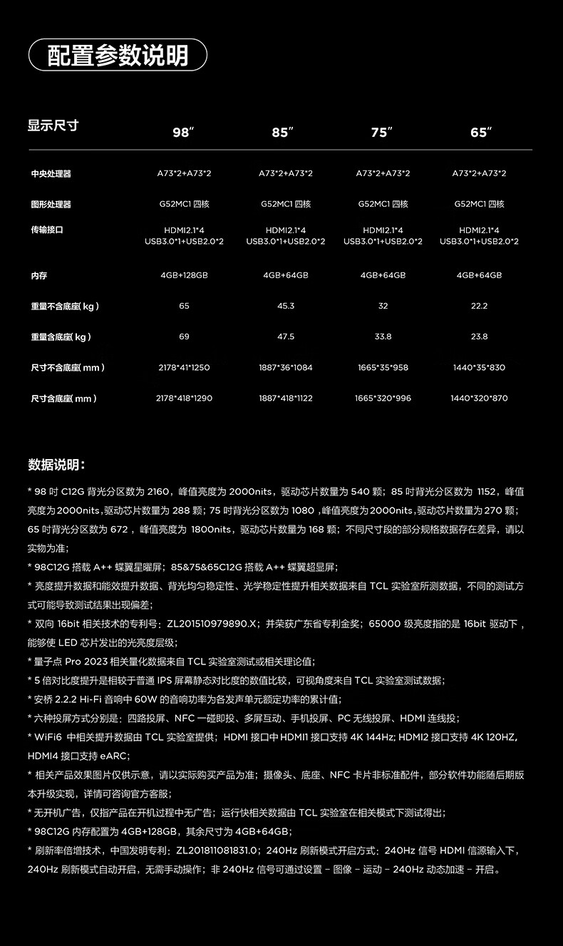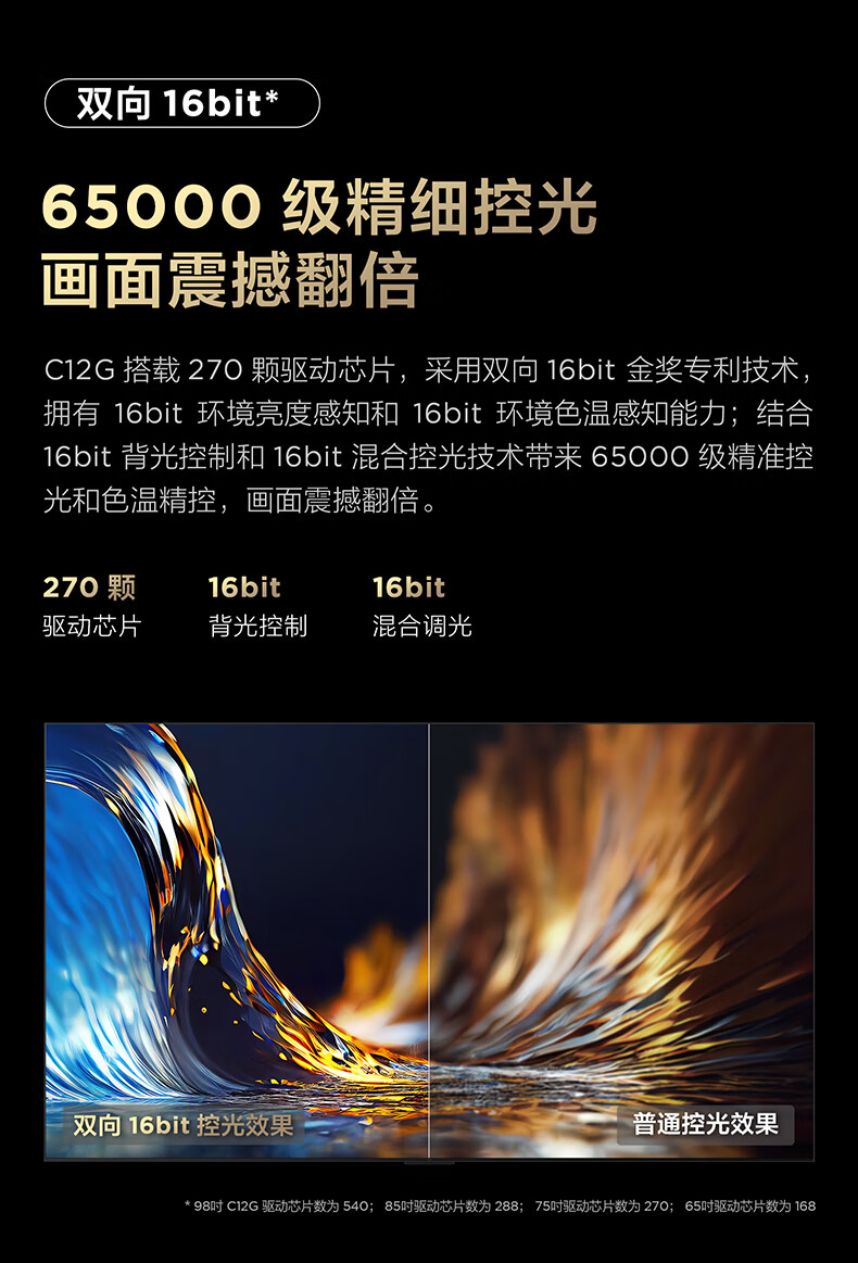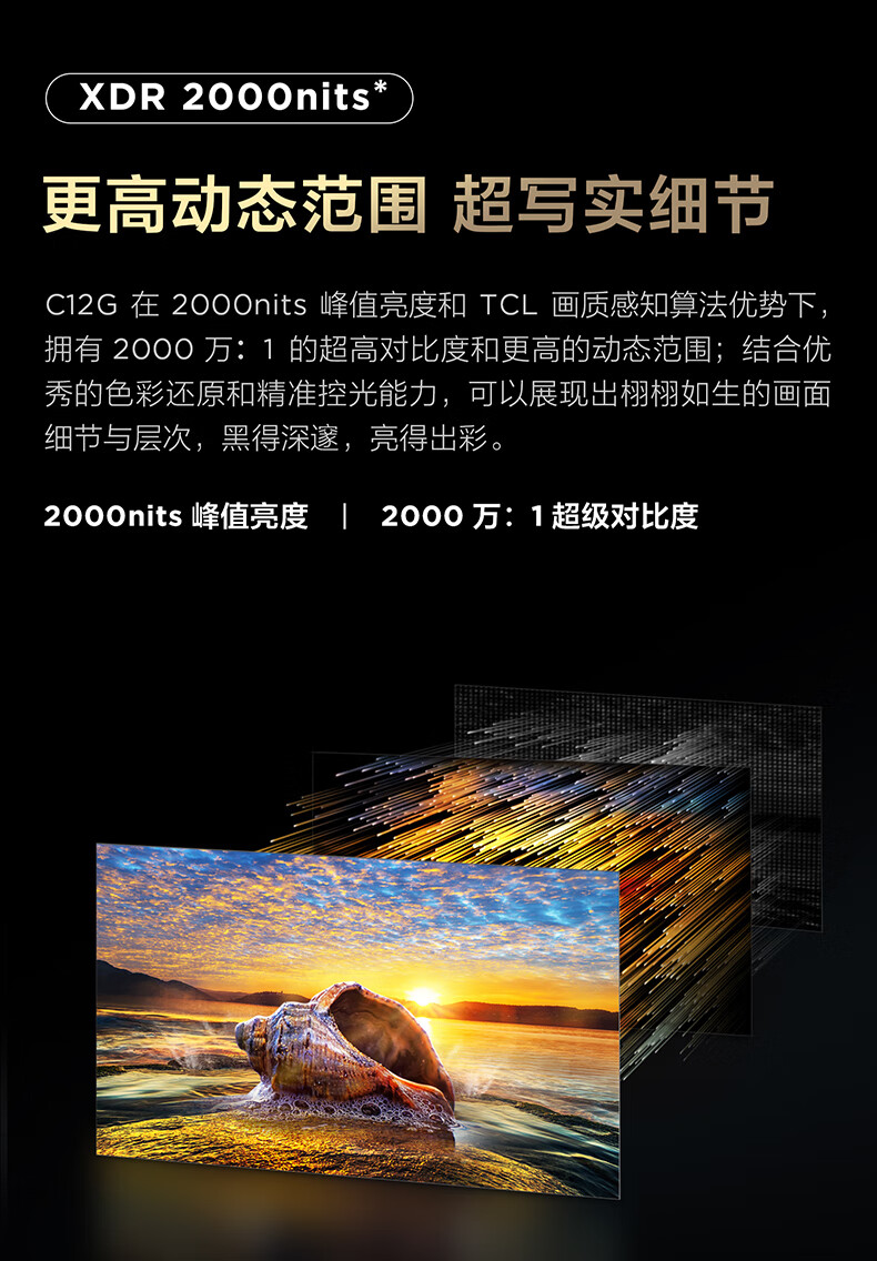 【电视机特购活动】TCL电视 65/75/85/98寸 C12G 1080分区量子点点控光Pro XDR2000nits A++蝶翼超显屏