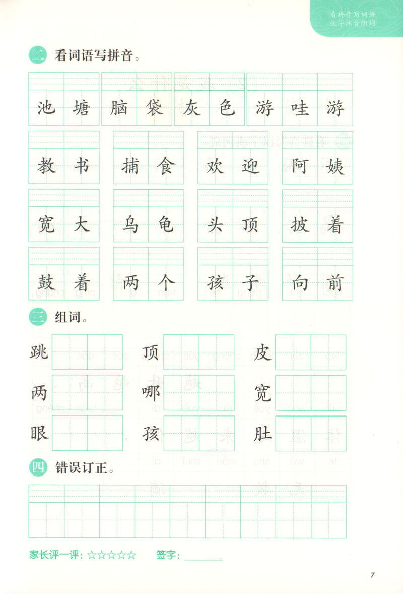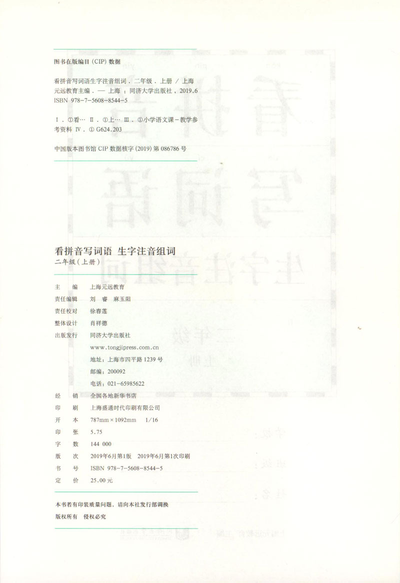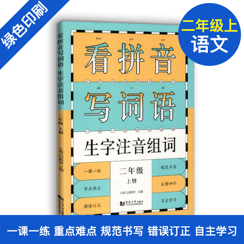 看拼音写词语 生字注音组词 二年级上册/2年级第一学期 配套统编版语文教材 一课一练写字课 小学二年级语文 同济大学出版社