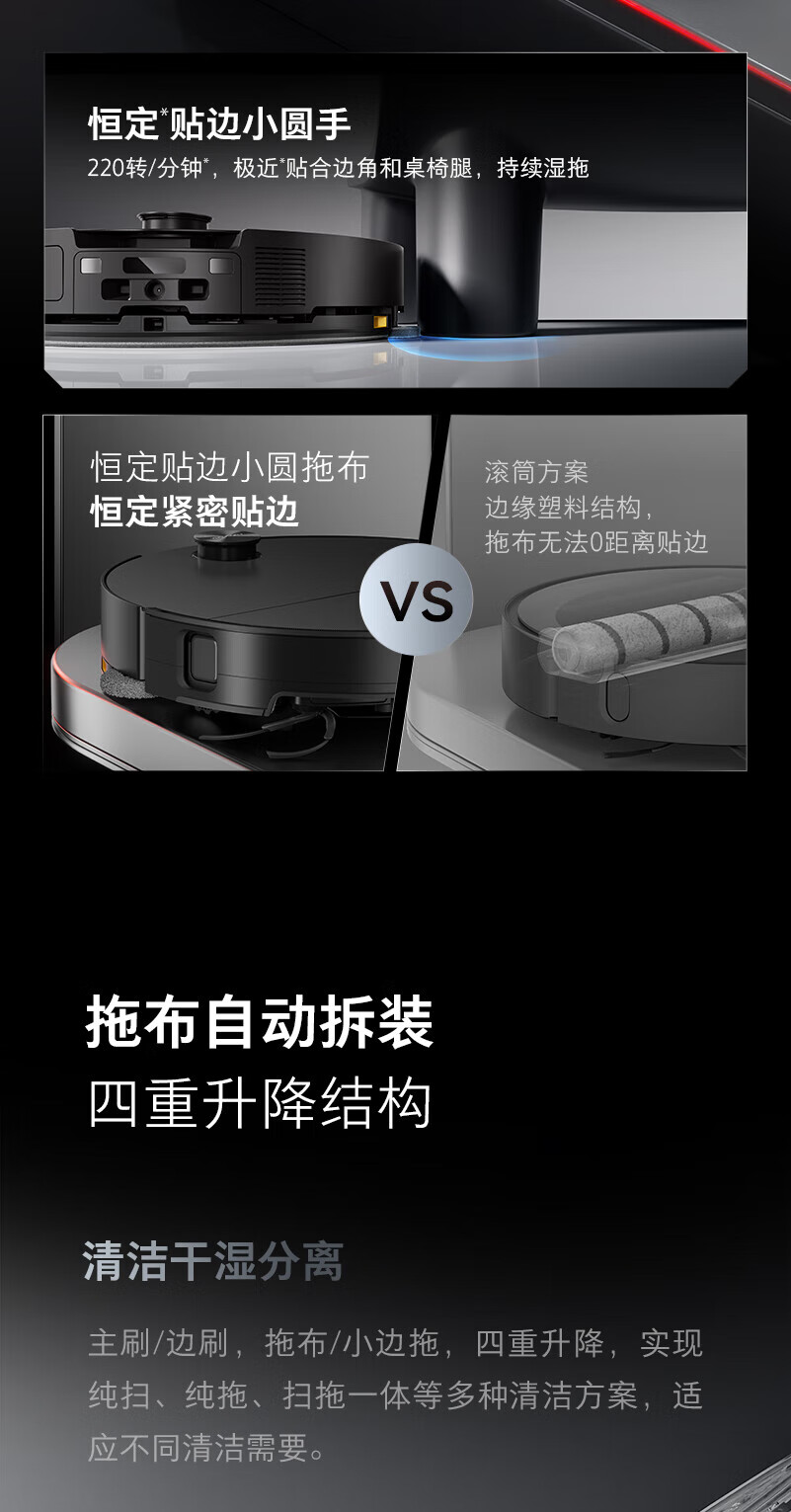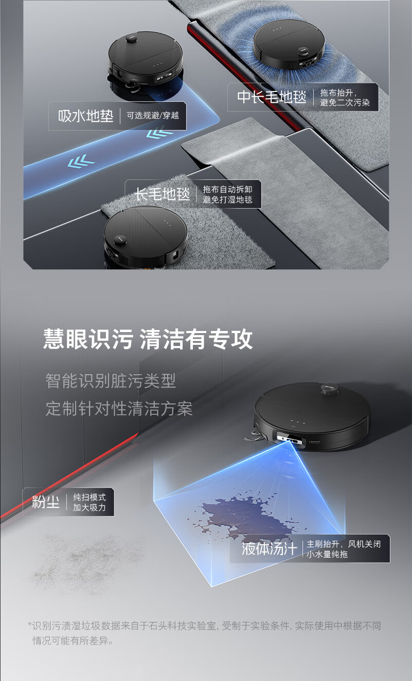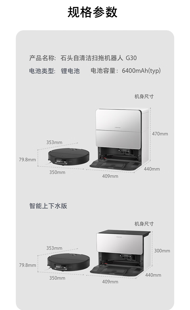 石头(roborock)扫地机器人扫拖一体 G30 扫拖洗烘一体机 自动集尘热水洗拖布烘干洗地机吸尘器 A1460RR 水箱/上下水