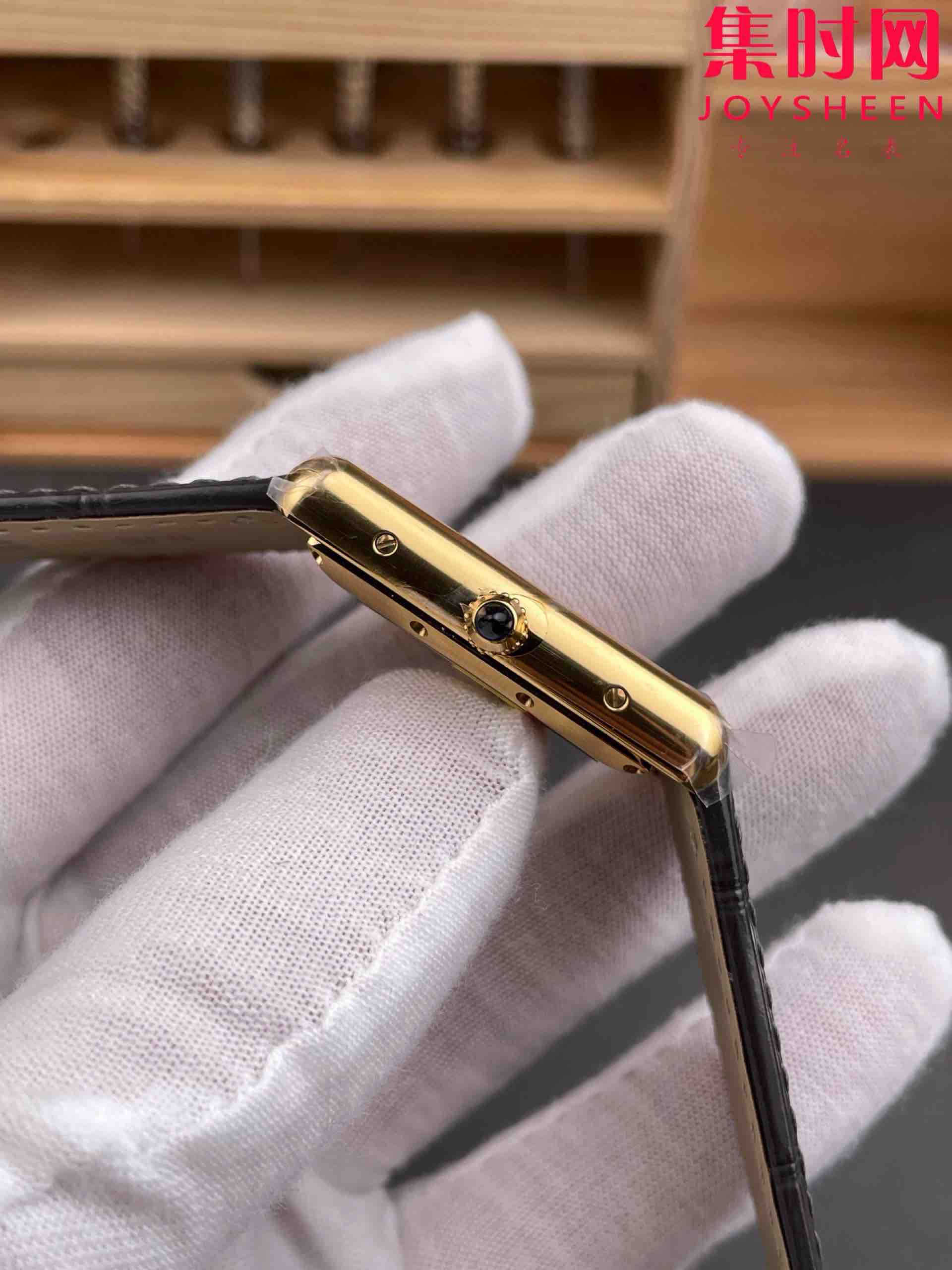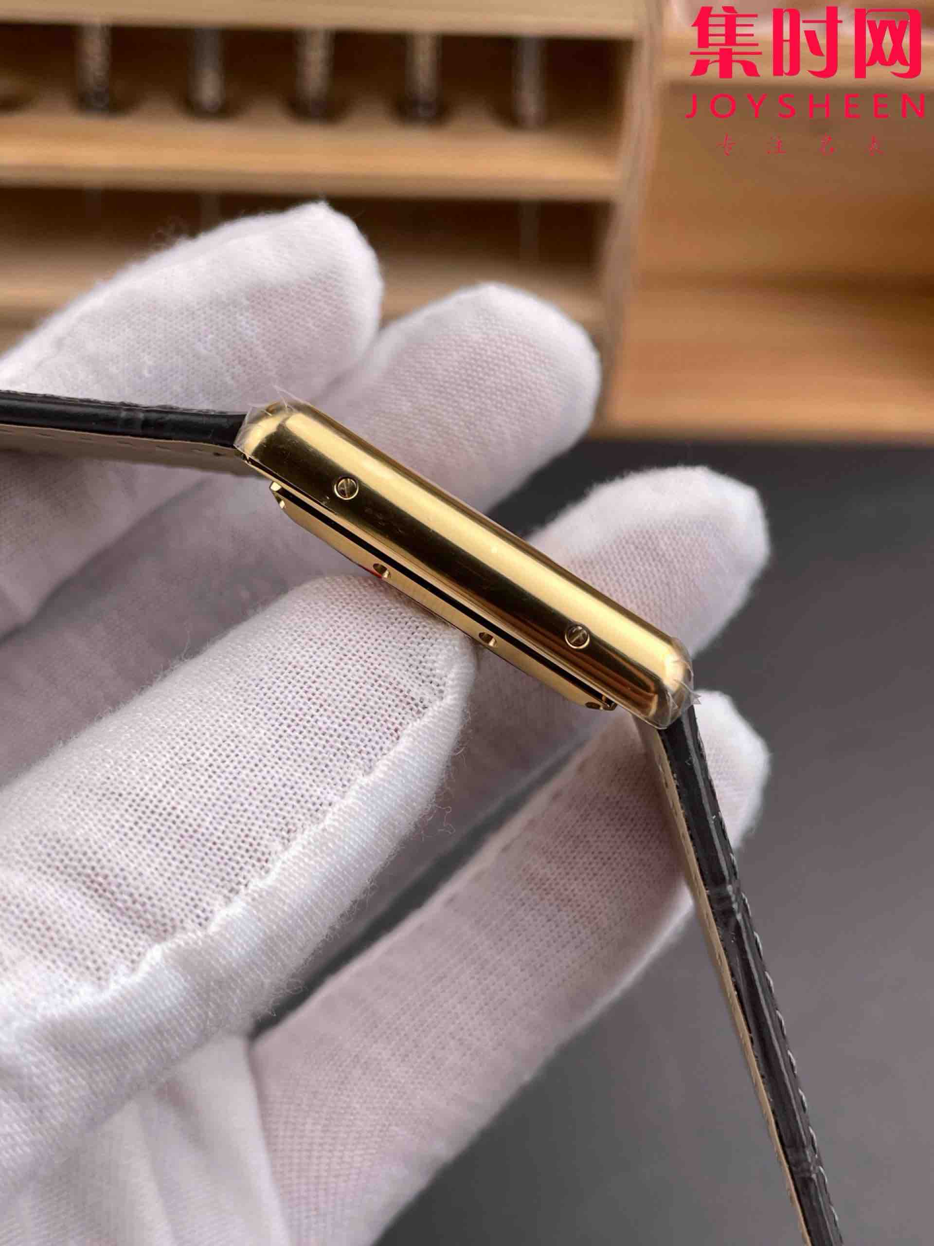 新卡家Tank Louis Automatic 全新大号表款,延续矩形美学风格!这是近50年来第yi款搭载自动上链机械机芯的Tank LC腕表。在美学设计方面,新款腕表与我们熟知并喜爱的上一代LC系列基本一致:烧钢蓝时分指针,搭配经典的半哑光鳄鱼皮表带,与表壳相配的串珠表冠镶嵌凸圆蓝宝石。新款与老款明显不同的是:表盘饰有独特的旭日放射纹,这种表盘图案与我们熟悉的卡家表盘处理方式截然不同,或许在暗示其内部搭载的是自动机芯。 38.1*27.75mm的经典尺寸,配以定制的1899Mc超薄机芯,表壳整体厚度才8.18mm,腕表整体感觉灵动优雅,男女都可以佩戴!