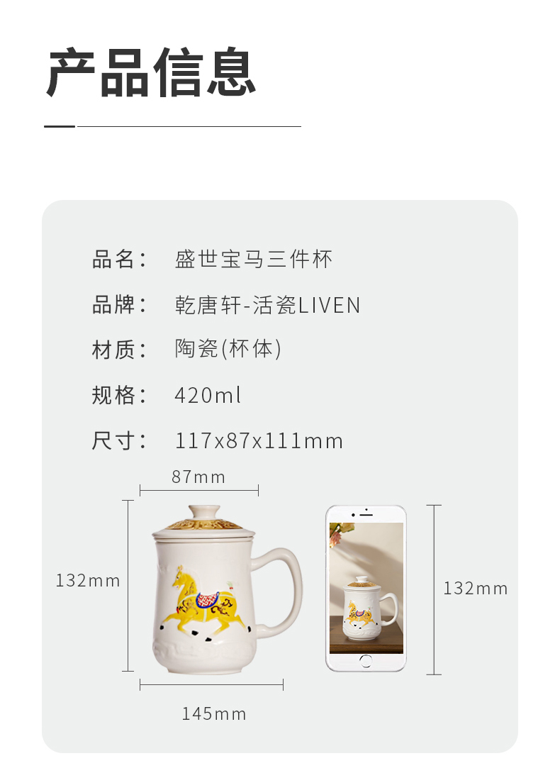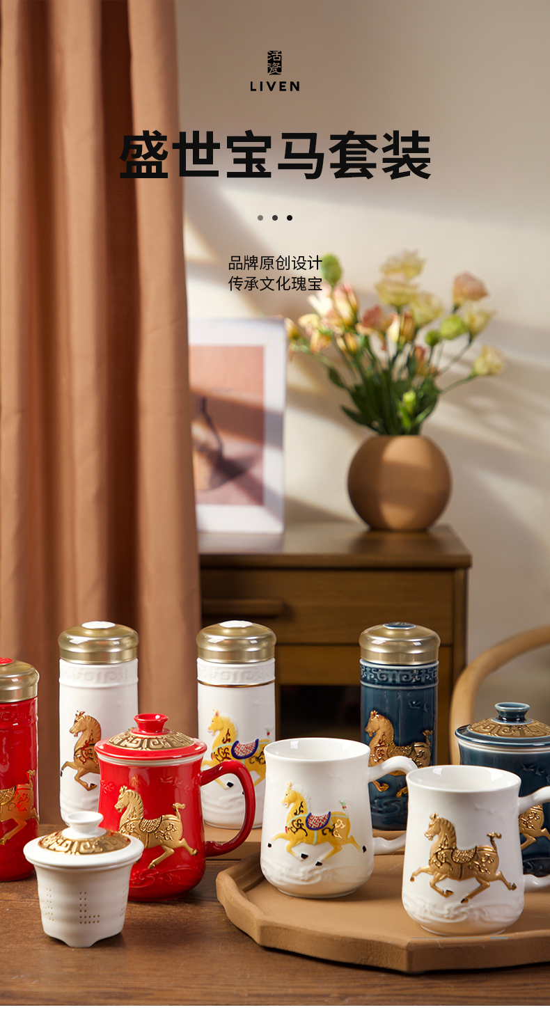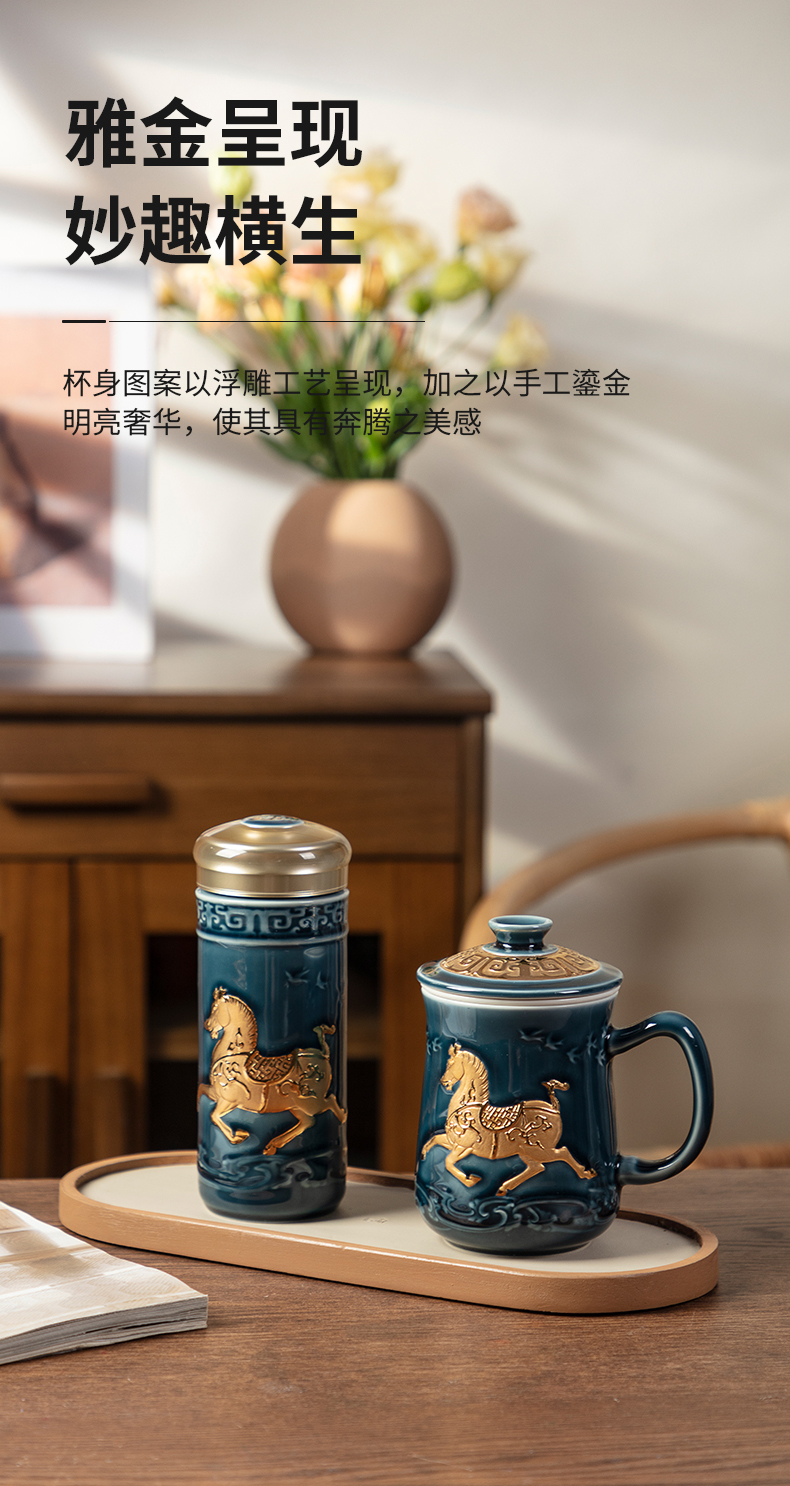 【组合套装】盛世宝马随身杯+三件杯组合套装(汉代汗血宝马) 350ml双层/420ml
