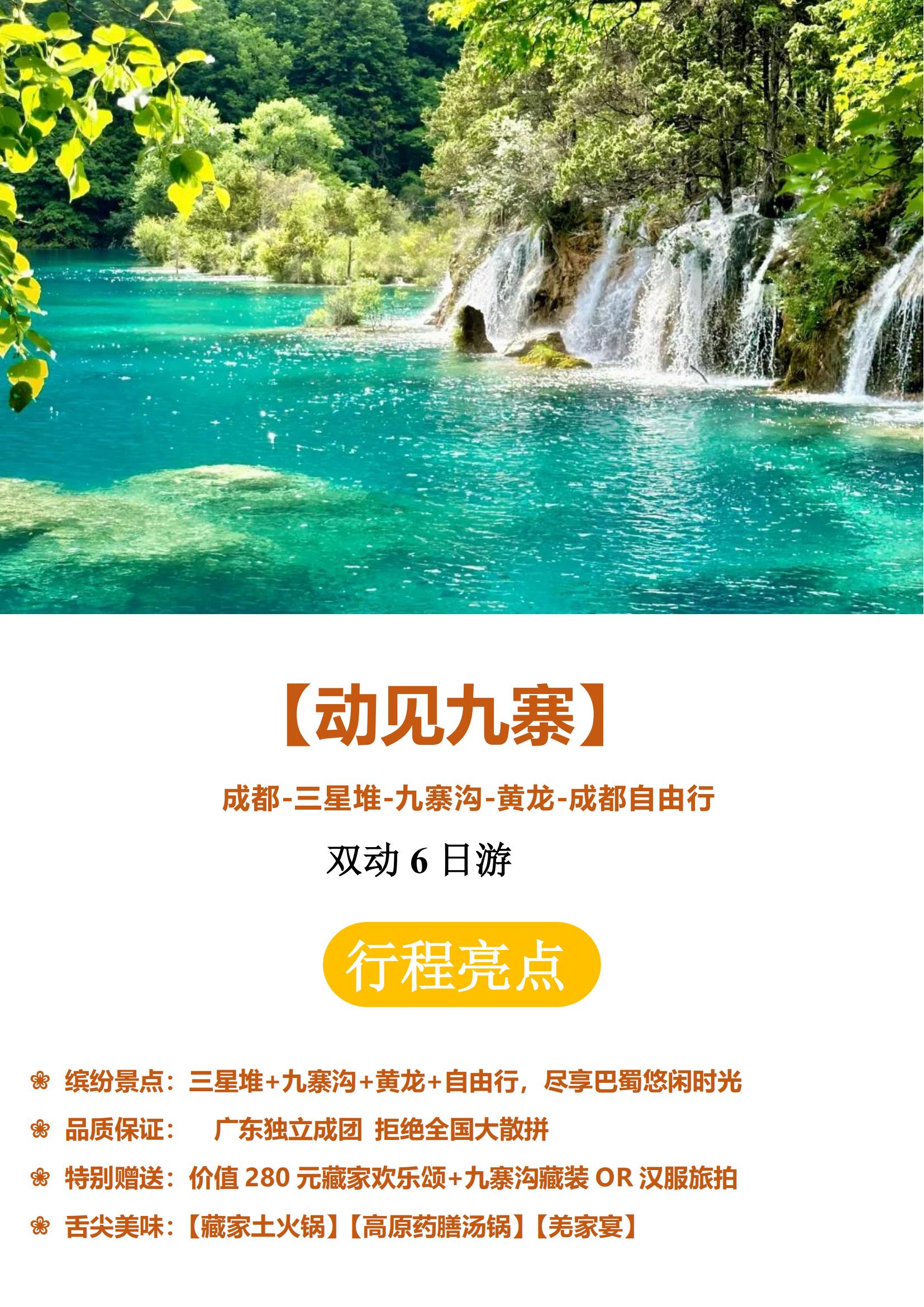 【秘境九寨线】九寨沟+三星堆+黄龙+大熊猫基地6天5晚