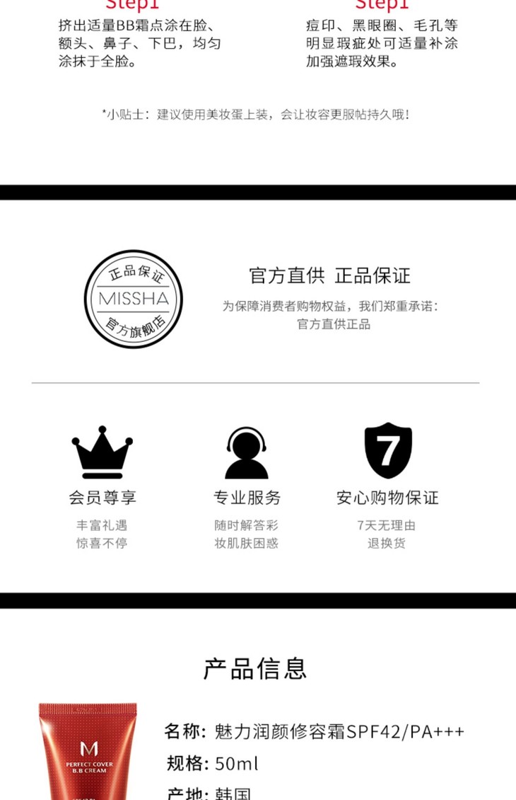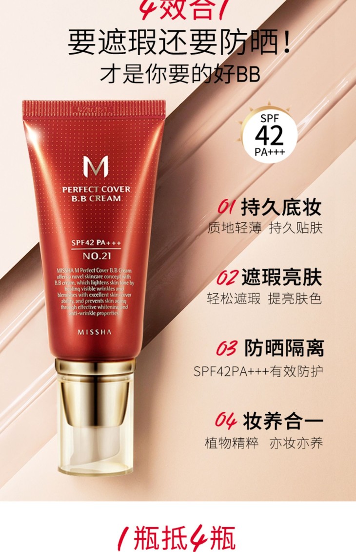 韩国 MISSHA谜尚 大红遮瑕保湿隔离bb粉底液 SPF42/PA+++ 50ml