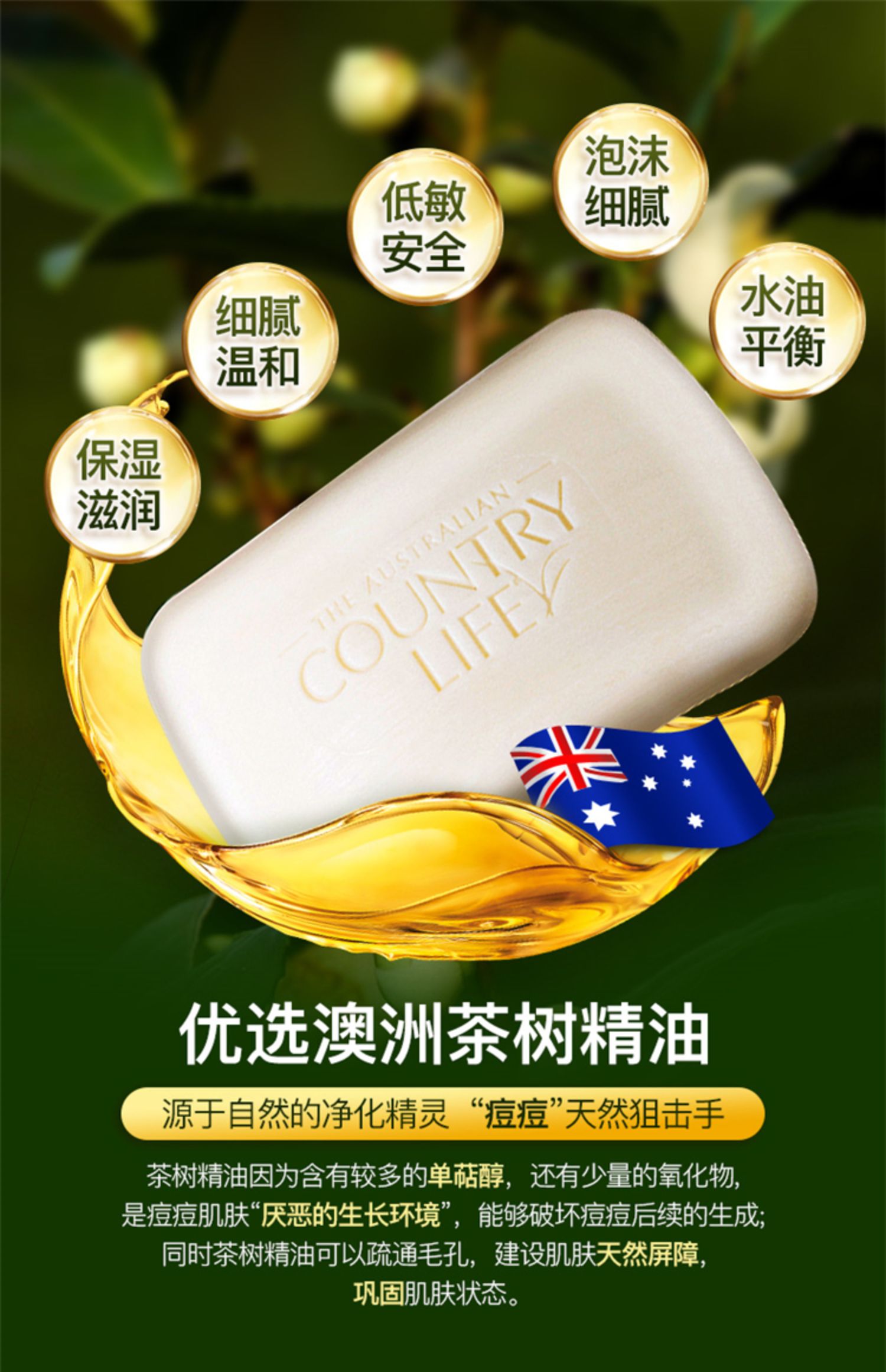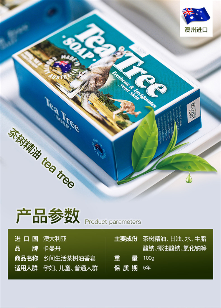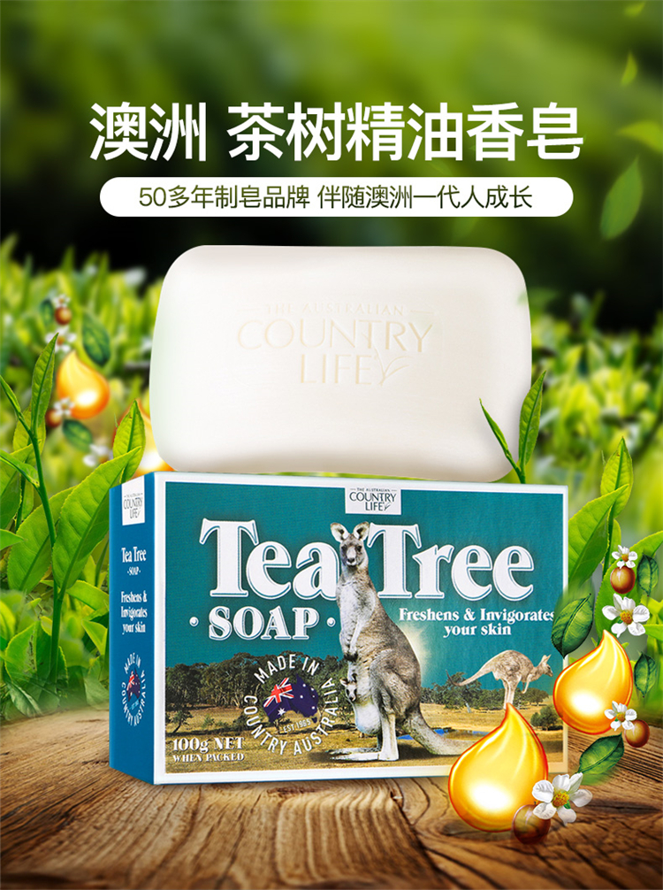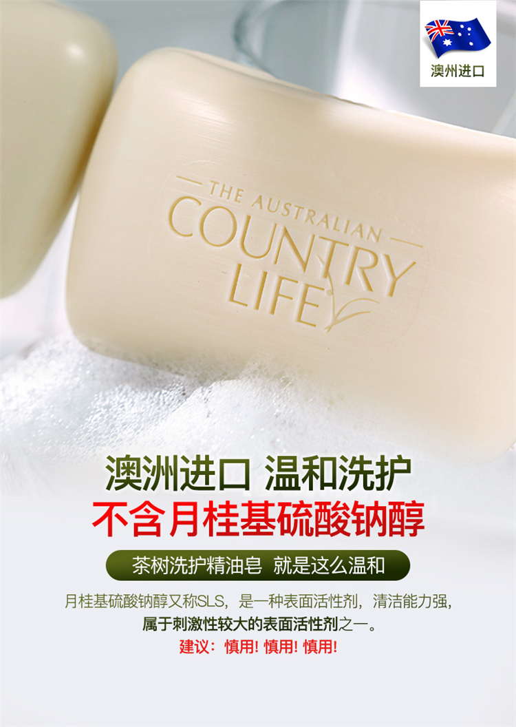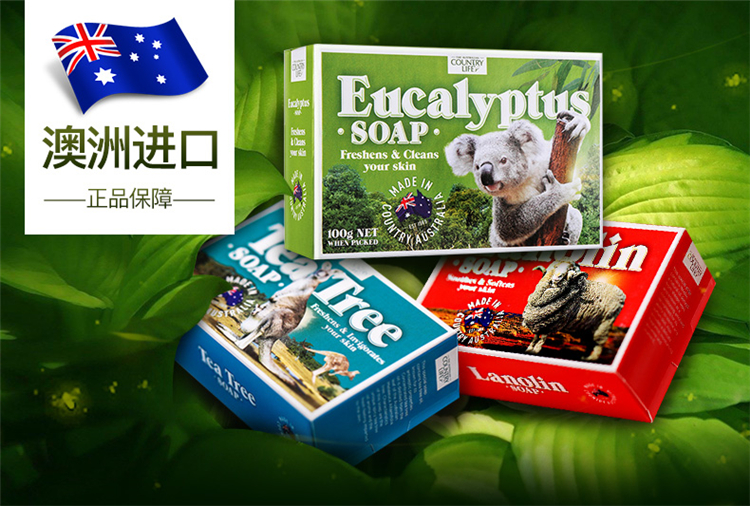 【中欧班列精选】澳洲手工皂 原装进口卡曼丹Country Life(乡间生活) 绵羊油皂洗脸洗澡沐浴天然茶树桉树手工皂 5块装