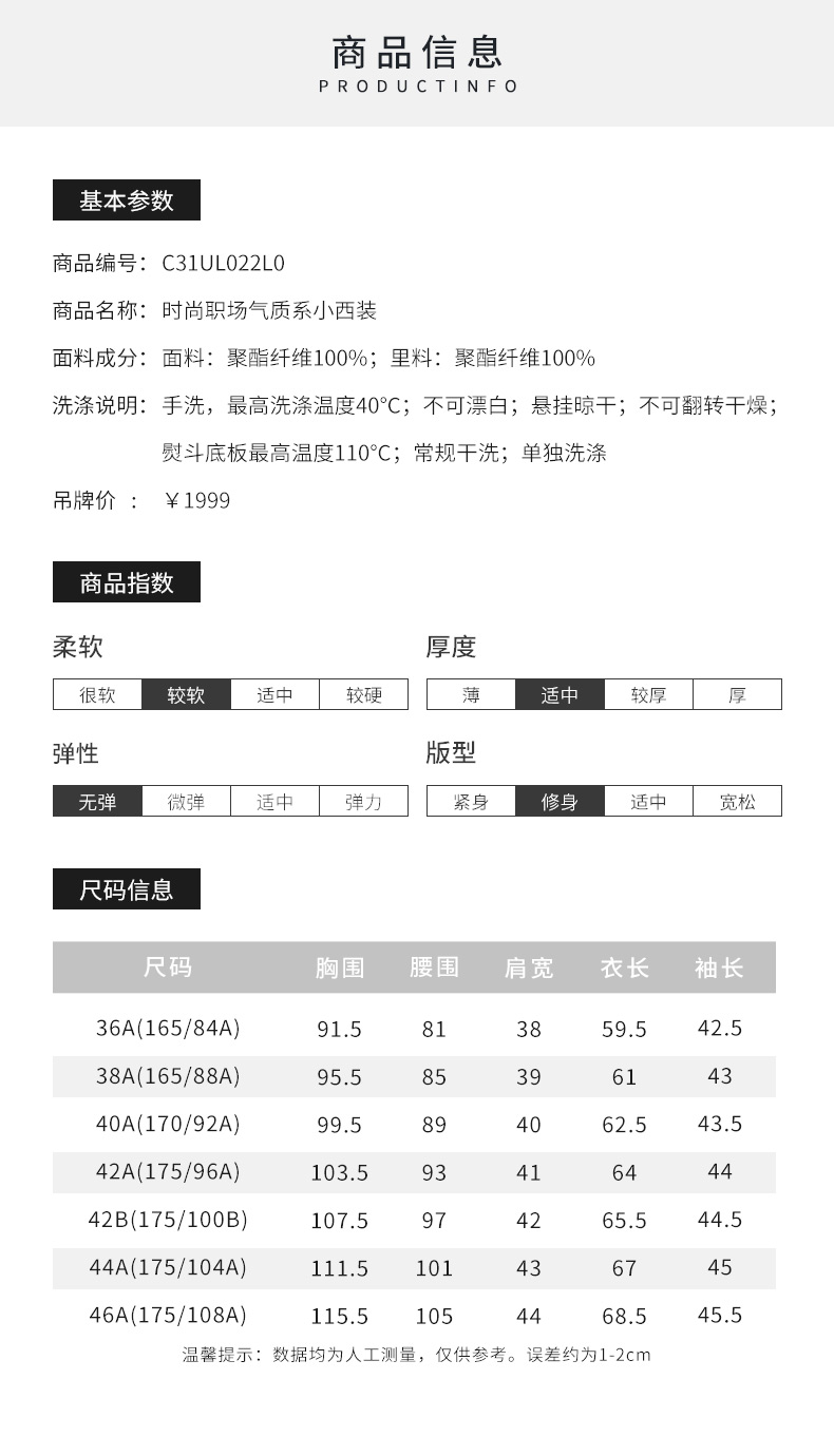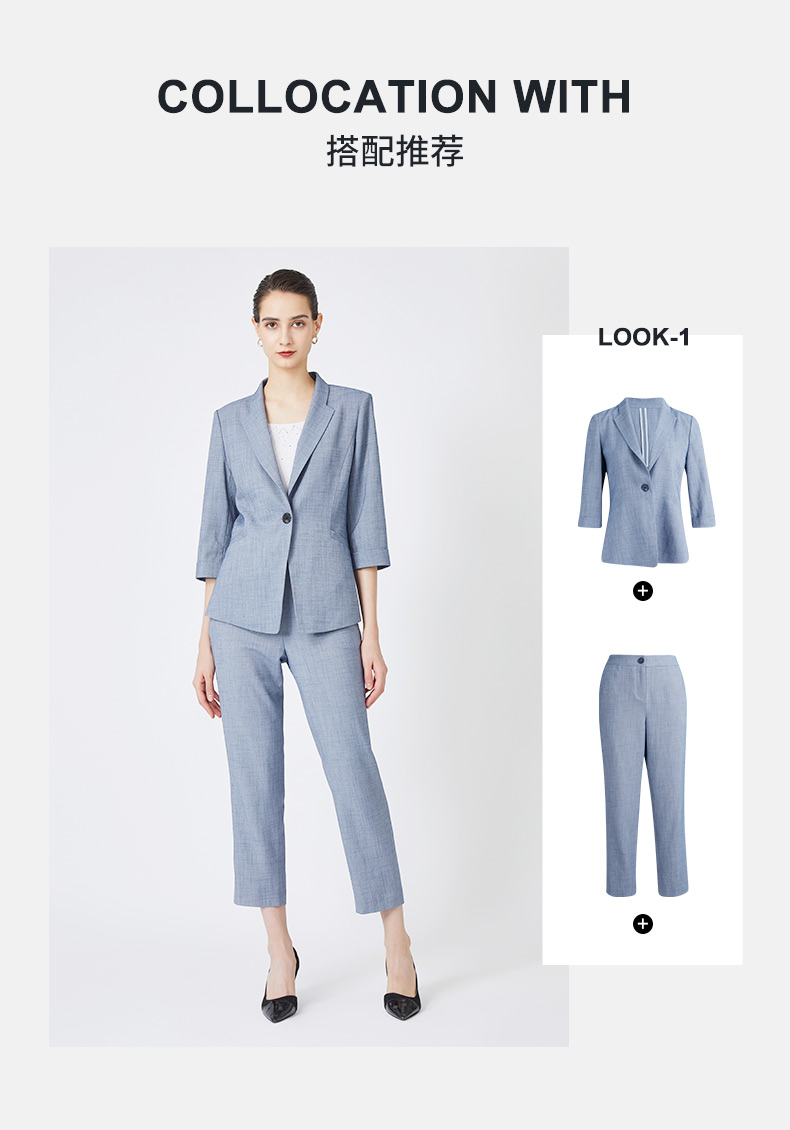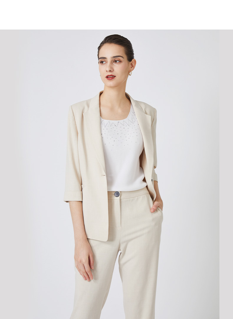 皮尔卡丹女装春季新款简约通勤淑女百搭修身西服C31UL022