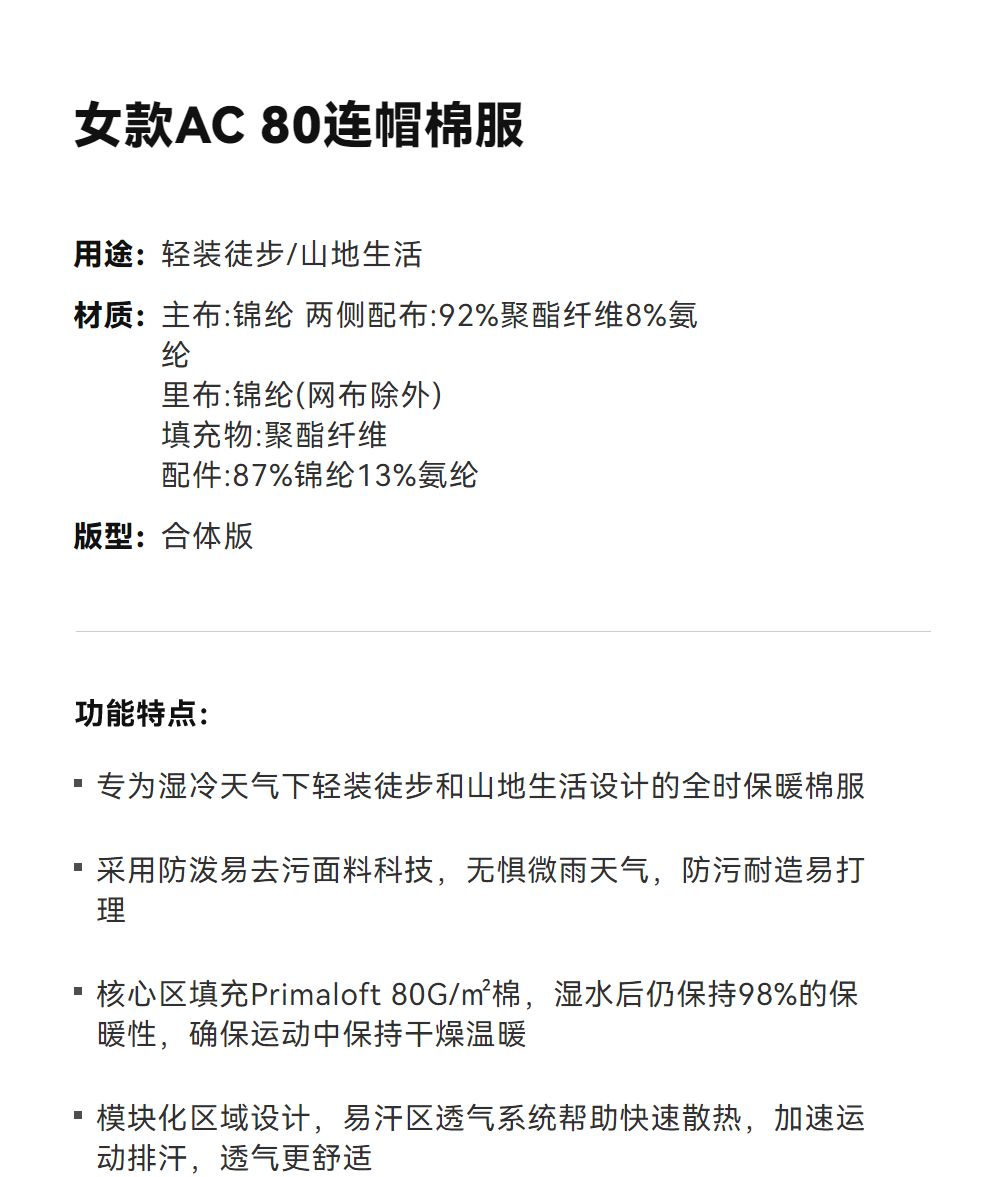 KAILAS凯乐石 女款AC 80连帽棉服 KG2530214